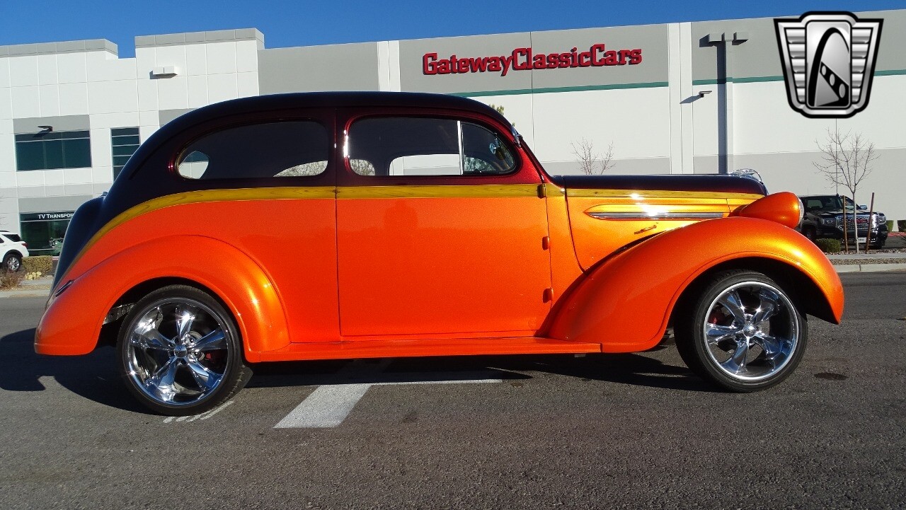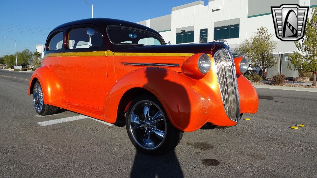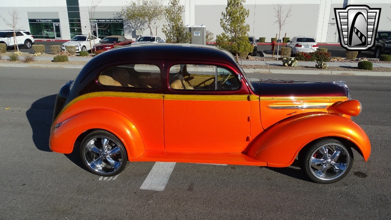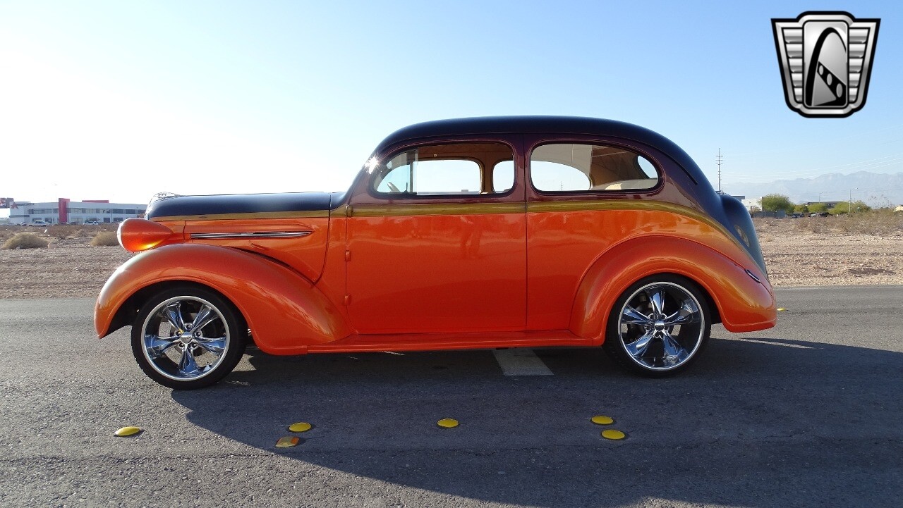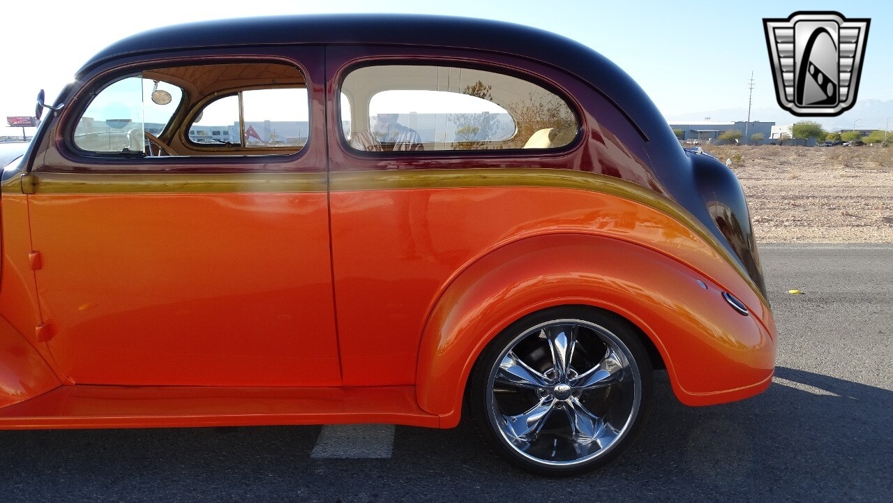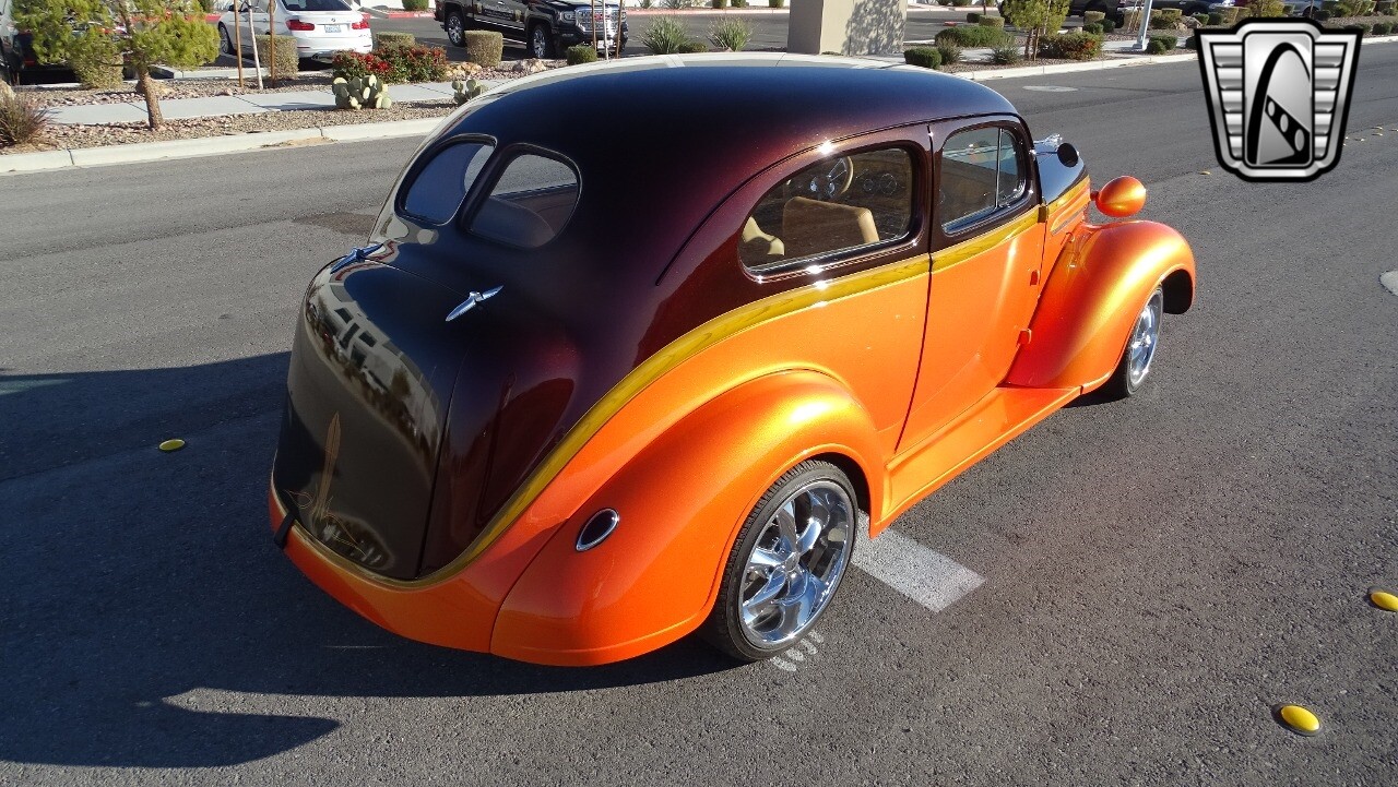 Gateway Classic Cars of Las Vegas presents this 1937 Plymouth P4. Plymouth only produced the P4 model for only one year. Coming out of the depression, the Plymouth P4 was designed with a longer and wider body than its predecessor. This custom P4 has an impressive look with it's two tone paint job of Burgundy and Orange and complimented with a Cream and Brown interior with modern seats and diamond stitching for both seats and headliner. It can adapt the stance to your liking with air suspension and it is accented nicely with Chip Foose Chrome custom wheels. This custom P4 is powered by 350 ci V8 mated to a automatic transmission. Additional upgrades include shaved door handles and modern sound system with subwoofer. Get this cool looking classic and cruise in style with this custom P4..