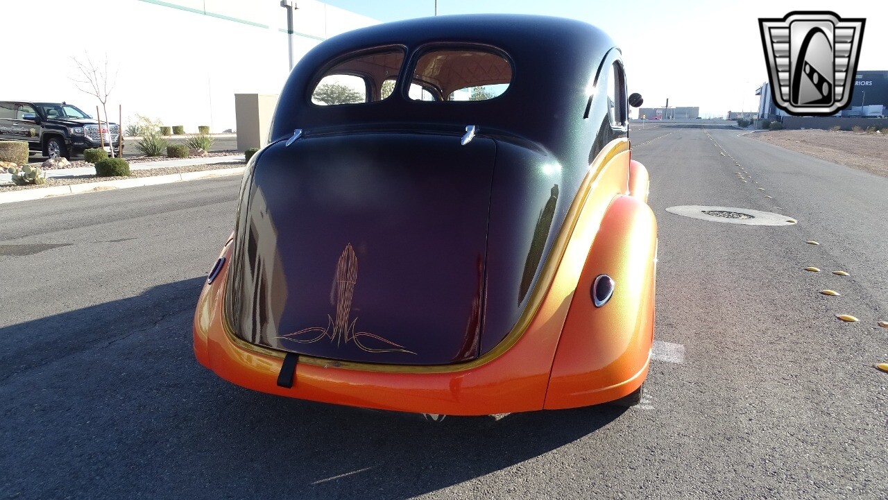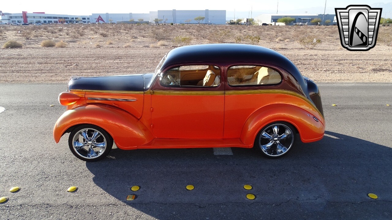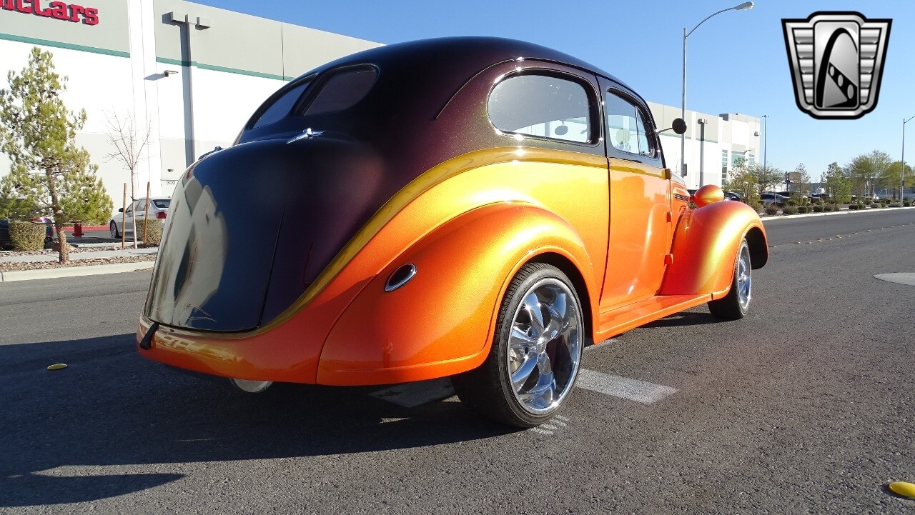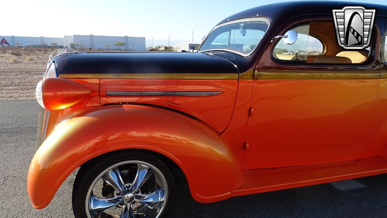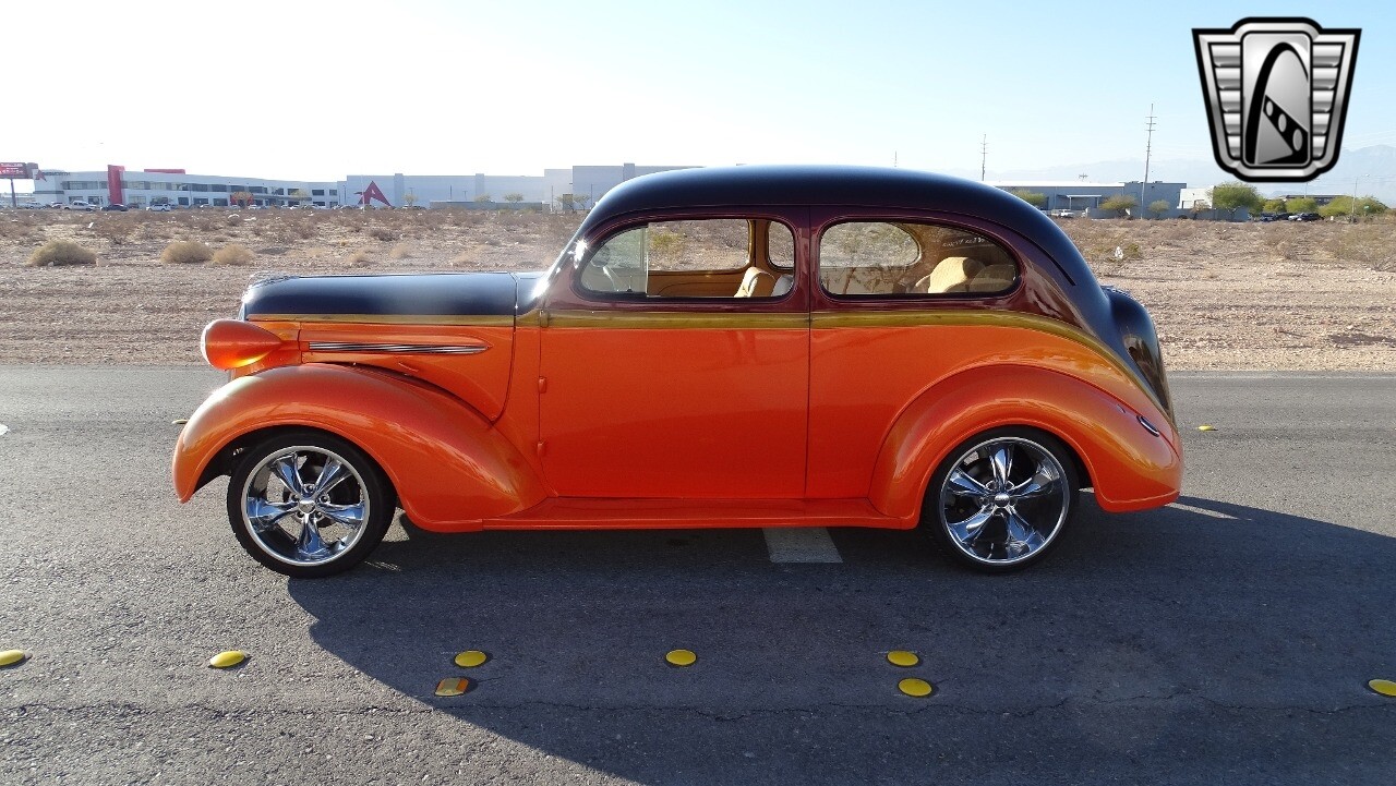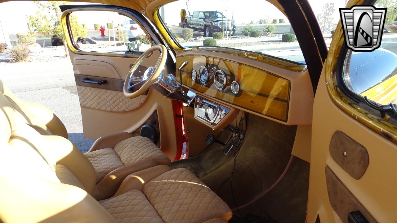 Gateway Classic Cars of Las Vegas presents this 1937 Plymouth P4. Plymouth only produced the P4 model for only one year. Coming out of the depression, the Plymouth P4 was designed with a longer and wider body than its predecessor. This custom P4 has an impressive look with it's two tone paint job of Burgundy and Orange and complimented with a Cream and Brown interior with modern seats and diamond stitching for both seats and headliner. It can adapt the stance to your liking with air suspension and it is accented nicely with Chip Foose Chrome custom wheels. This custom P4 is powered by 350 ci V8 mated to a automatic transmission. Additional upgrades include shaved door handles and modern sound system with subwoofer. Get this cool looking classic and cruise in style with this custom P4..