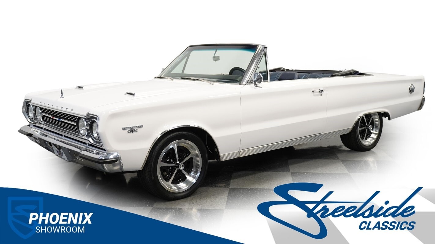 This 1967 Plymouth Belvedere II GTX Tribute Convertible, V8 engine, meticulously curated blue interior, standout white exterior, a fusion of performance and elegance. Call today!