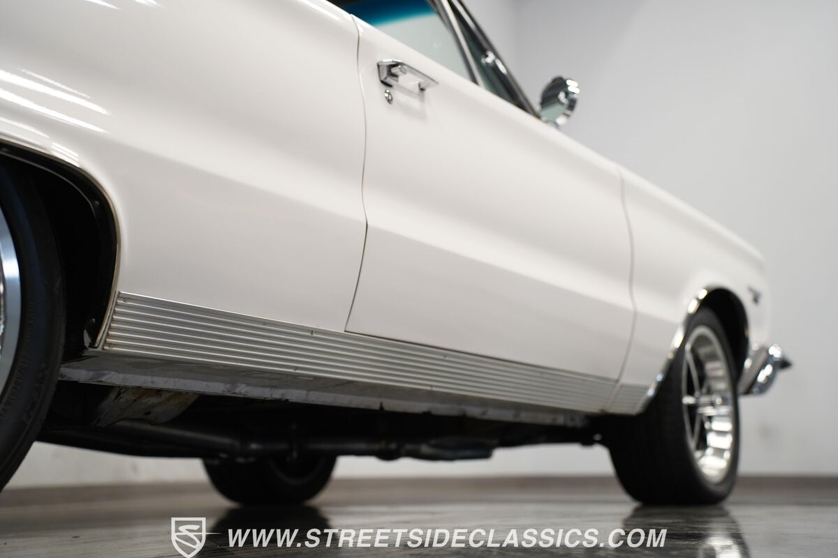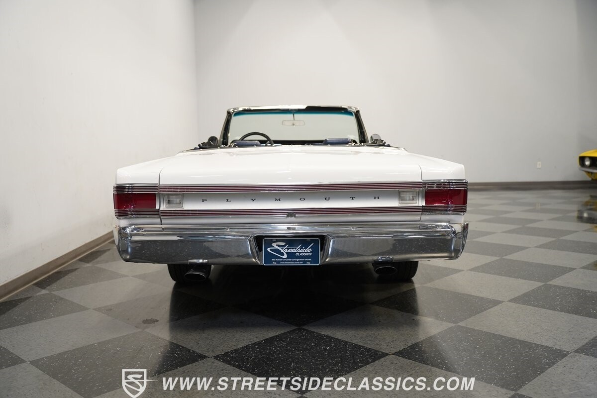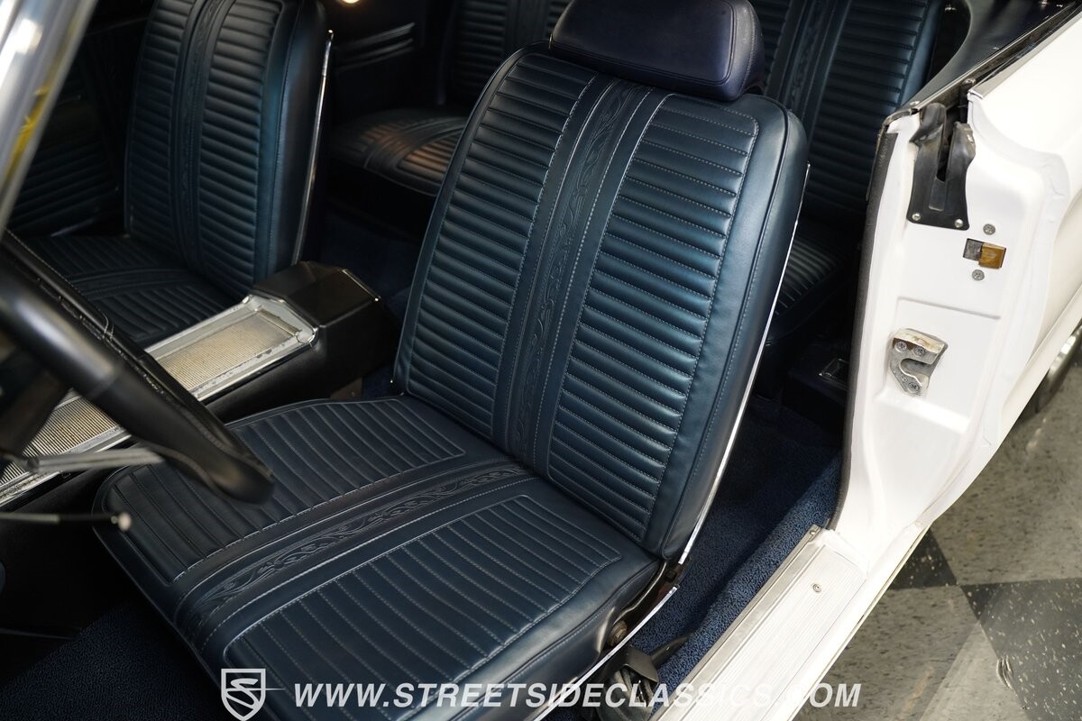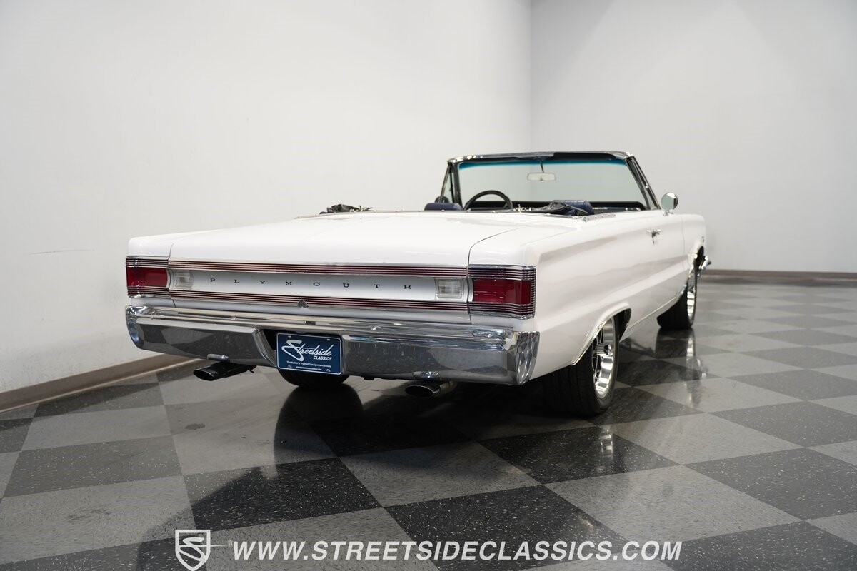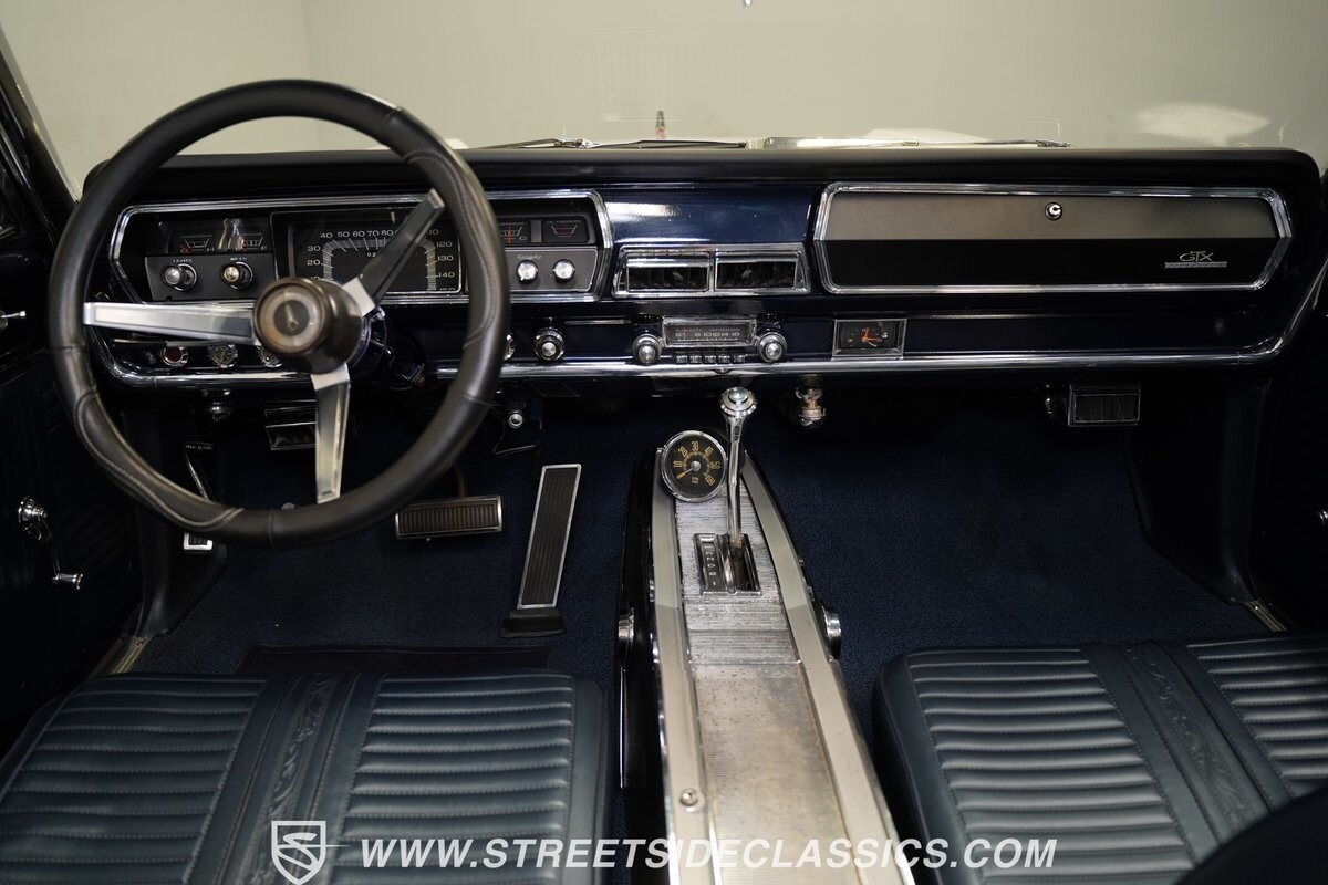 This 1967 Plymouth Belvedere II GTX Tribute Convertible radiates elegance in its White exterior, highlighted by a striking dark blue canvas top, creating a captivating contrast. Mounted on 17" factory-style wheels enveloped in 245/45R17 tires, its presence is commanding yet refined. Adding to its allure is a power antenna, seamlessly integrated into the fender.