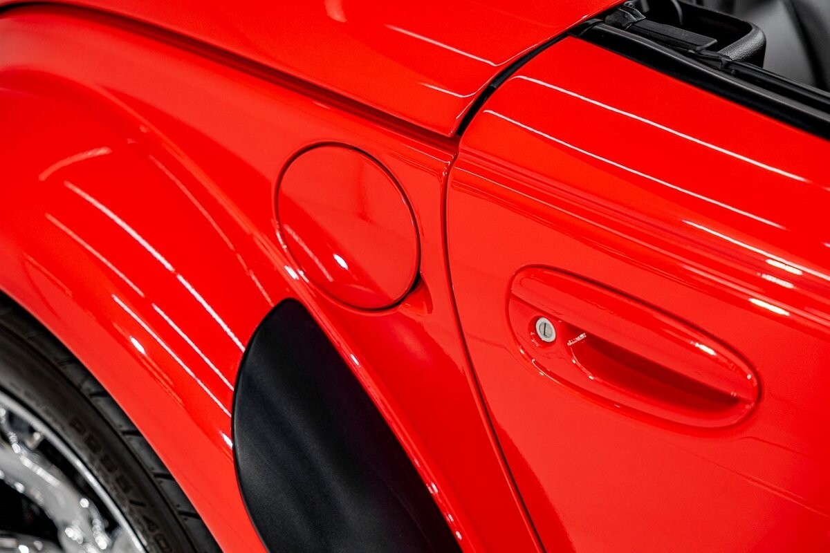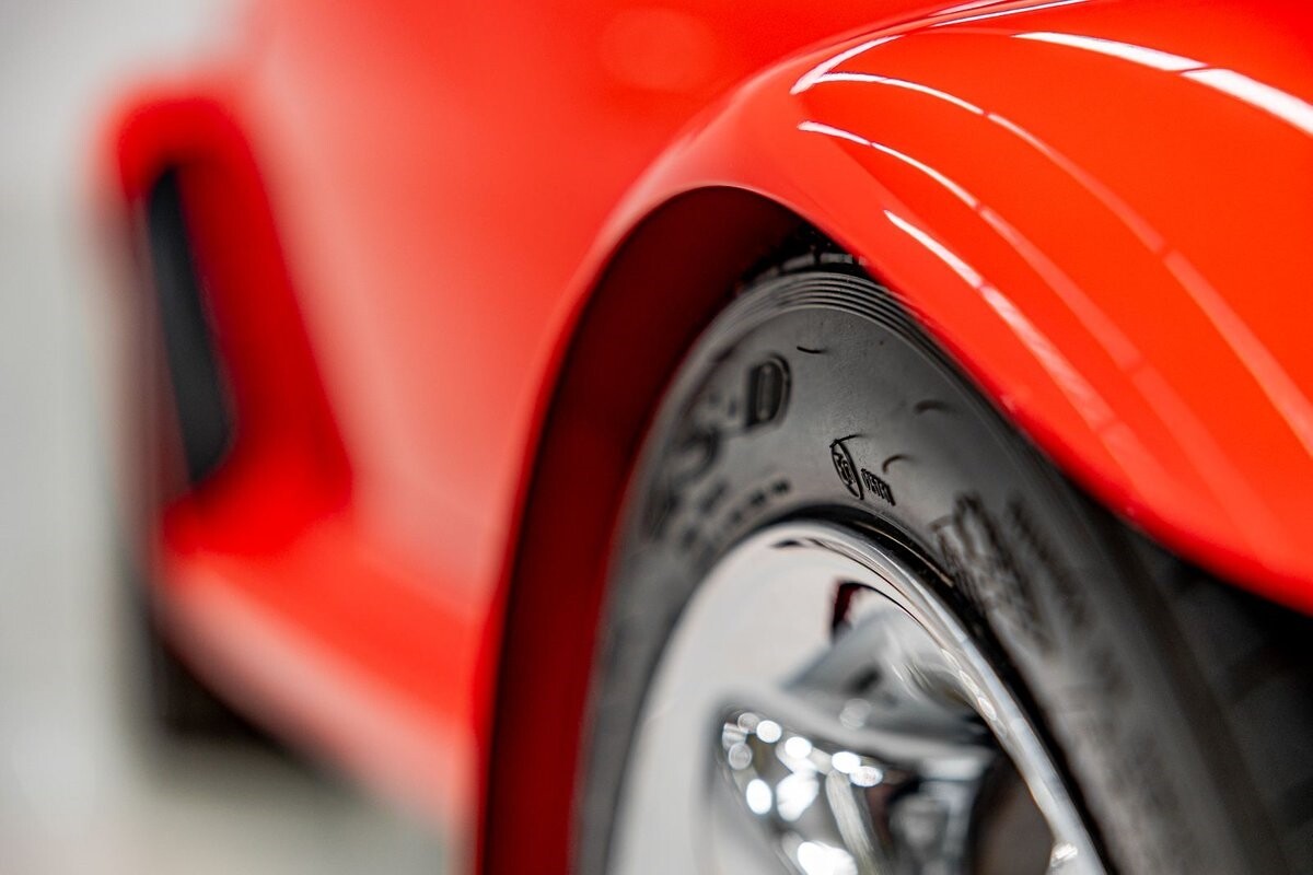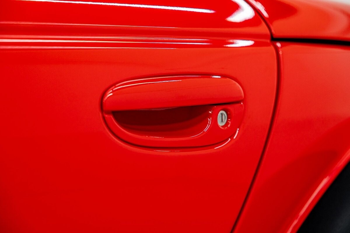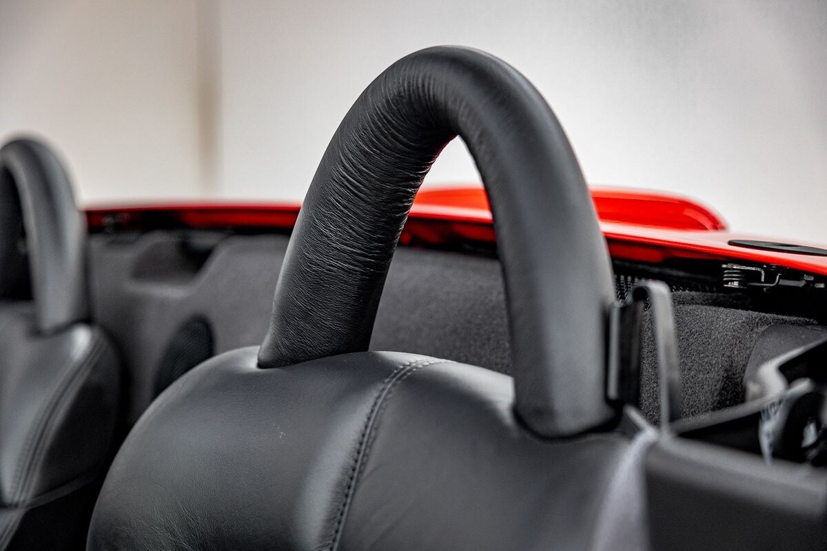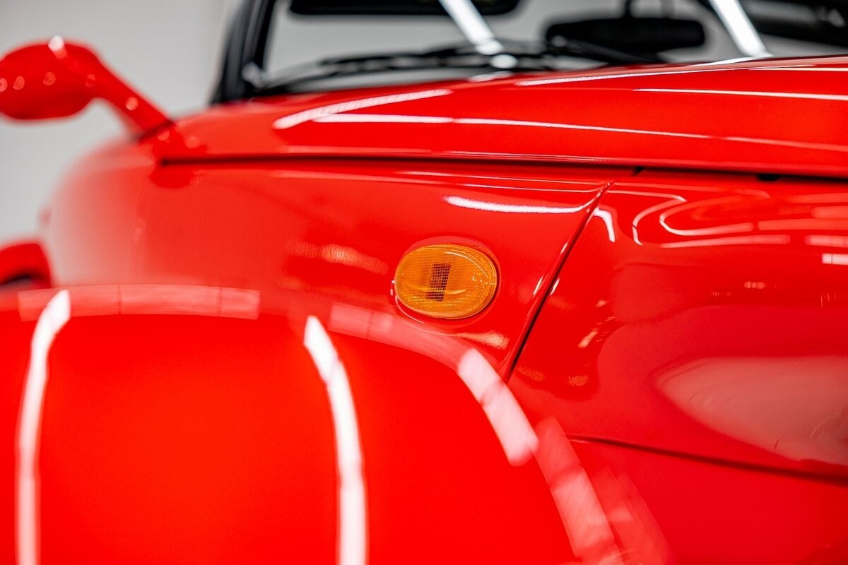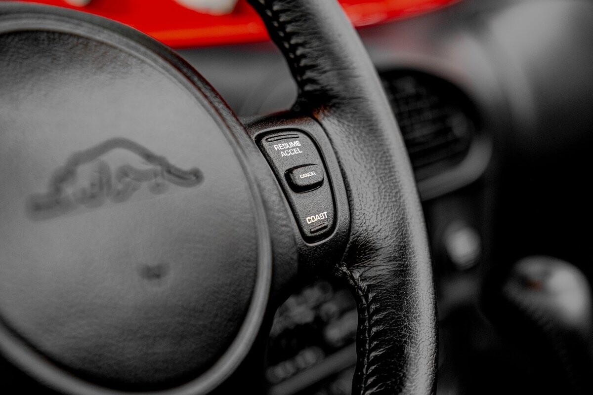 EXTERIOR: The prowler red is a very sharp color. The body is excellent, no damage anywhere that I can find. The original paint is excellent. The wheels are staggered size with 17s in front and 20s in back. The tires like new. The black cloth convertible top looks great and is very functional. It is still equipped with the factory front and rear bumpers. It literally looks like it just rolled off the assembly floor. All the exposed front suspension is immaculate.