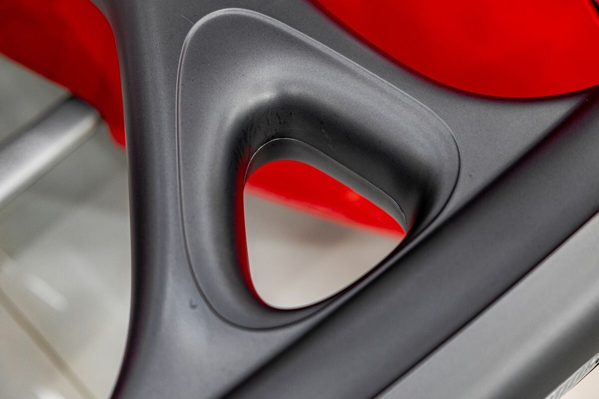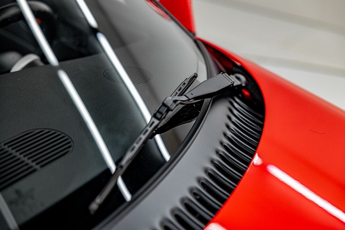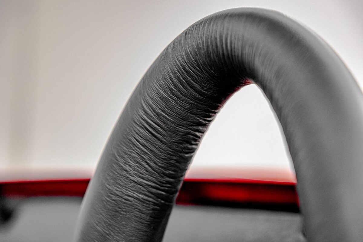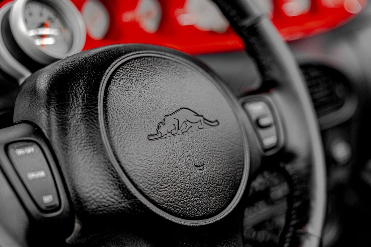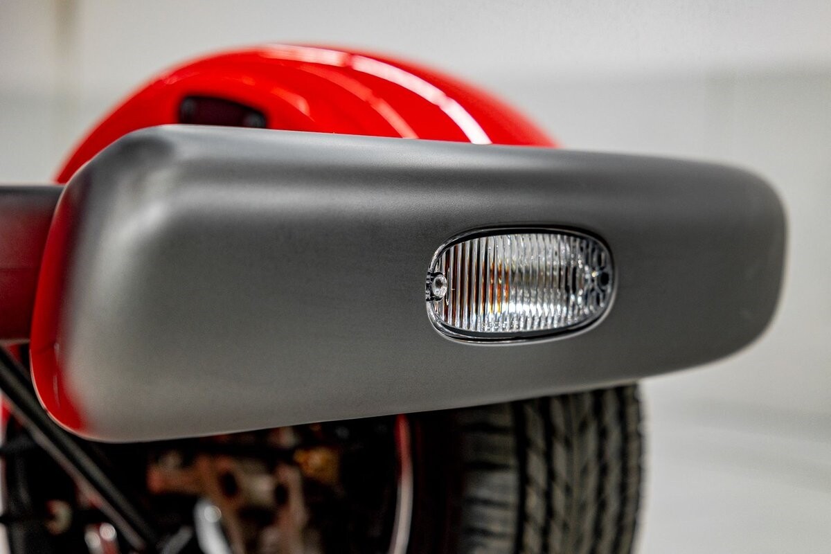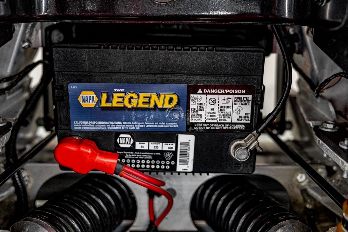 EXTERIOR: The prowler red is a very sharp color. The body is excellent, no damage anywhere that I can find. The original paint is excellent. The wheels are staggered size with 17s in front and 20s in back. The tires like new. The black cloth convertible top looks great and is very functional. It is still equipped with the factory front and rear bumpers. It literally looks like it just rolled off the assembly floor. All the exposed front suspension is immaculate.