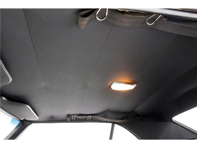 The newly installed glass is framed by glistening trim and complemented by a sleek factory black vinyl top, presenting a striking appearance. 14-inch Rally 2 wheels adorn each corner of the vehicle, with a flawless stainless steel rocker trim piece running between them.