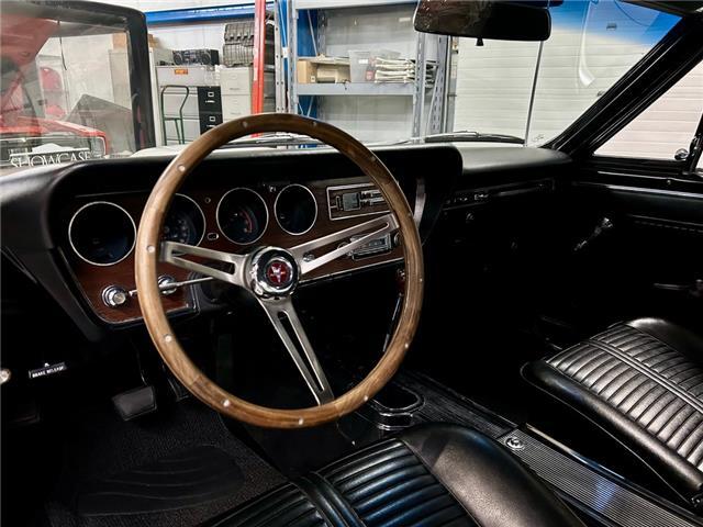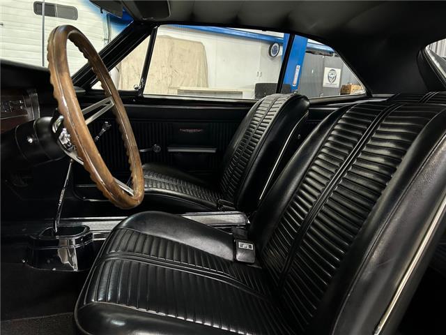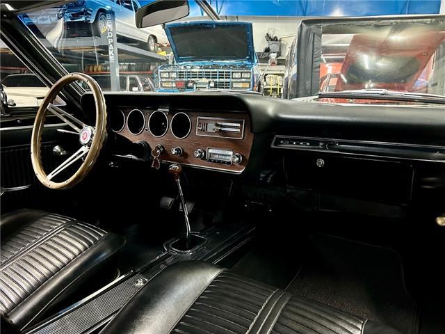 GORGEOUS FACTORY CORRECT "223" CODE BLACK BUCKET SEAT INTERIOR WITH FACTORY CONSOLE, RALLY GAUGES, TACHOMETER, GTO 4 SPEED SHIFT KNOB, AND WOODGRAIN STEERING WHEEL. THE INTERIOR SHOWS BEAUTIFULLY INCLUDING THE SEAT UPHOLSTERY, DOOR PANELS, DASH PAD, CARPET...ETC. OPERATING LIGHTS, DASH LIGHTS, GAUGES, BLINKERS, HORN, HEATER, REVERSE LIGHTS, ETC... ALL WORK. NEWER HEATER CORE. ORIGINAL AM RADIO INTACT BUT NOT WORKING.