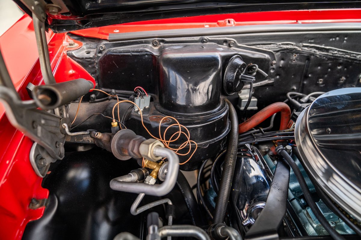 The 400ci V8 is equipped with a two-barrel carburetor and was rated at 255 horsepower and 397 lb-ft of torque. The spark plugs were replaced under current ownership. Power is routed to the rear wheels through a three-speed automatic transmission. A Flowmaster exhaust system is fitted. Rally II 14" wheels feature chrome trim rings and are mounted with BFGoodrich Silvertown Radial tires measuring 225/70. The car is equipped with power steering and a stabilizer bar, and stopping is provided by power-assisted front disc and rear drum brakes.