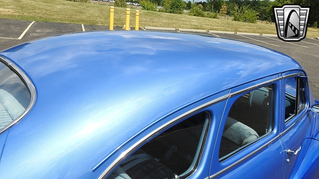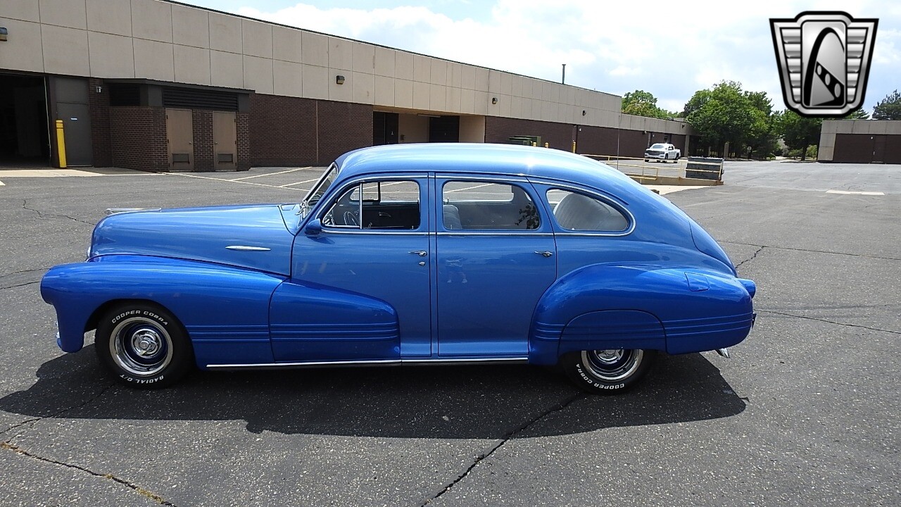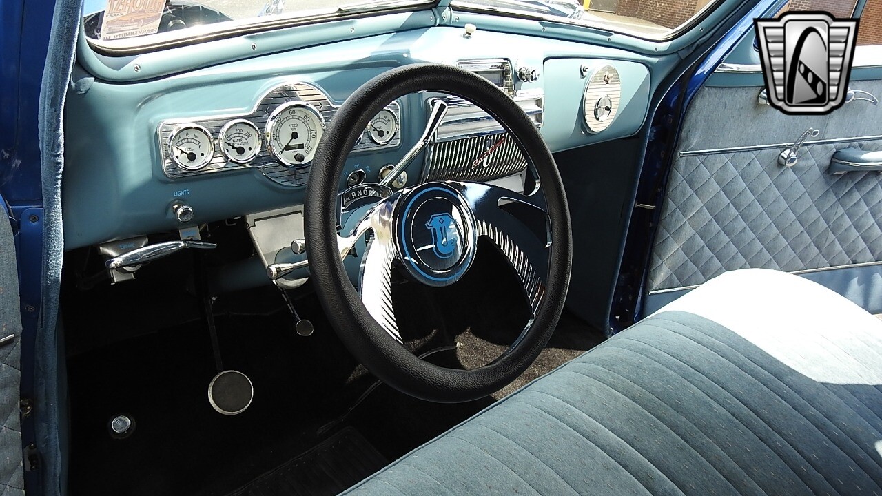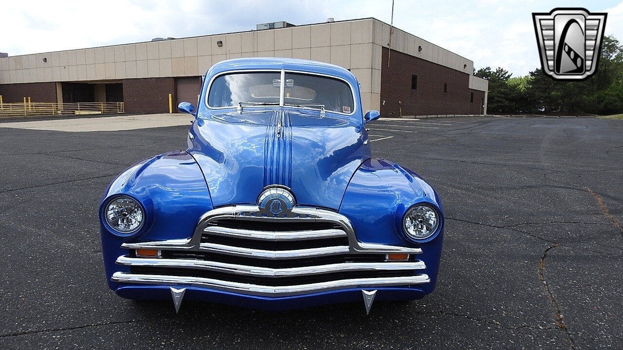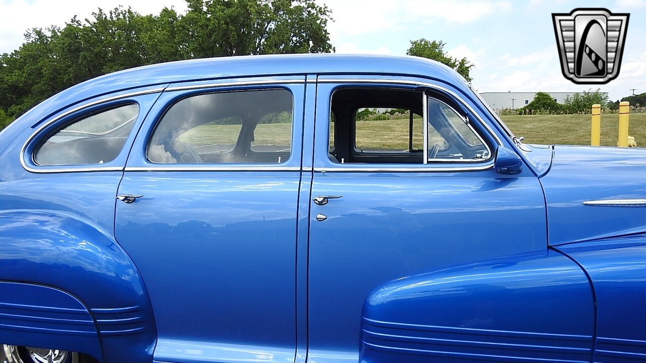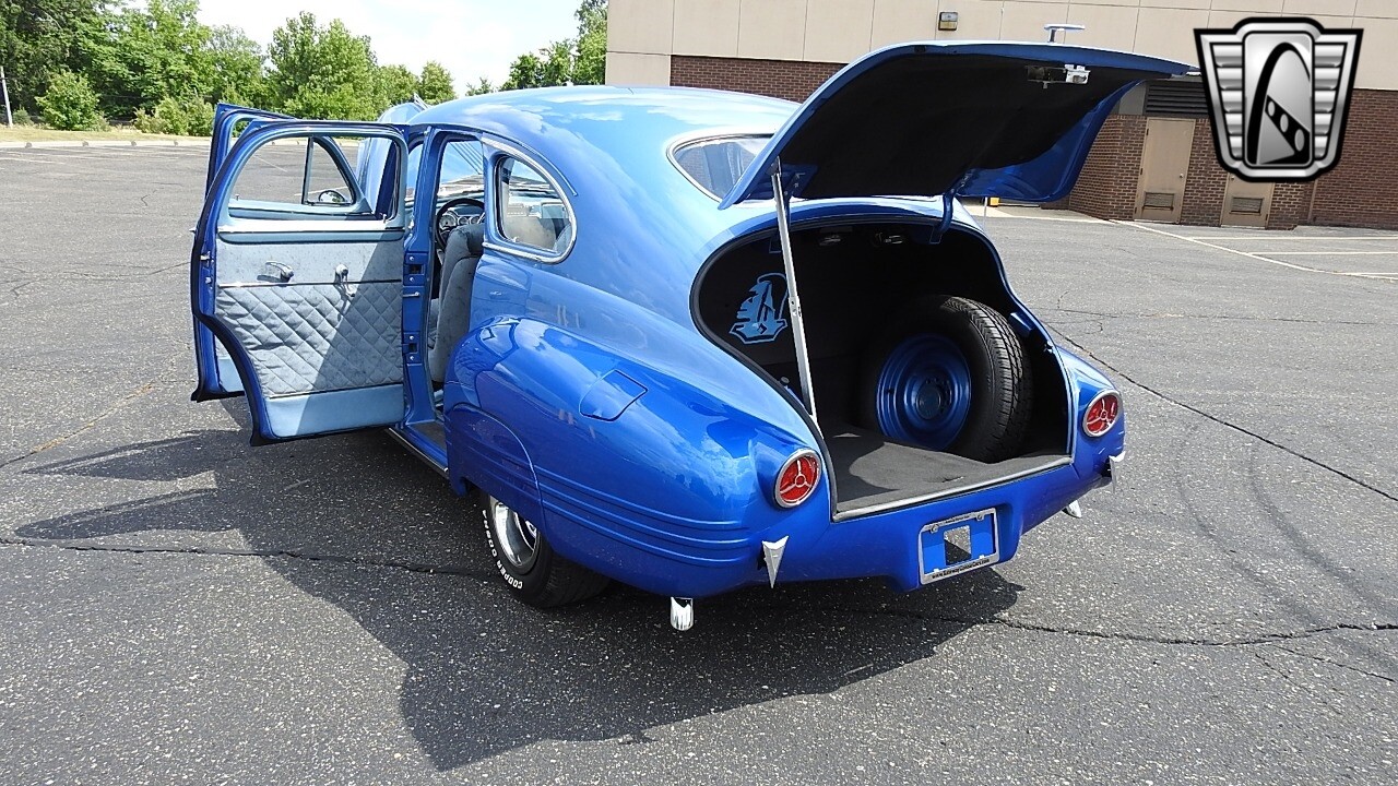 Gateway Classic Cars is proud to present this 1947 Pontiac Streamliner. Powering this blue meanie is a pontiac 350 v8 with a 200 r4 transmission with an overdrive gear. Behind the transmission is a 8.5 10-bolt rear end. This steamliner has had a full restoration, including some modern touches. The front sub frame was done with a Mustang II power rack and pinion steering. On the inside, you will be greeted with a custom made bullet instrument panel, a tilt steering column with a boomerang steering wheel. You can play any kind of tunes you like with the retro sound radio with an AUX port. Front and rear 6x9 Pioneer speakers, custom made kick panels and bullet door handles. Looking at this Streamliner from the outside, you will notice the front and rear aluminum bumper caps with Pontiac logos. The customization's continue on the outside with door and trunk handles from a 34 Ford Roadster, frenched power antenna, shaved decklid, 41 Ford led fluted lamps in the front, leaded in 49 Lincoln taillamps in the rear, with custom front and rear roll pans. Lots of chrome everywhere! Everything from the paint to the interior are in very good condition, so don't let this one pass you up!.