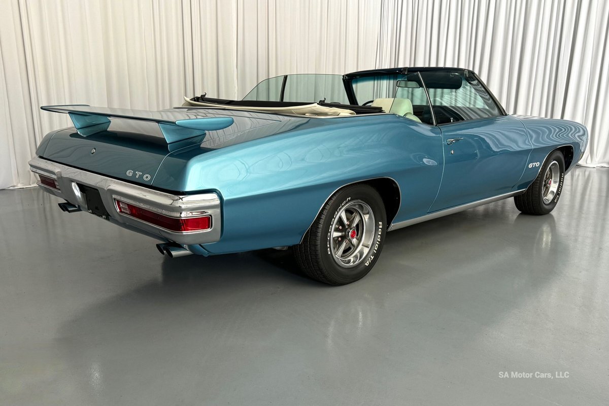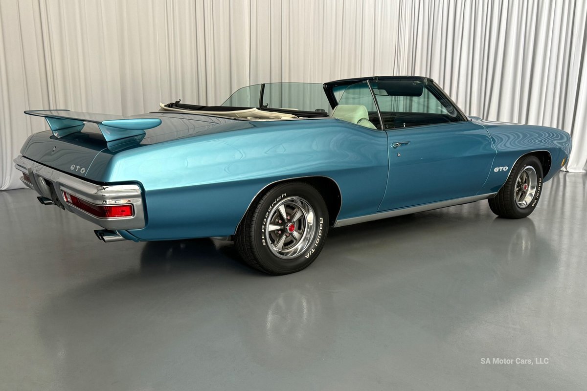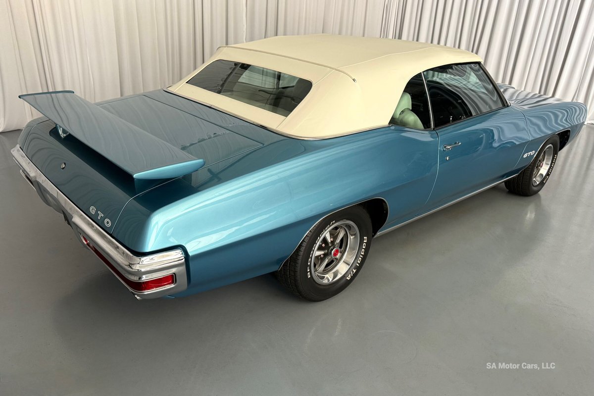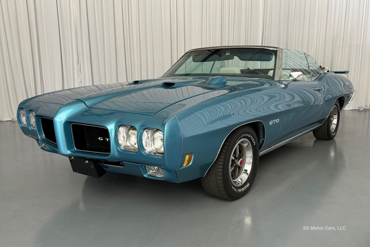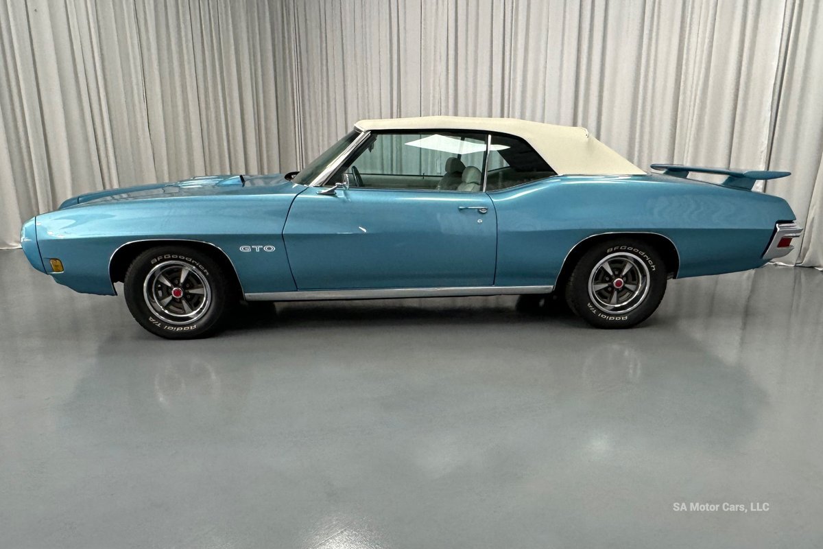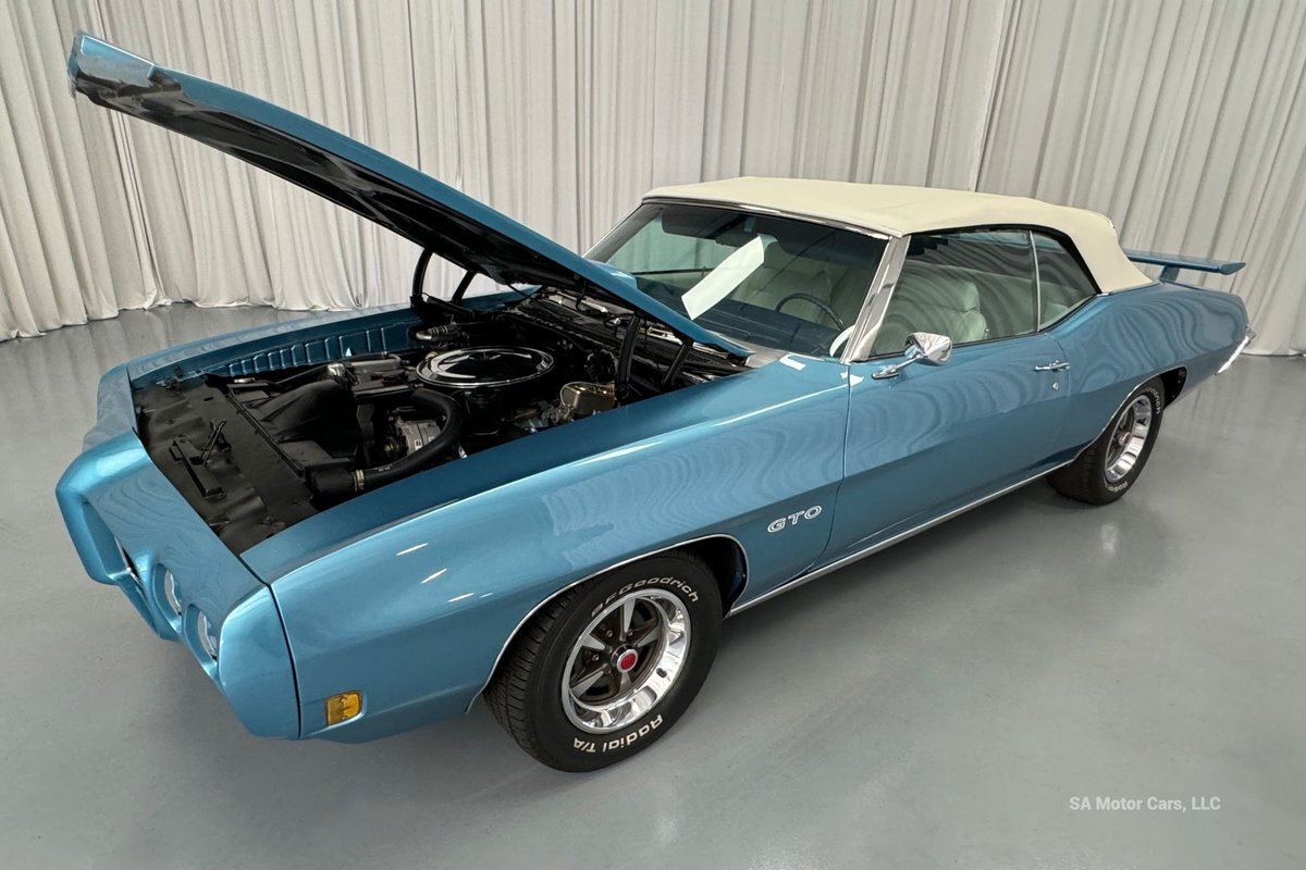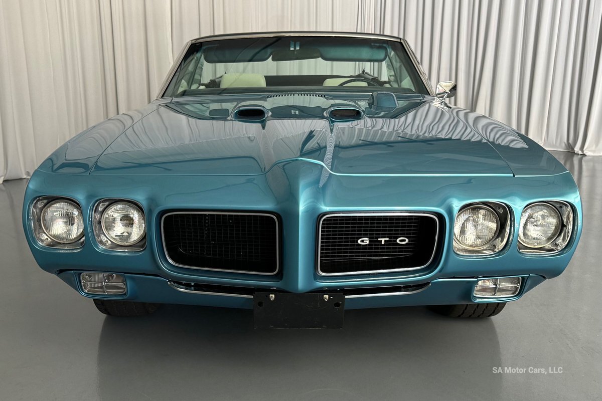 Check out this amazing 1970 Pontiac GTO! This Convertible is Sporting gorgeous Blue Exterior Paint and a White Convertible top! On the exterior this GTO is sporting its GTO emblems on both front panels, front grille and trunk lid. The interior of this GTO is also sporting a beautiful White interior with bucket seats in front and a bench seat in rear, black Pontiac floor mats, 3-spoke Pontiac steering wheel, and so much more!