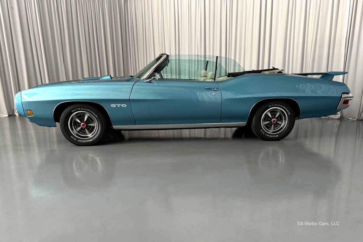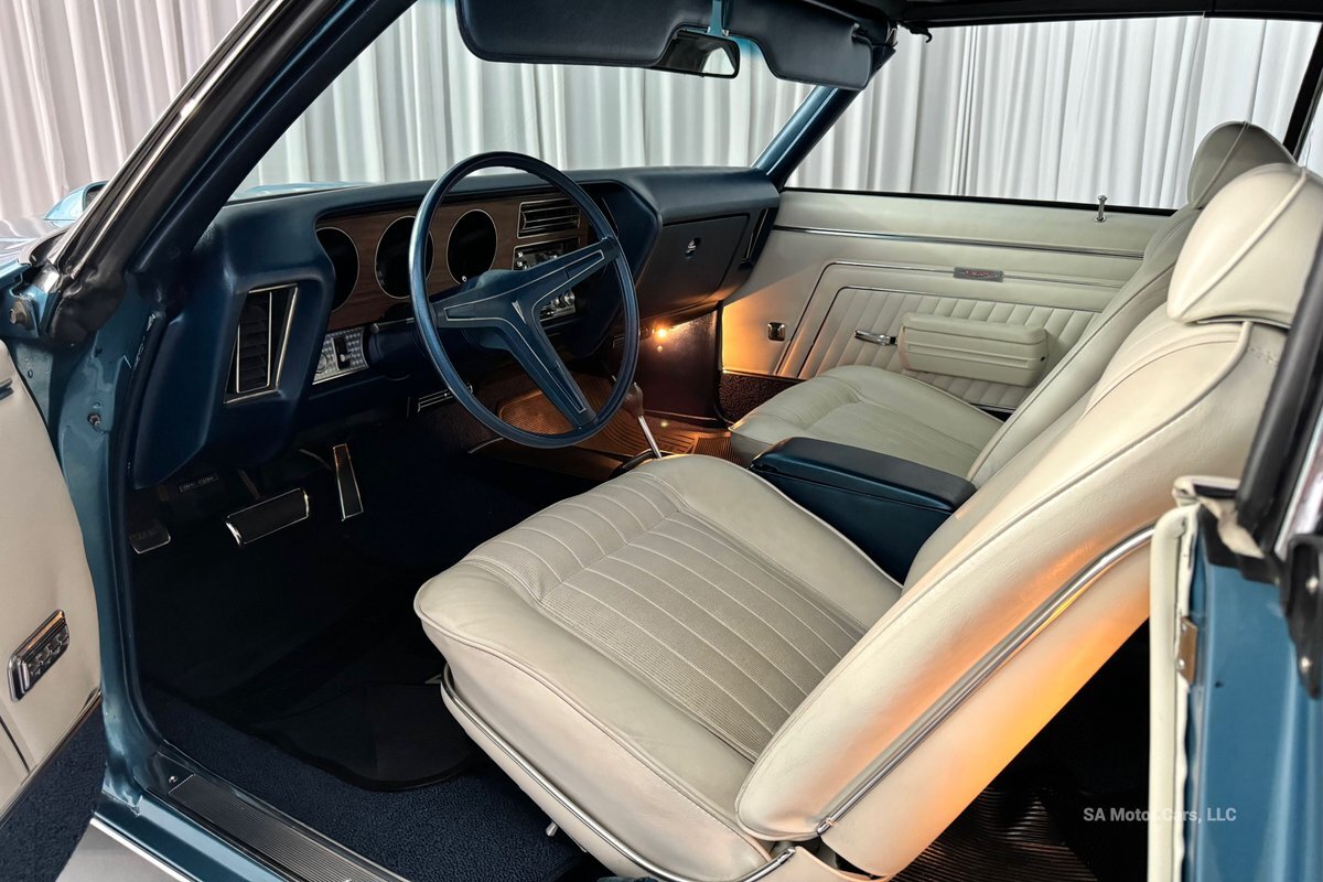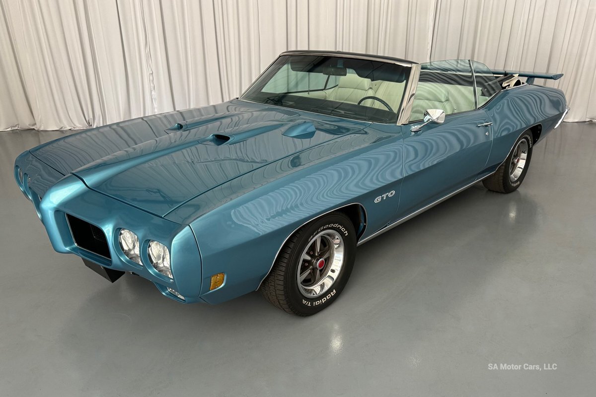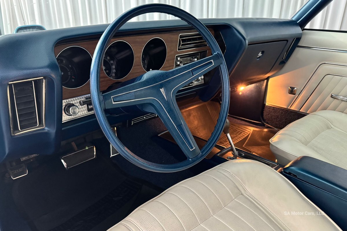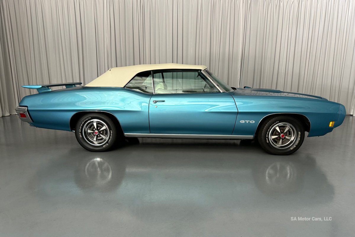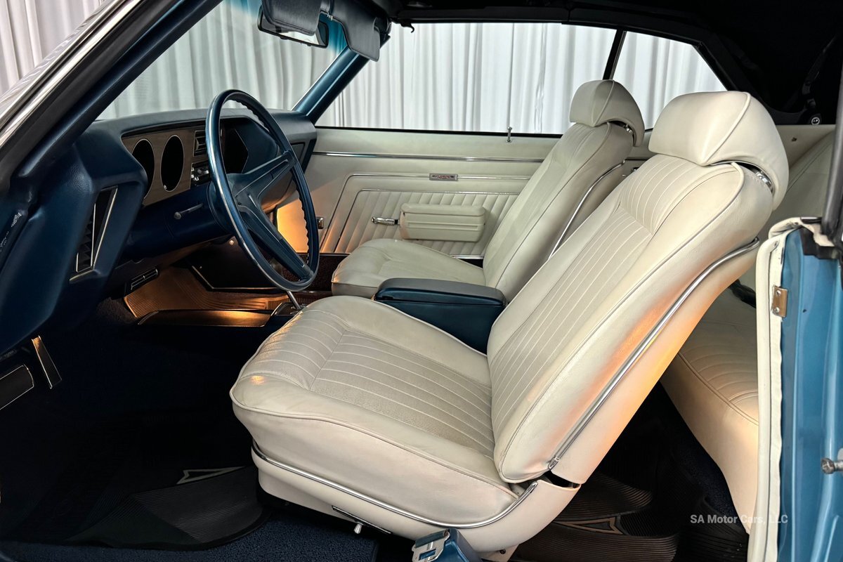 Check out this amazing 1970 Pontiac GTO! This Convertible is Sporting gorgeous Blue Exterior Paint and a White Convertible top! On the exterior this GTO is sporting its GTO emblems on both front panels, front grille and trunk lid. The interior of this GTO is also sporting a beautiful White interior with bucket seats in front and a bench seat in rear, black Pontiac floor mats, 3-spoke Pontiac steering wheel, and so much more!