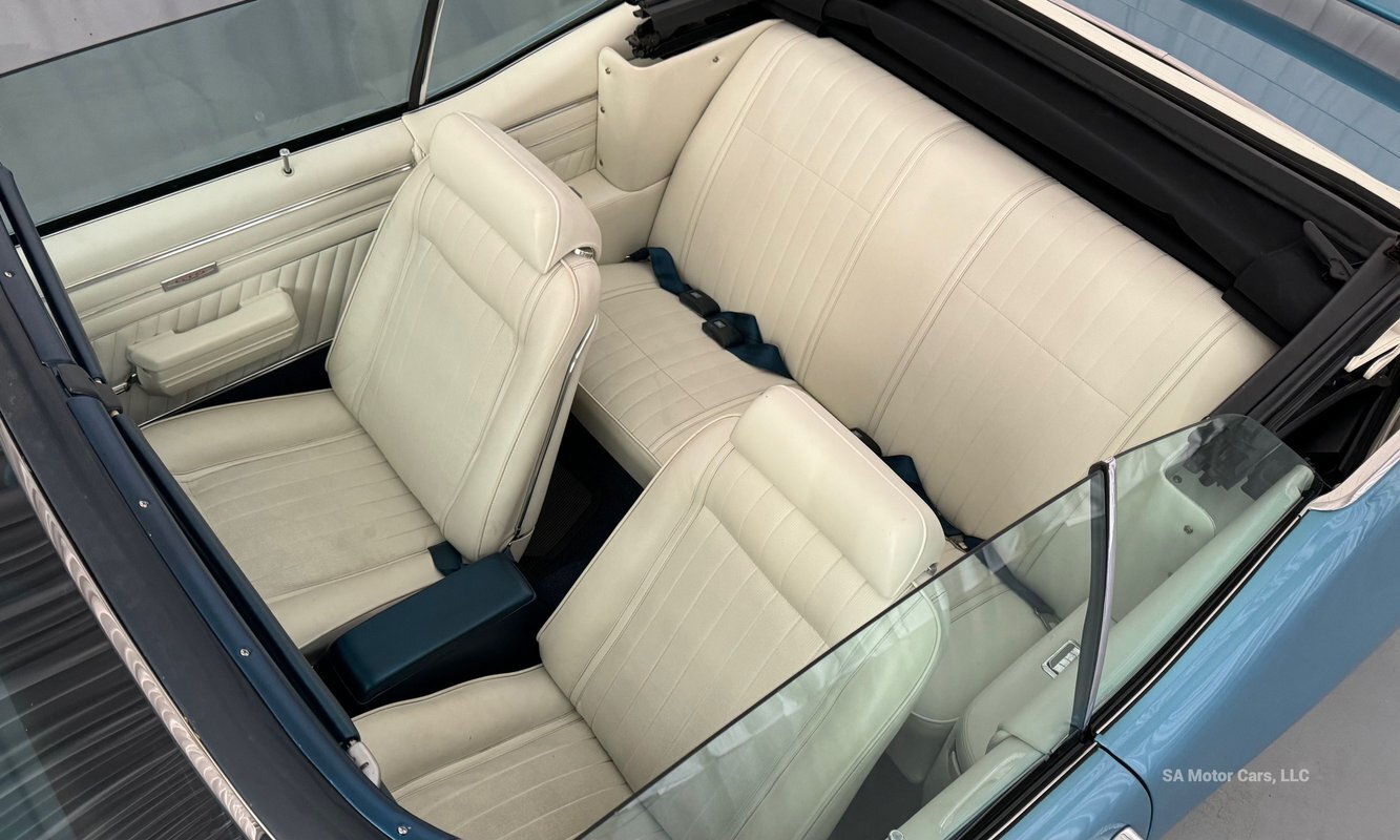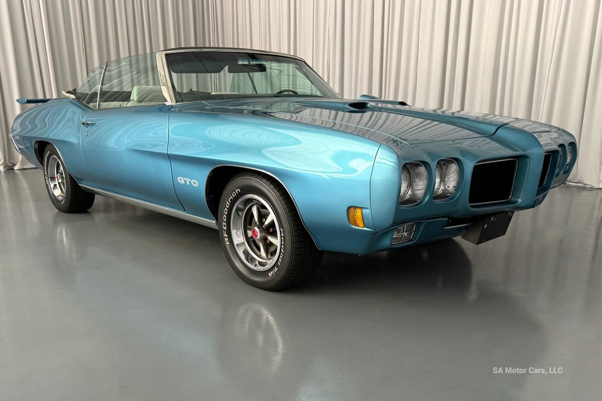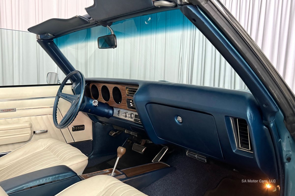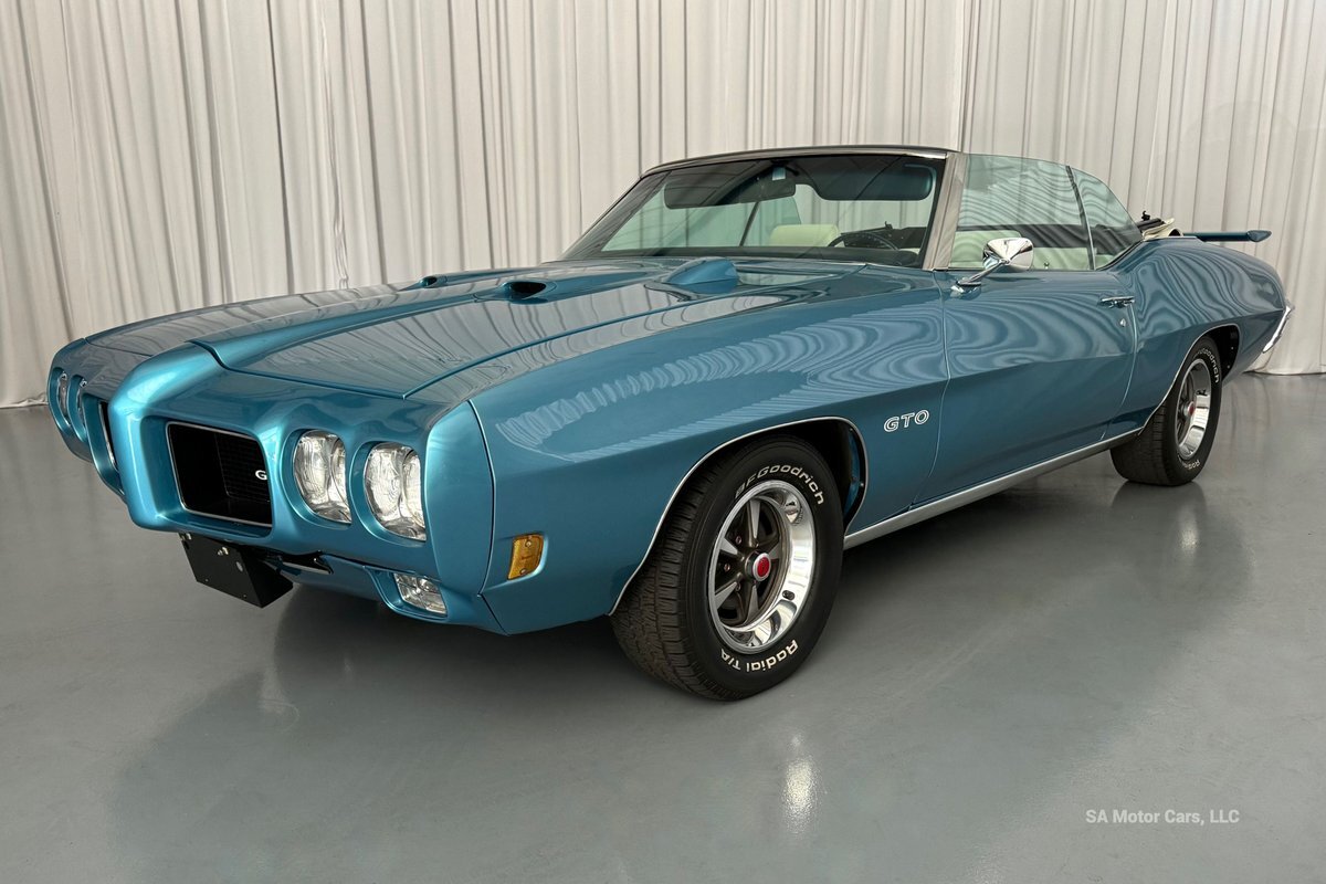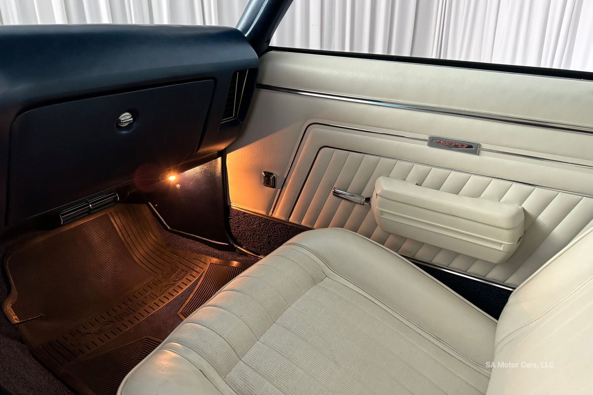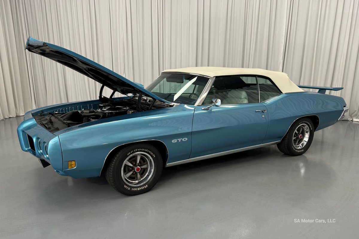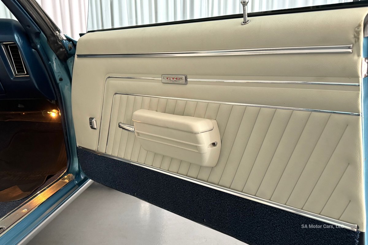 Check out this amazing 1970 Pontiac GTO! This Convertible is Sporting gorgeous Blue Exterior Paint and a White Convertible top! On the exterior this GTO is sporting its GTO emblems on both front panels, front grille and trunk lid. The interior of this GTO is also sporting a beautiful White interior with bucket seats in front and a bench seat in rear, black Pontiac floor mats, 3-spoke Pontiac steering wheel, and so much more!