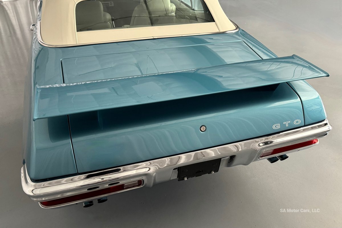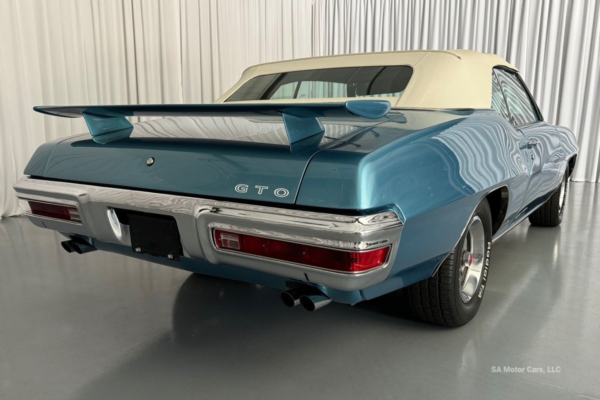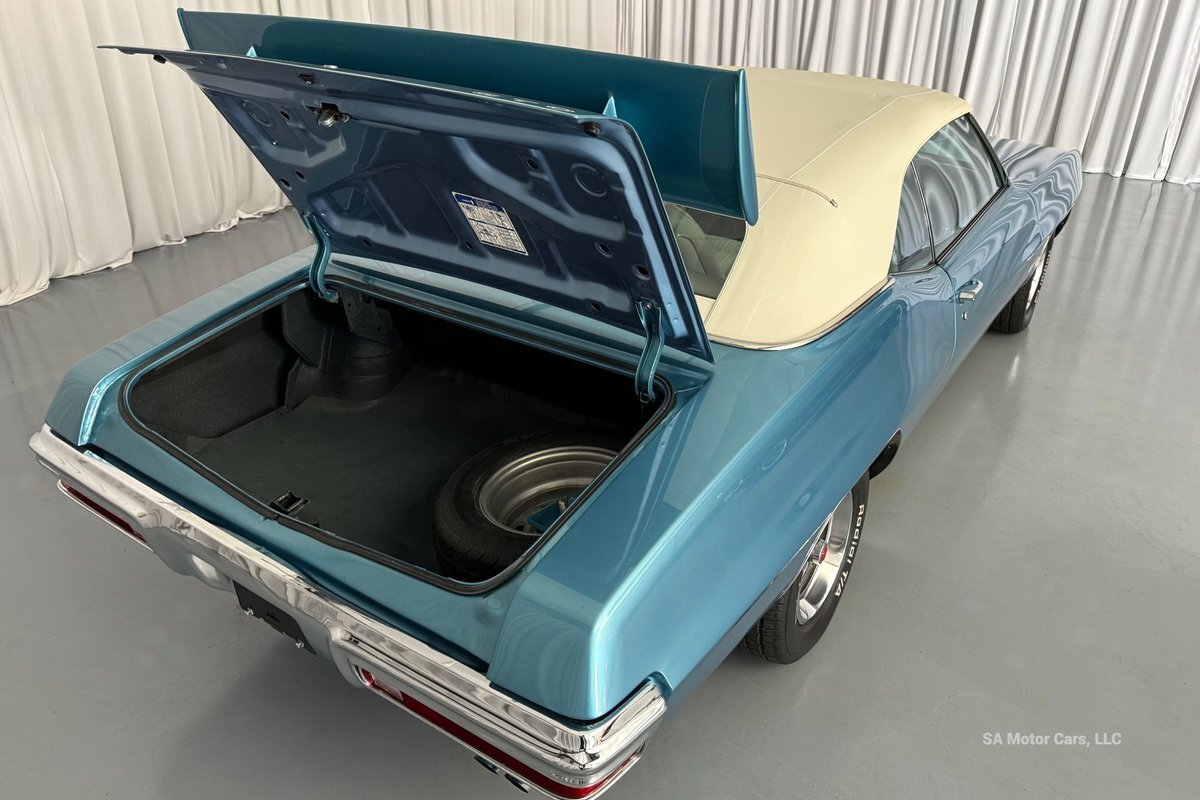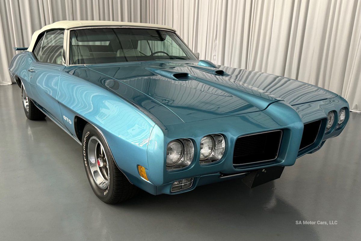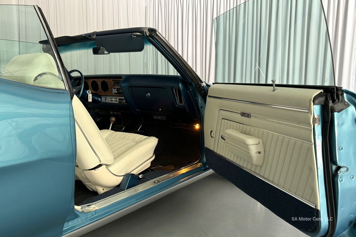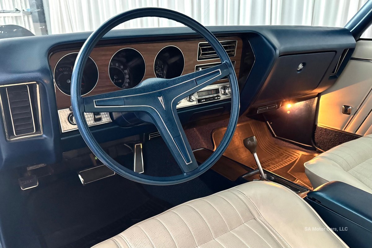 Check out this amazing 1970 Pontiac GTO! This Convertible is Sporting gorgeous Blue Exterior Paint and a White Convertible top! On the exterior this GTO is sporting its GTO emblems on both front panels, front grille and trunk lid. The interior of this GTO is also sporting a beautiful White interior with bucket seats in front and a bench seat in rear, black Pontiac floor mats, 3-spoke Pontiac steering wheel, and so much more!