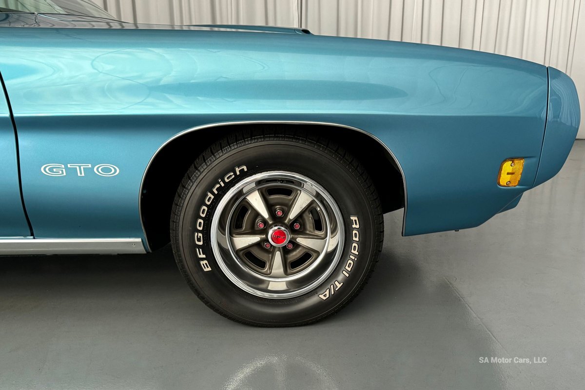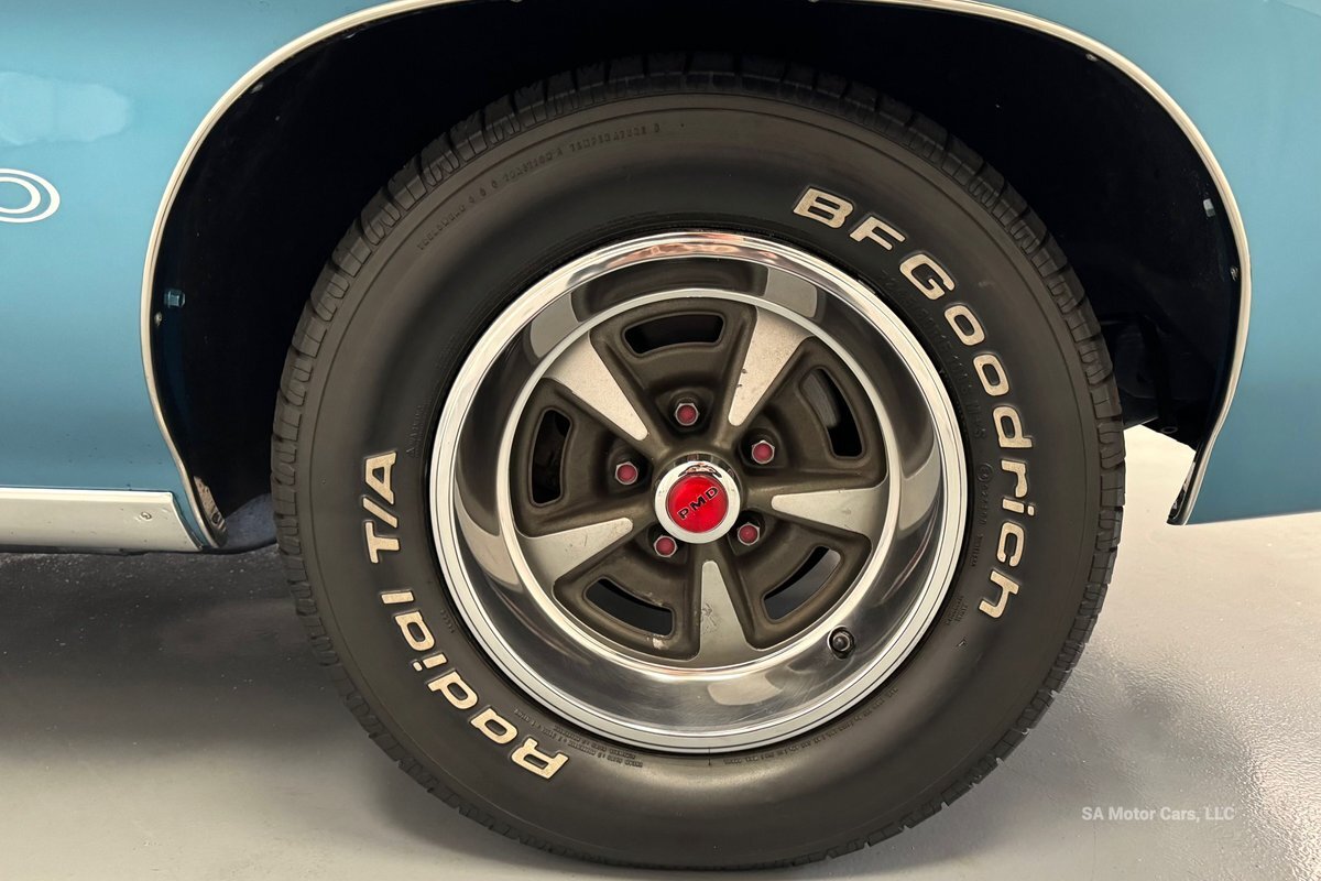 Under the hood of this GTO host 455 V8 Engine! Pushing power to its Automatic Transmission. This GTO has 15" PMD wheels and 245/60R15 BFGoodrich Radial T/A Tires all around.