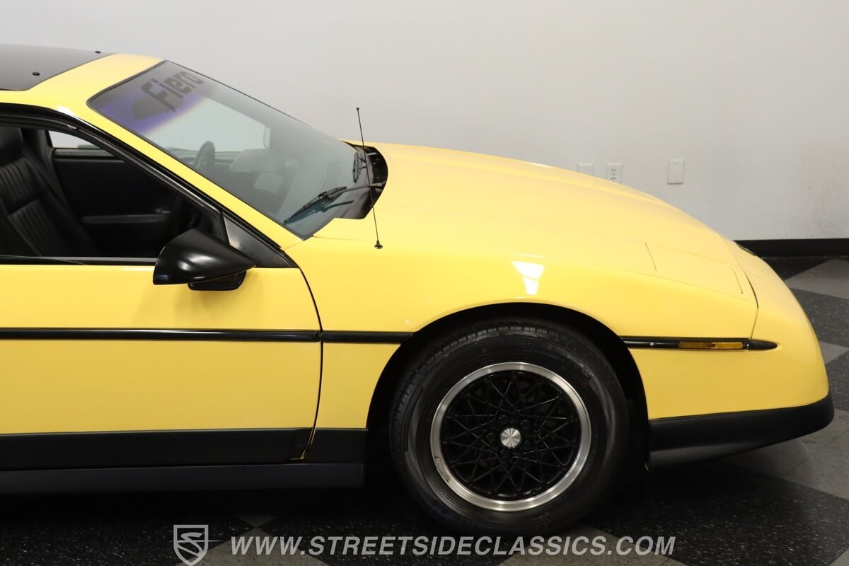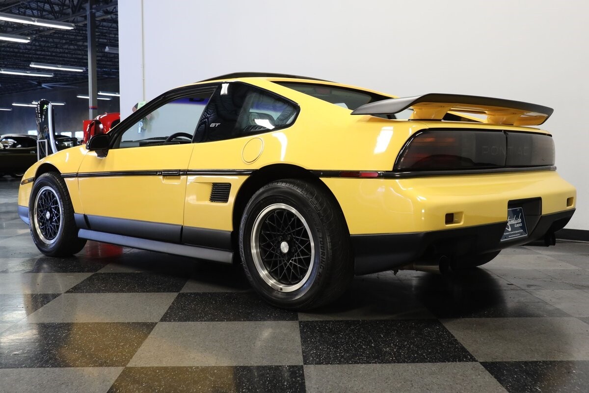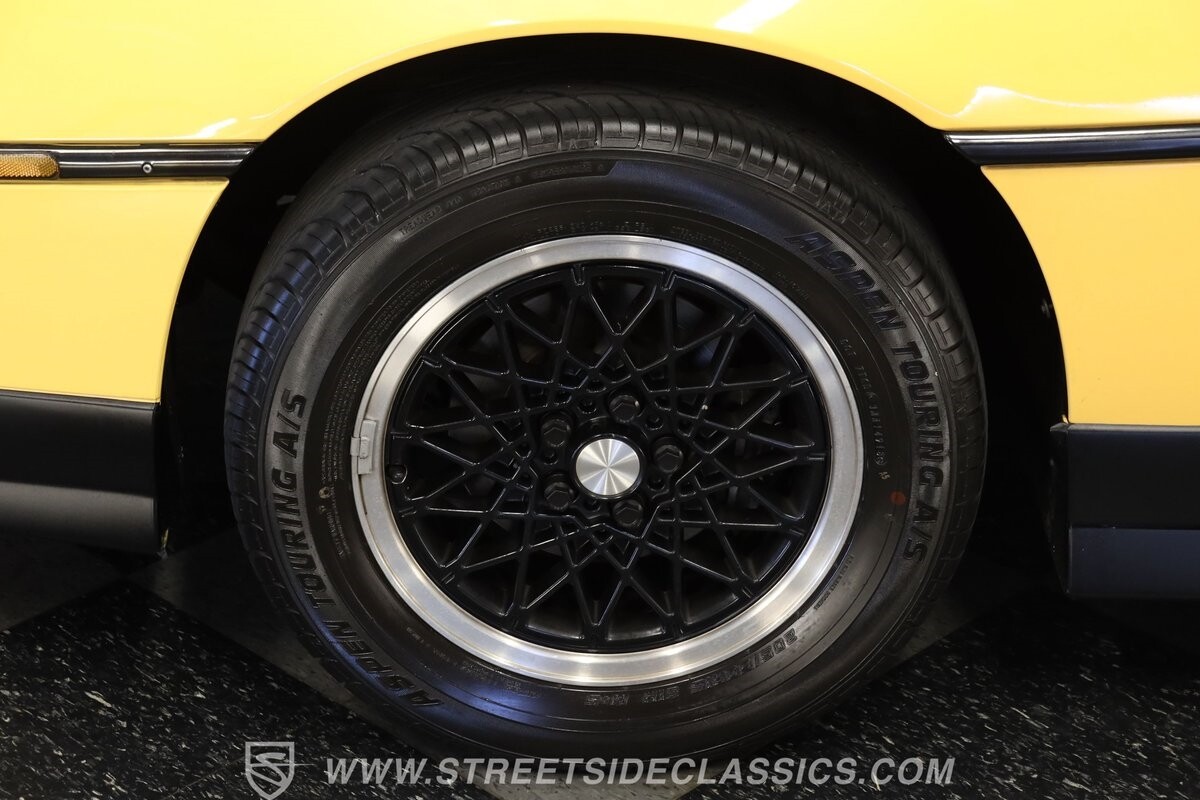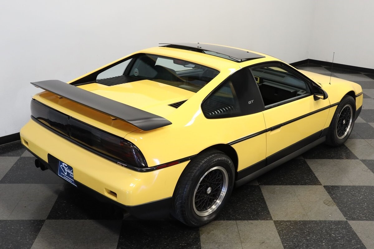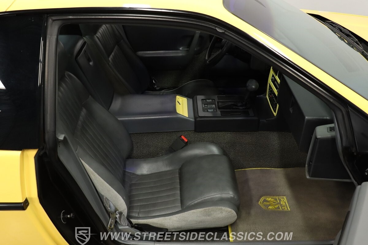 The design of the Fiero GT is irresistible. It looks like a Ferrari with the special front nose, sleek factory body kit, and hidden headlight front end. And the fastback flying buttress rear is pure supercar. Plus, the full-width rear spoiler and quad tailpipes gave it some Trans Am-style flair. And we particularly like the Bright Yellow factory color. It was resprayed later in life to make sure it continues to have a vibrant style. This kind of bold color will draw even more comparisons to a Ferrari, and so will the rarity. This is the final year for the Fiero, and only 241 were done in yellow. When you put all the main options together, including the GT and interior, that number goes down to only one of 21 ever! We also like this yellow because it makes the dark side pop. You can really see the black on the lower body kit, sweeping side trim, blackout rear panel, and the rear spoiler. Even the crosslace wheels coordinate to deliver a thoughtful total package you'll drive with pride.
