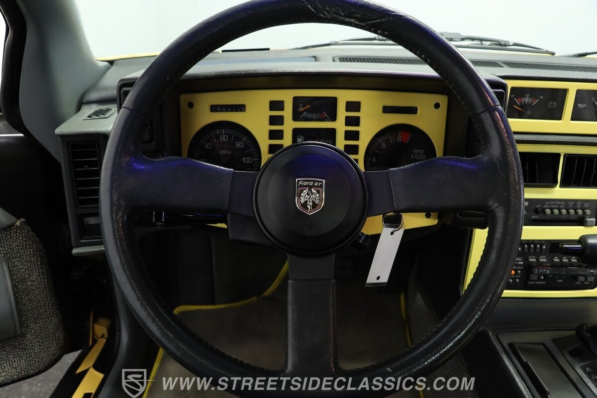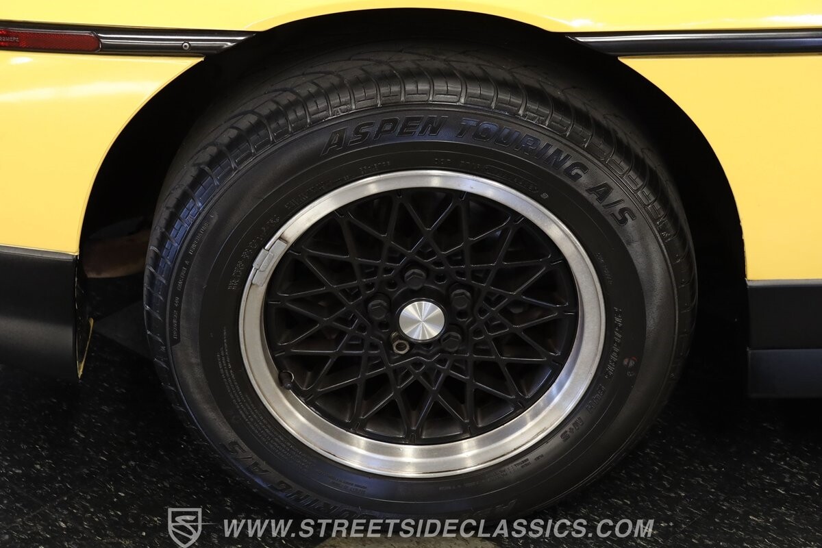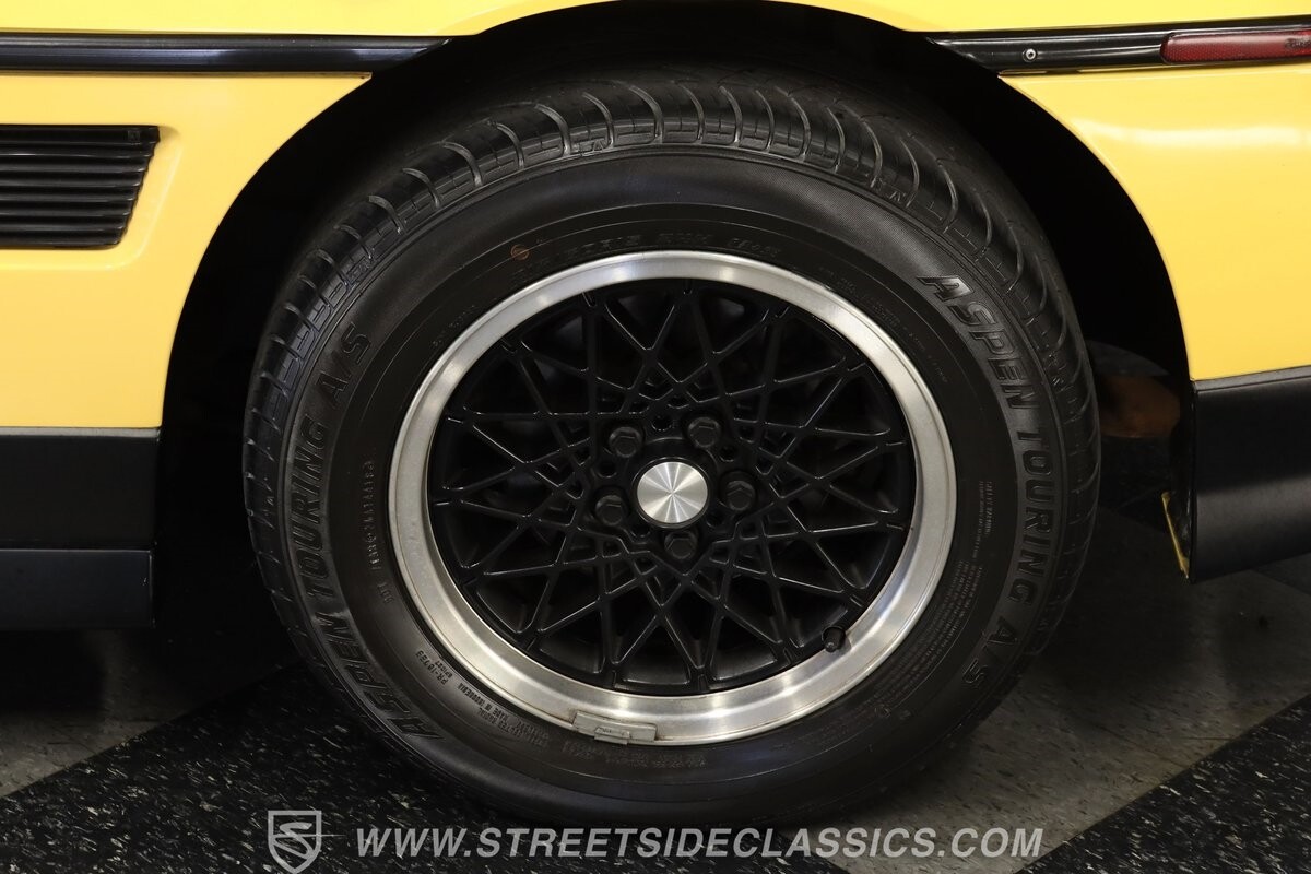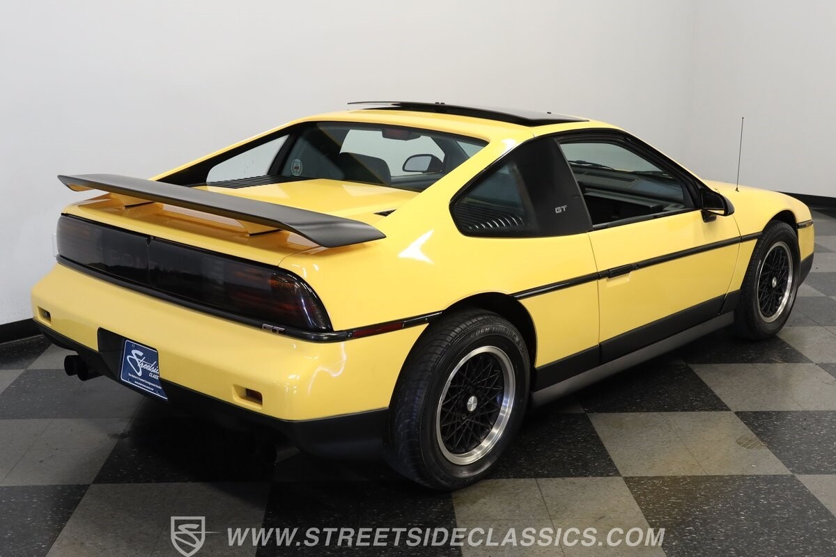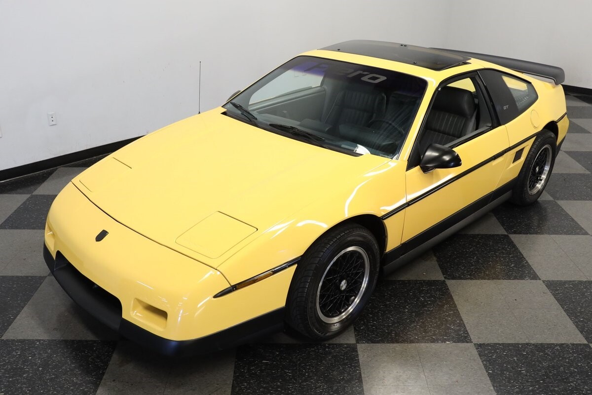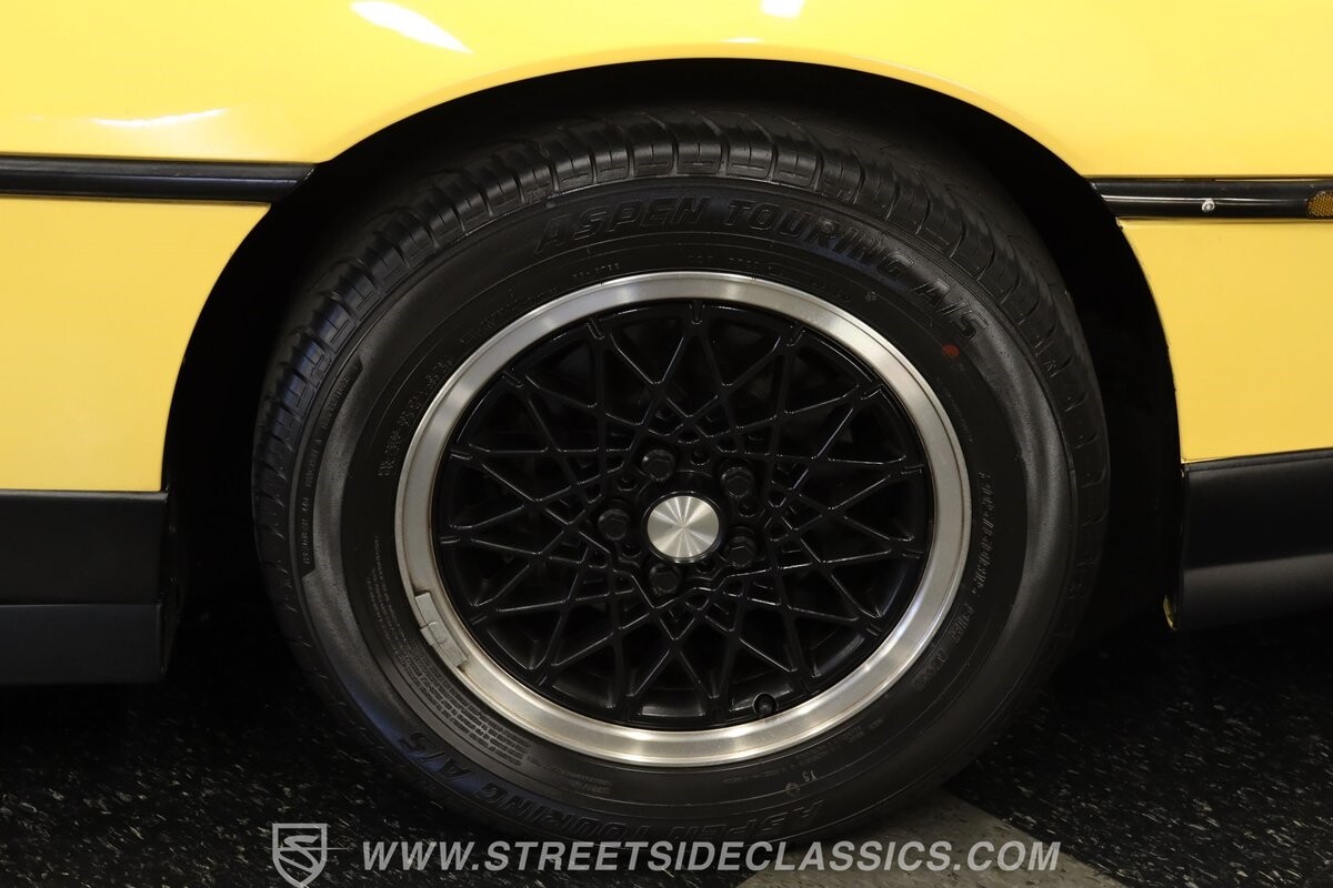 The design of the Fiero GT is irresistible. It looks like a Ferrari with the special front nose, sleek factory body kit, and hidden headlight front end. And the fastback flying buttress rear is pure supercar. Plus, the full-width rear spoiler and quad tailpipes gave it some Trans Am-style flair. And we particularly like the Bright Yellow factory color. It was resprayed later in life to make sure it continues to have a vibrant style. This kind of bold color will draw even more comparisons to a Ferrari, and so will the rarity. This is the final year for the Fiero, and only 241 were done in yellow. When you put all the main options together, including the GT and interior, that number goes down to only one of 21 ever! We also like this yellow because it makes the dark side pop. You can really see the black on the lower body kit, sweeping side trim, blackout rear panel, and the rear spoiler. Even the crosslace wheels coordinate to deliver a thoughtful total package you'll drive with pride.