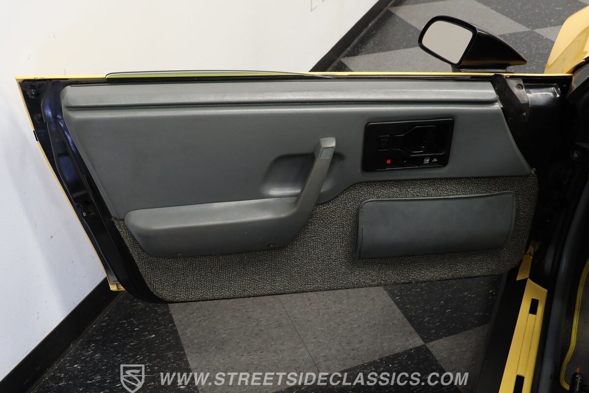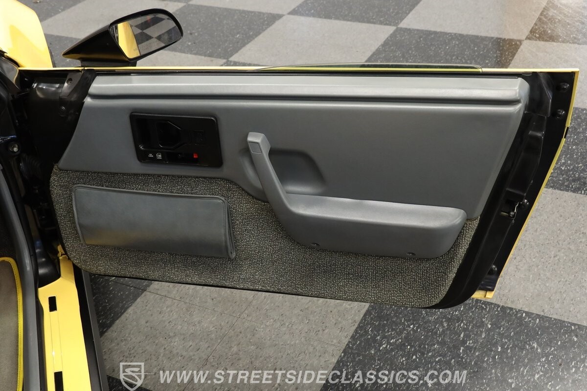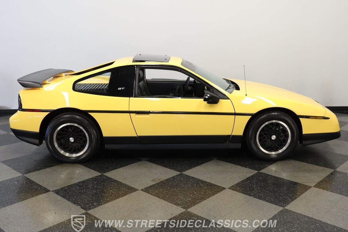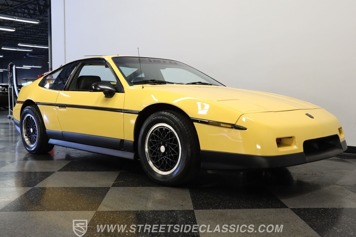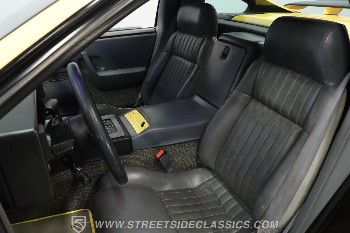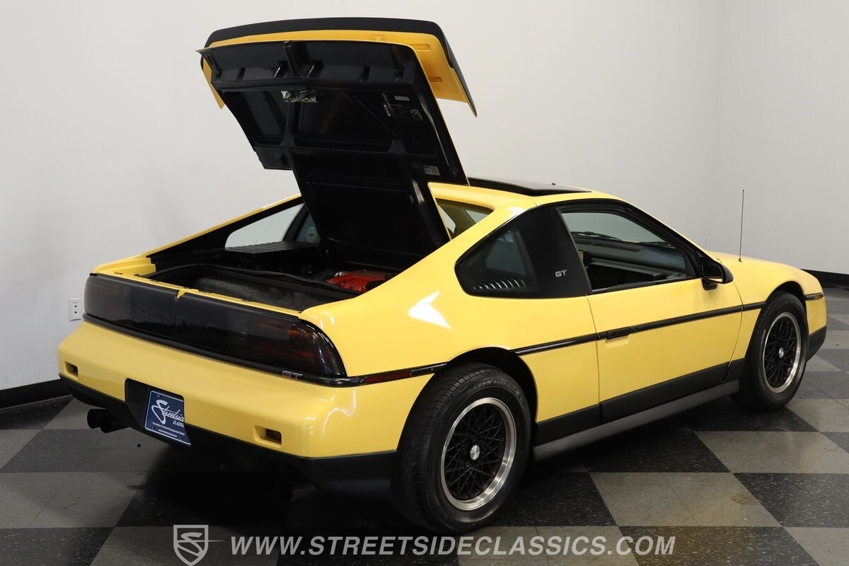The design of the Fiero GT is irresistible. It looks like a Ferrari with the special front nose, sleek factory body kit, and hidden headlight front end. And the fastback flying buttress rear is pure supercar. Plus, the full-width rear spoiler and quad tailpipes gave it some Trans Am-style flair. And we particularly like the Bright Yellow factory color. It was resprayed later in life to make sure it continues to have a vibrant style. This kind of bold color will draw even more comparisons to a Ferrari, and so will the rarity. This is the final year for the Fiero, and only 241 were done in yellow. When you put all the main options together, including the GT and interior, that number goes down to only one of 21 ever! We also like this yellow because it makes the dark side pop. You can really see the black on the lower body kit, sweeping side trim, blackout rear panel, and the rear spoiler. Even the crosslace wheels coordinate to deliver a thoughtful total package you'll drive with pride.
