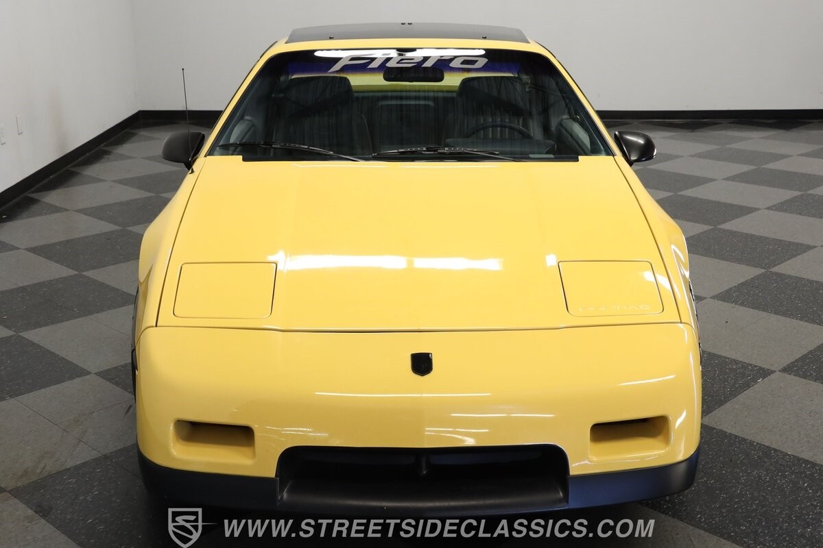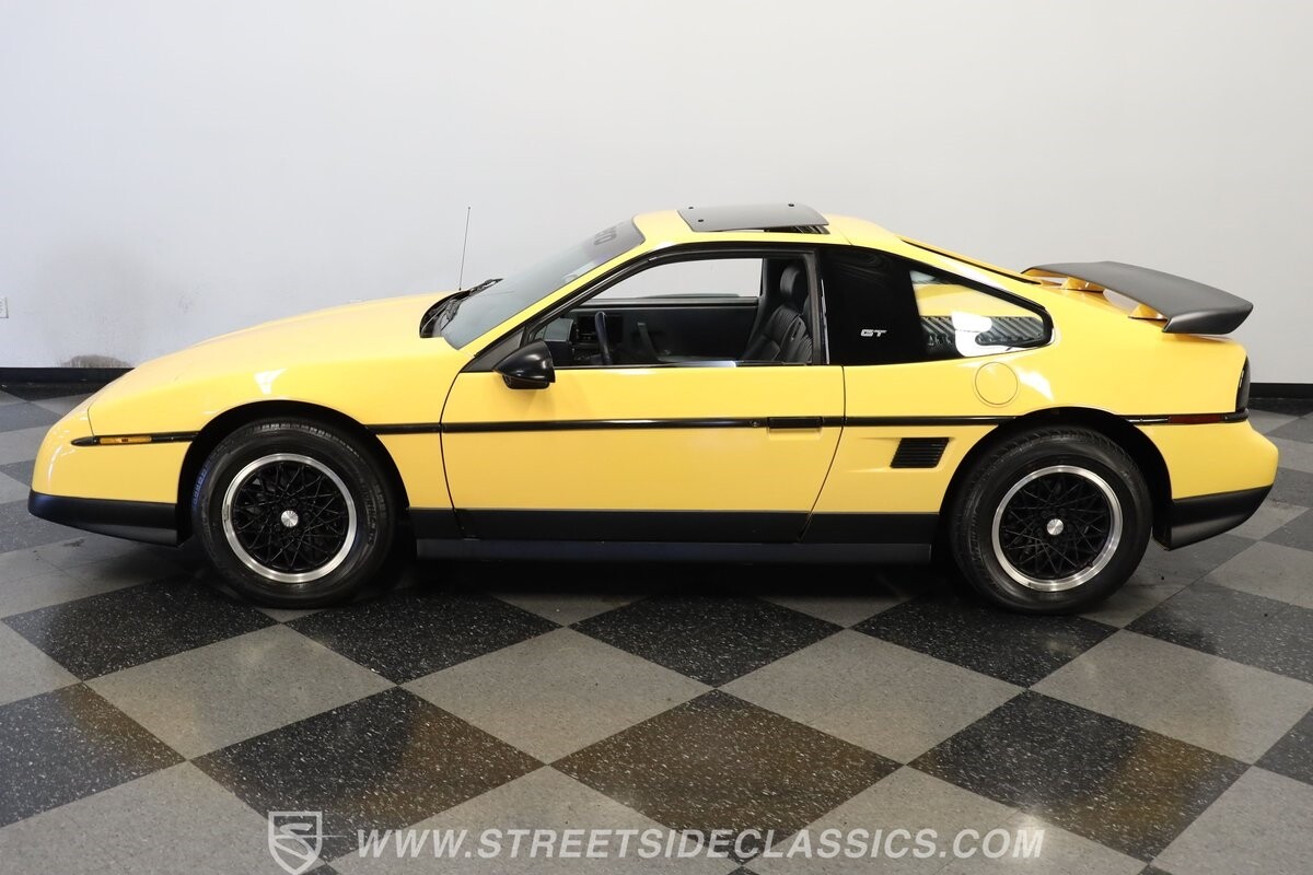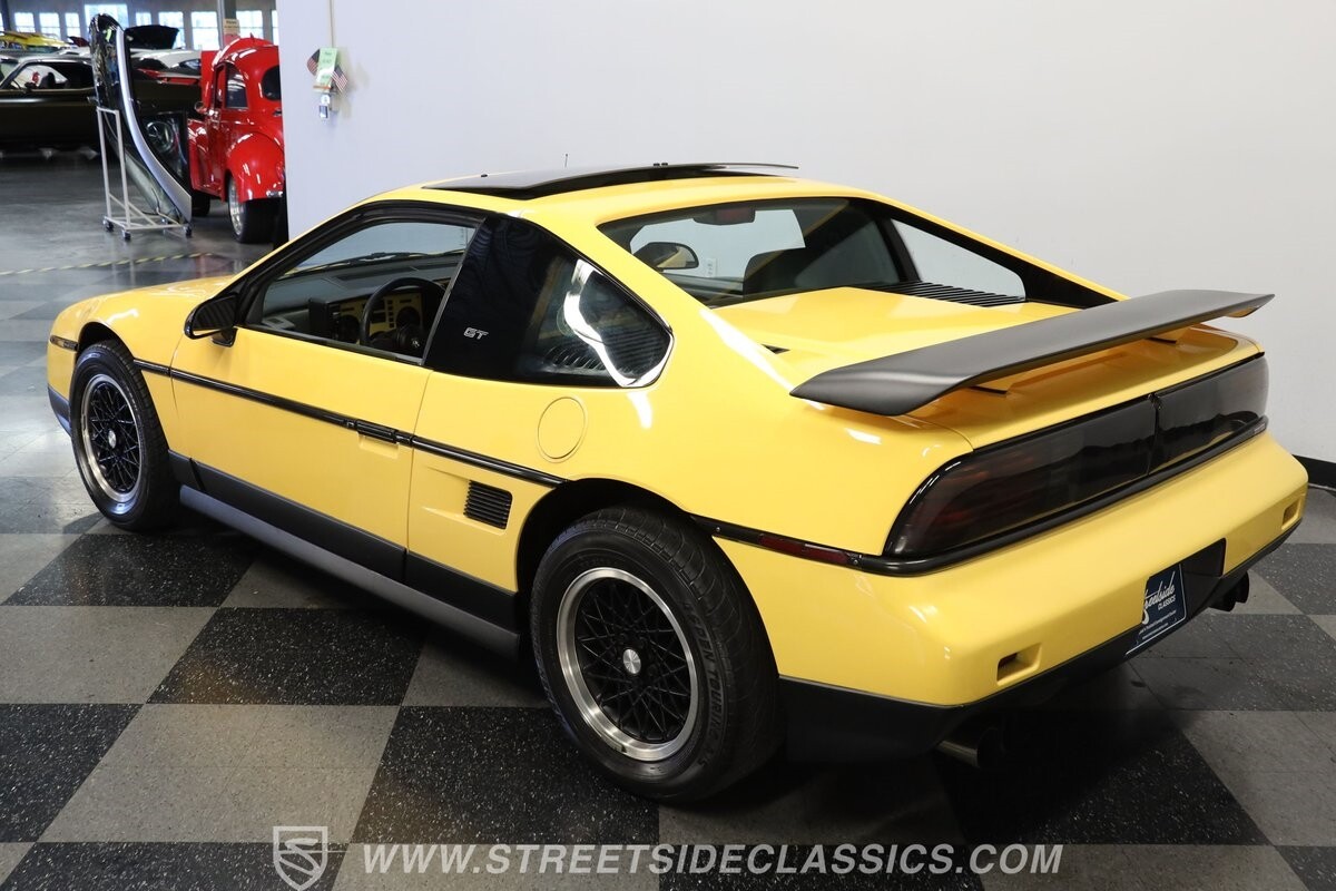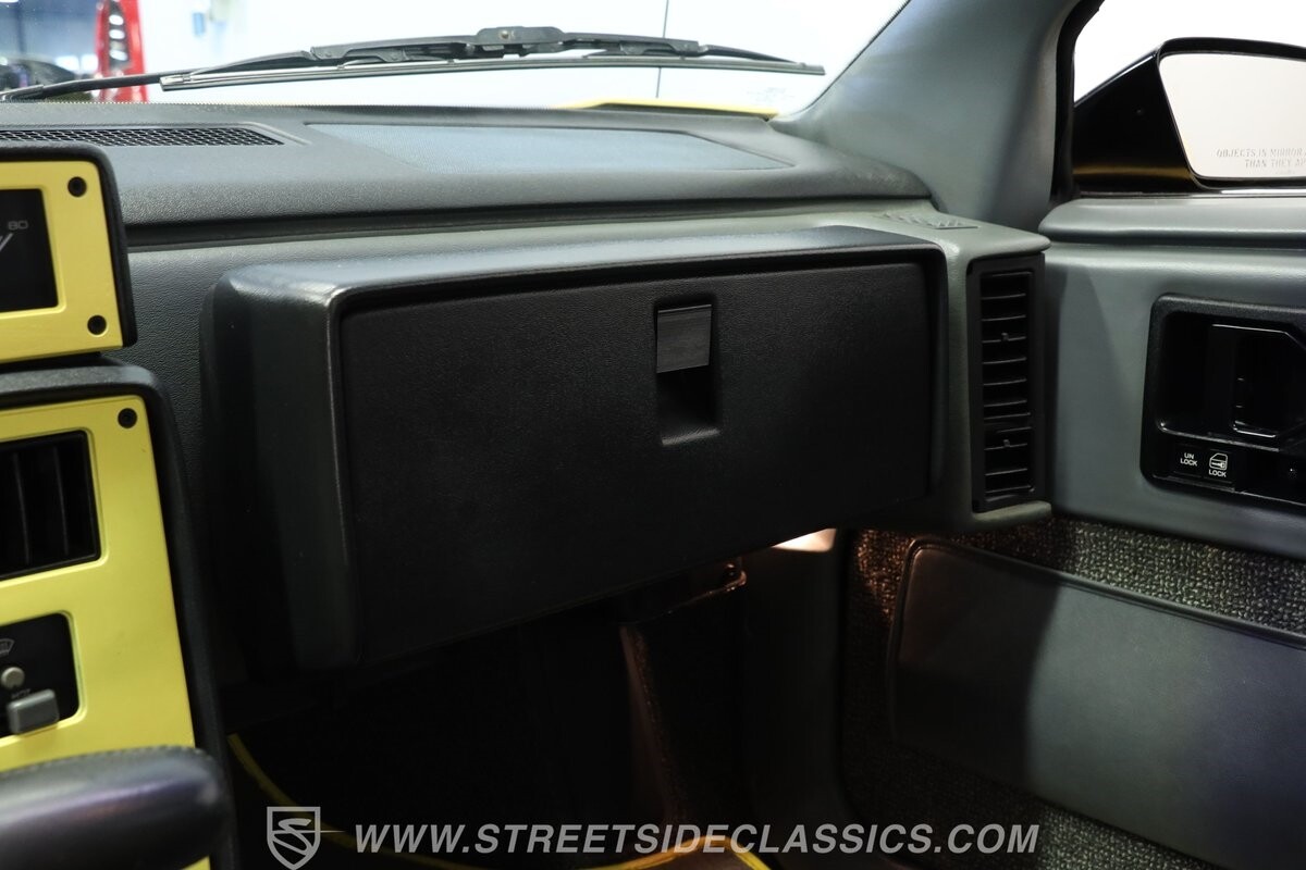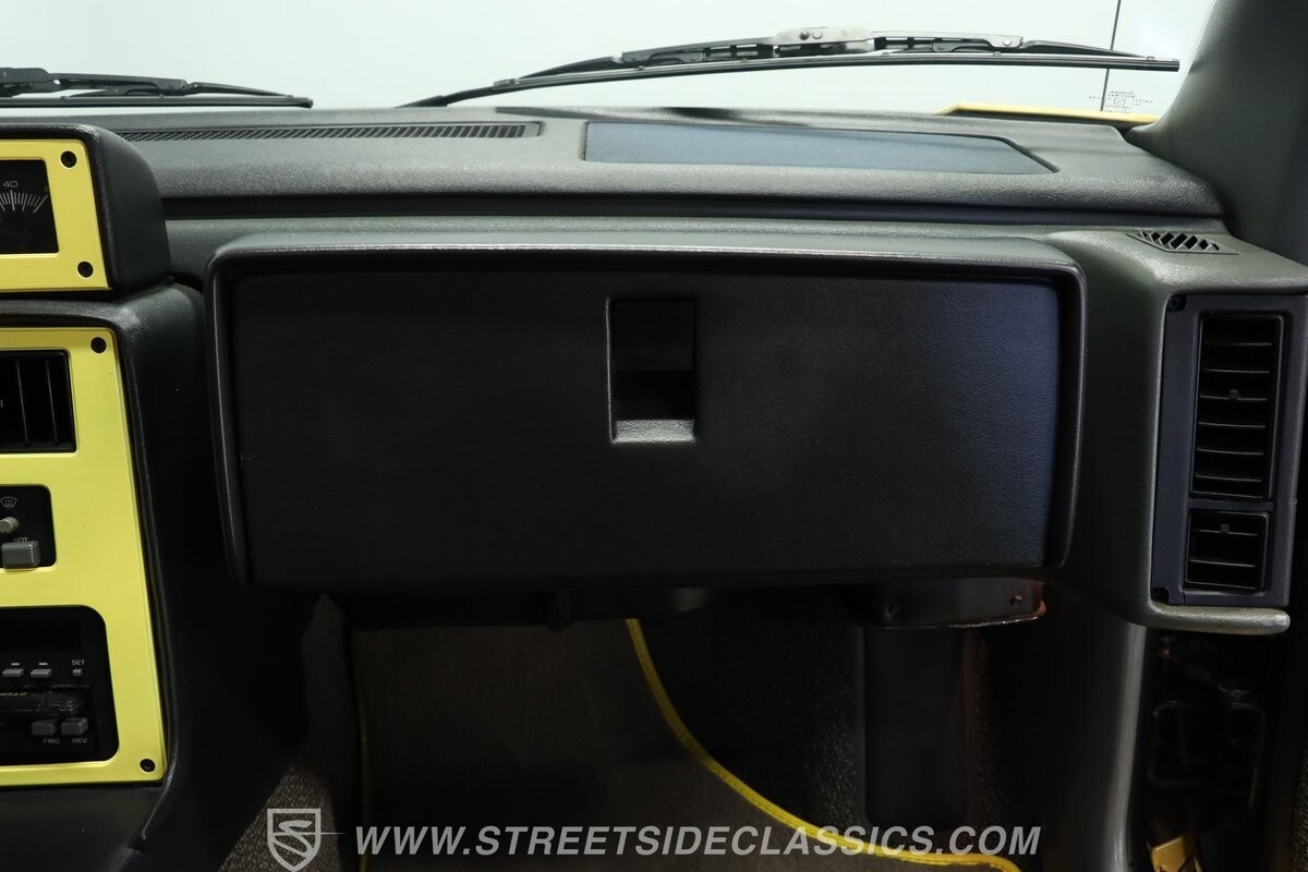 The design of the Fiero GT is irresistible. It looks like a Ferrari with the special front nose, sleek factory body kit, and hidden headlight front end. And the fastback flying buttress rear is pure supercar. Plus, the full-width rear spoiler and quad tailpipes gave it some Trans Am-style flair. And we particularly like the Bright Yellow factory color. It was resprayed later in life to make sure it continues to have a vibrant style. This kind of bold color will draw even more comparisons to a Ferrari, and so will the rarity. This is the final year for the Fiero, and only 241 were done in yellow. When you put all the main options together, including the GT and interior, that number goes down to only one of 21 ever! We also like this yellow because it makes the dark side pop. You can really see the black on the lower body kit, sweeping side trim, blackout rear panel, and the rear spoiler. Even the crosslace wheels coordinate to deliver a thoughtful total package you'll drive with pride.