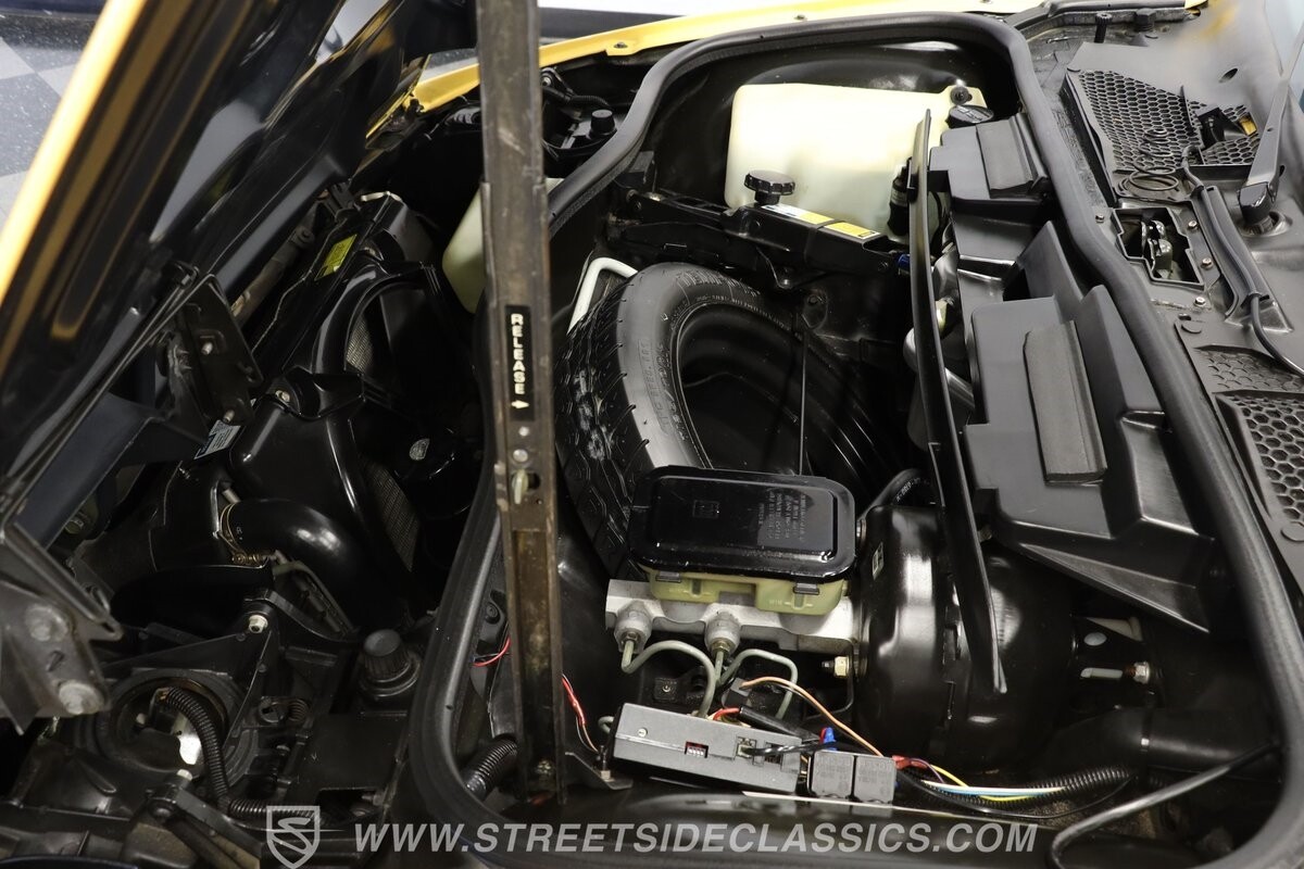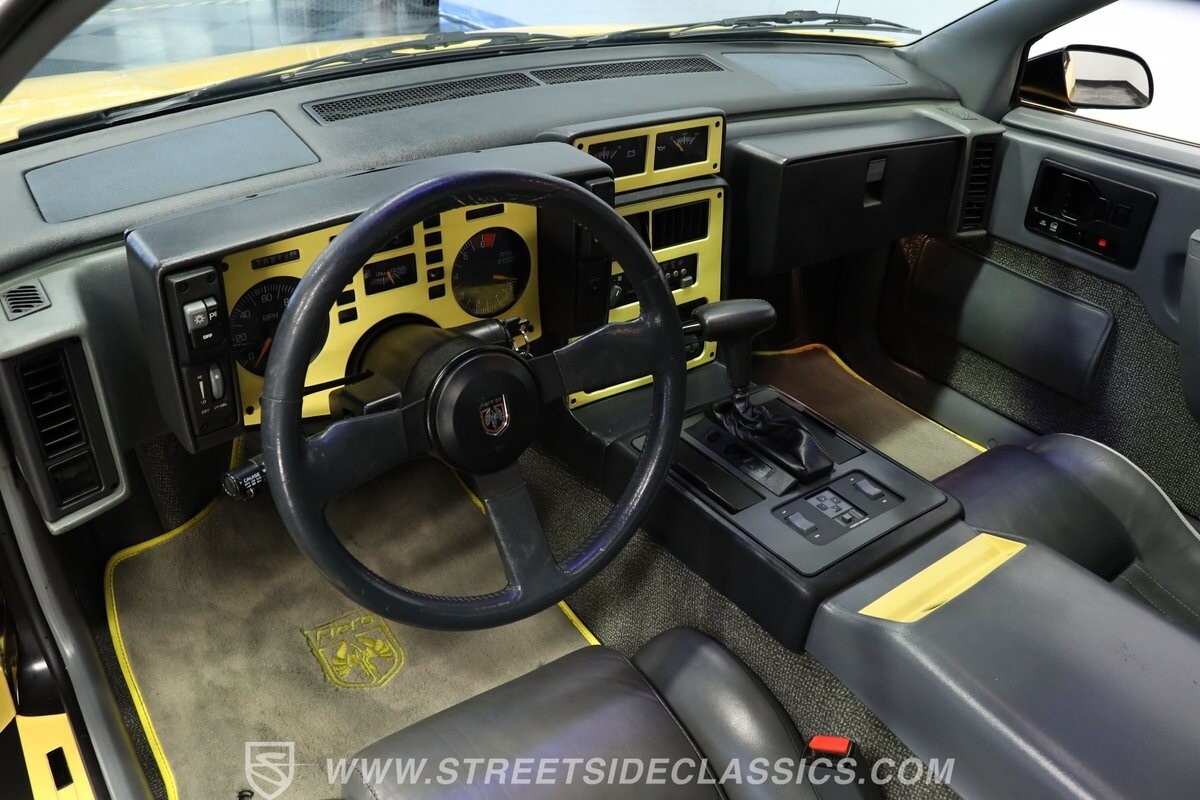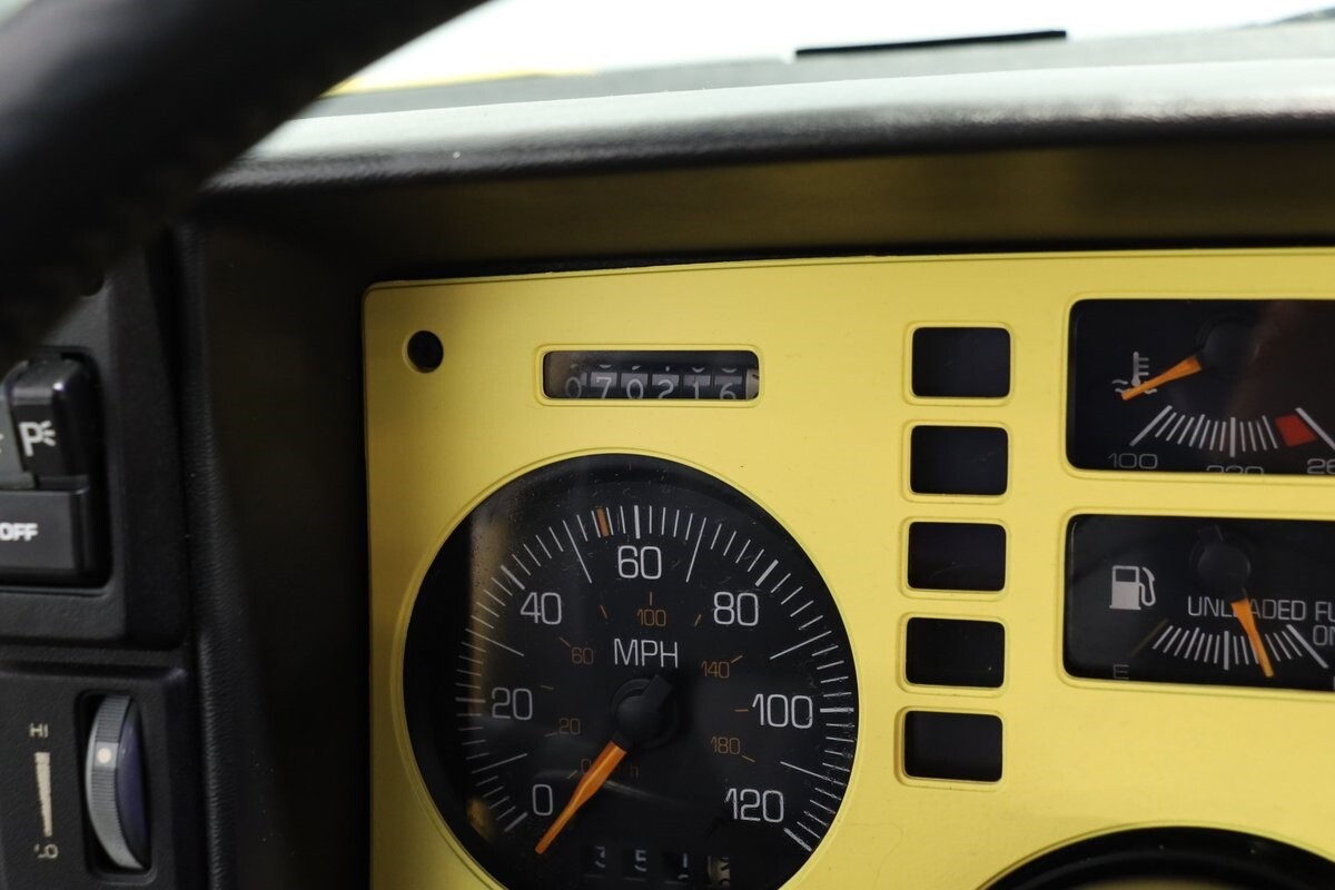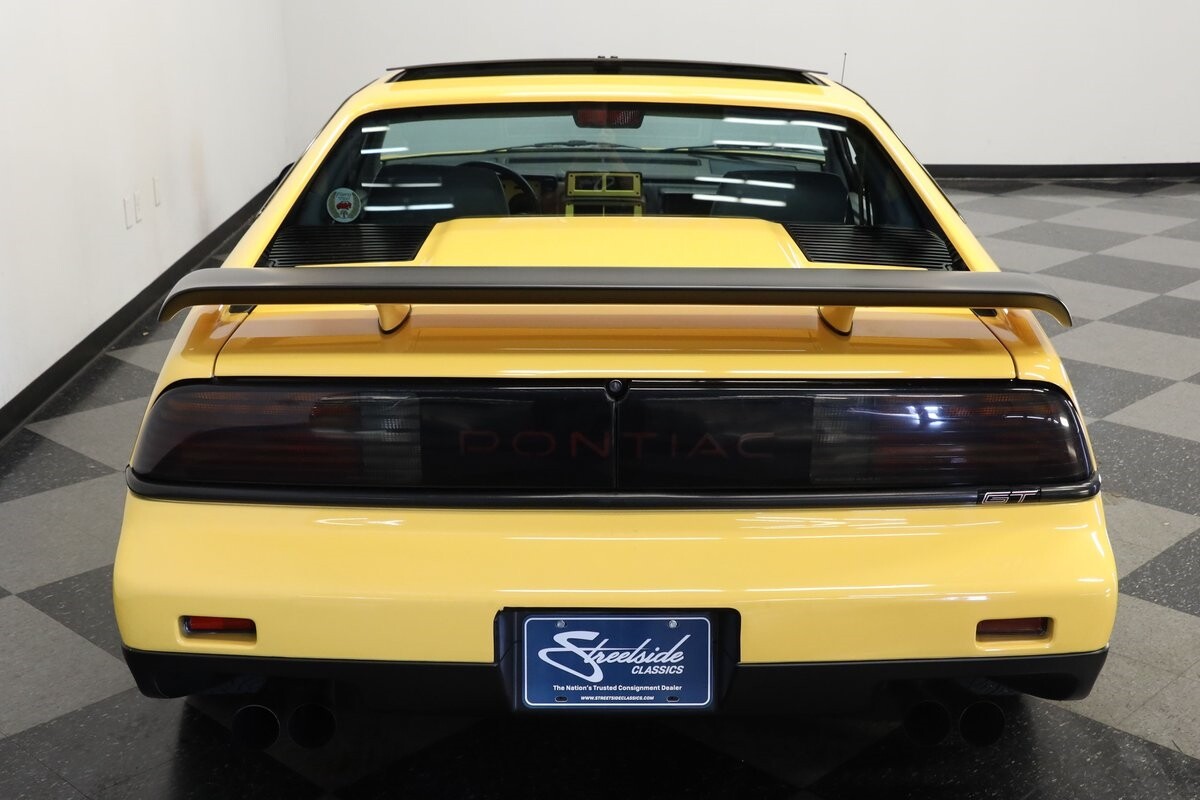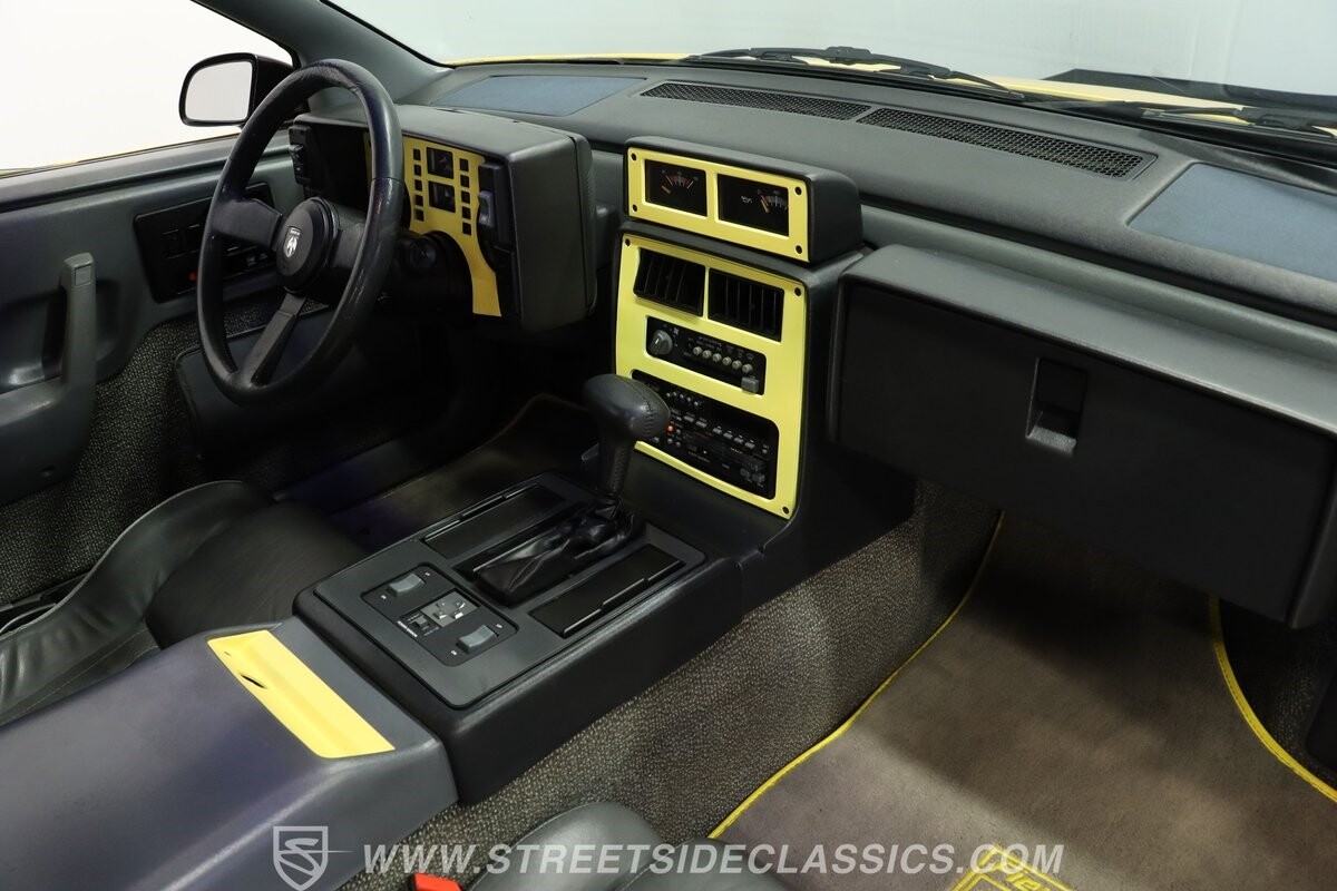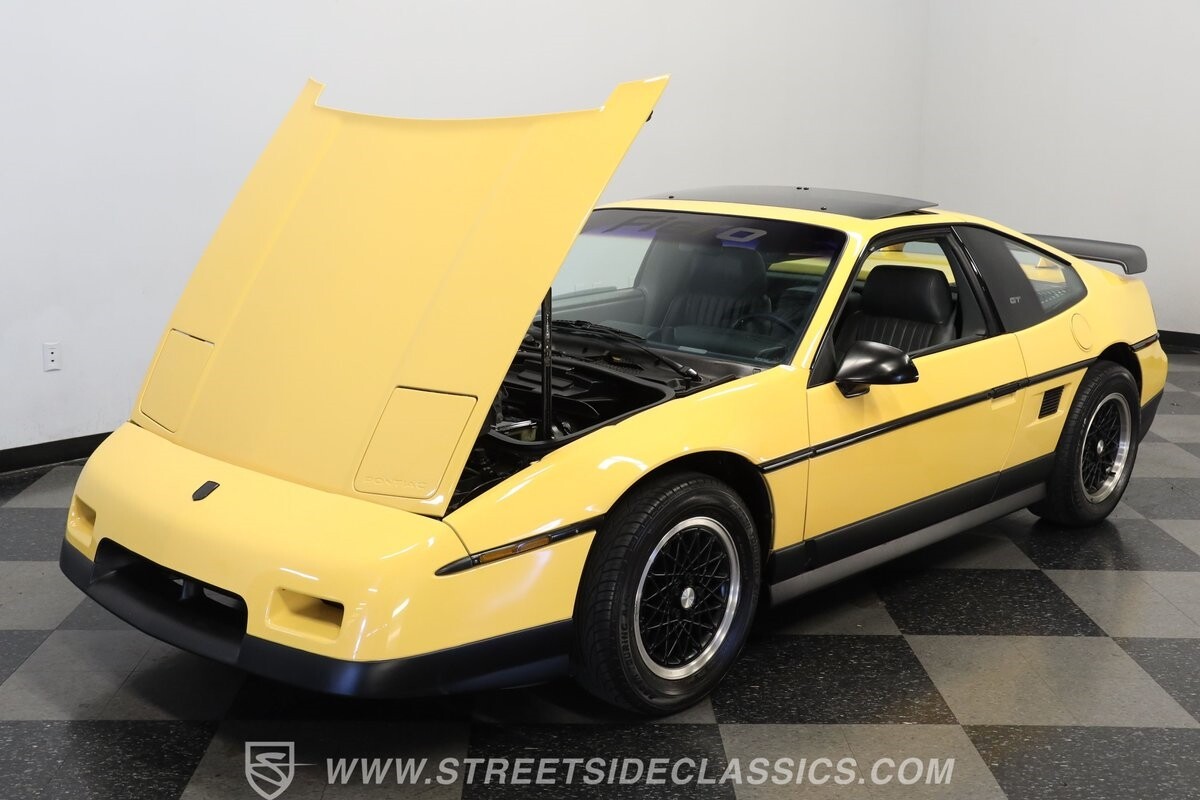 The design of the Fiero GT is irresistible. It looks like a Ferrari with the special front nose, sleek factory body kit, and hidden headlight front end. And the fastback flying buttress rear is pure supercar. Plus, the full-width rear spoiler and quad tailpipes gave it some Trans Am-style flair. And we particularly like the Bright Yellow factory color. It was resprayed later in life to make sure it continues to have a vibrant style. This kind of bold color will draw even more comparisons to a Ferrari, and so will the rarity. This is the final year for the Fiero, and only 241 were done in yellow. When you put all the main options together, including the GT and interior, that number goes down to only one of 21 ever! We also like this yellow because it makes the dark side pop. You can really see the black on the lower body kit, sweeping side trim, blackout rear panel, and the rear spoiler. Even the crosslace wheels coordinate to deliver a thoughtful total package you'll drive with pride.