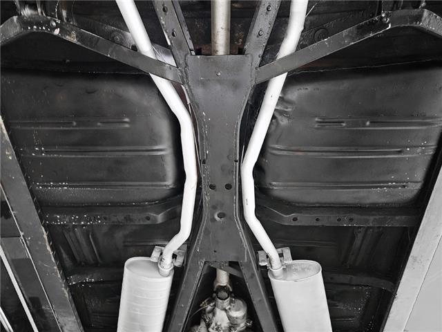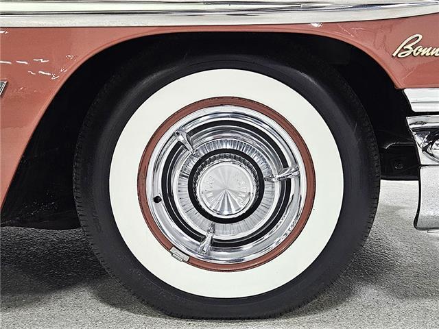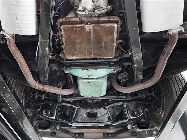 While Chevy’s 283 cubic inch V8 was getting all the attention, Pontiac was busily building horsepower with a considerably larger overhead-valve V8 and multiple carburetors. With 370 cubic inches and legendary “Tri-Power” induction, the 1958 Bonneville grunts out 300 horsepower and 385 lb-ft. of torque. There’s a reason so many engine builders regard the Pontiac V8 as one of the best designs ever. It’s over-built, under-stressed, and uses a forged bottom end, making it incredibly durable. Fully rebuilt with a trio of Rochester 2-barrel carburetors on top, this one runs superbly. It always starts easily and idles nicely, and under most circumstances it’s happy to cruise on the center carburetor. But push through the stop that you can vaguely feel with your toes, and the outer carbs come online and the big Bonneville feels like it suddenly lost 800 pounds. For a big car, this sucker is pretty quick! It’s also nicely detailed with Pontiac Turquoise engine enamel, a correct generator, and the right golden cad finish on the carburetors themselves. Backing up the rumbling V8 is GM’s bulletproof HydraMatic automatic transmission and a set of 3.23 gears, making this coupe a peerless highway cruiser that just loafs along at modern speeds. Power steering makes it incredibly easy to wheel around, even in tight corners, and the brakes are reasonably powerful for the era. The suspension rides like a luxury car, yet the dual exhaust has the faint rumble of a muscle car, perfect for the Bonneville’s split personality. Floors have been professionally replaced and the rockers are solid with no issues, and we just installed a fresh set of 225/75/14 Diamondback wide whitewall radials on the original wheels with factory hubcaps.