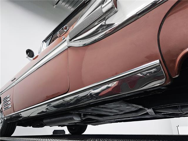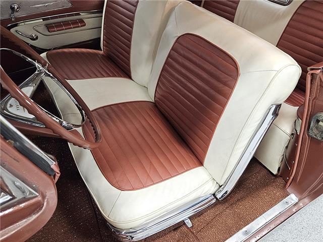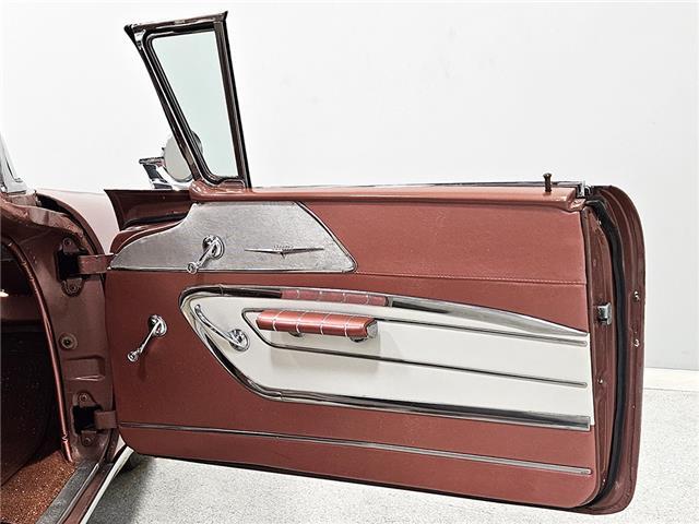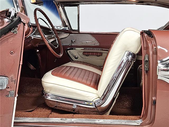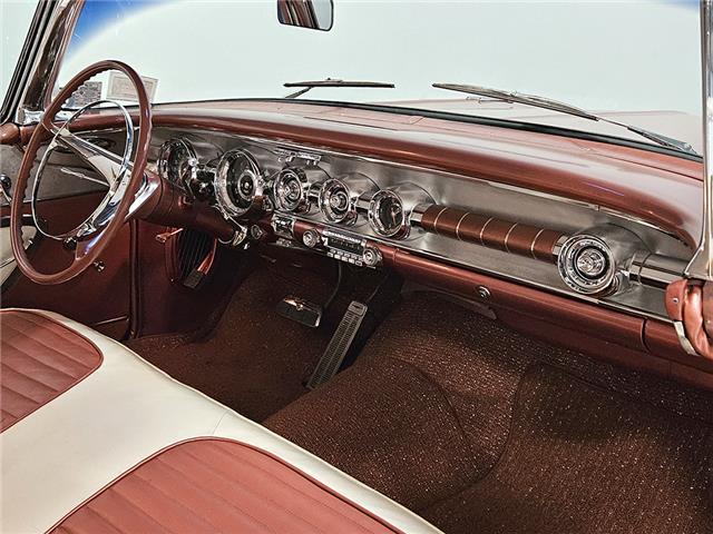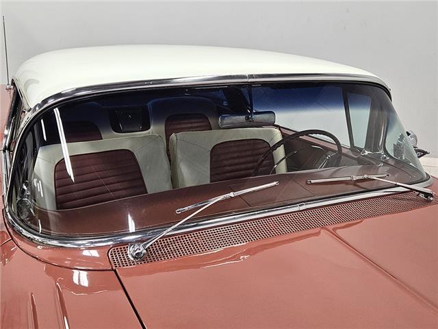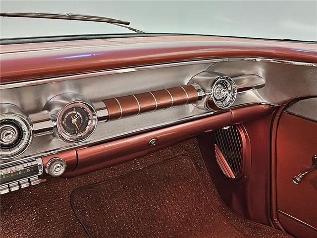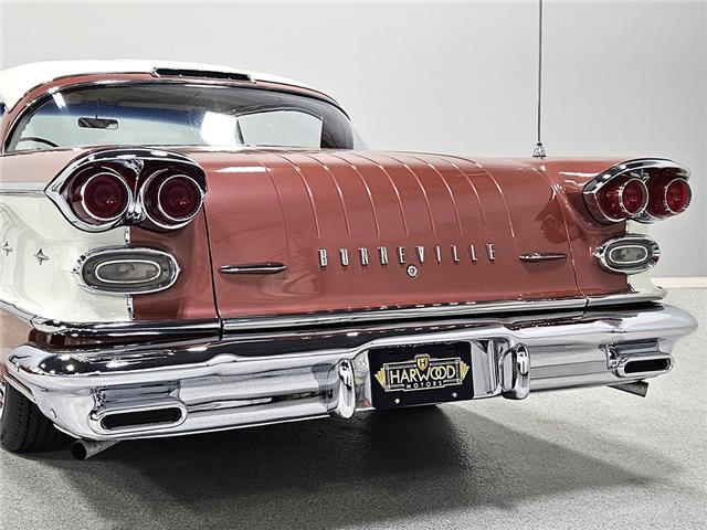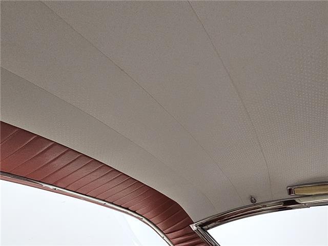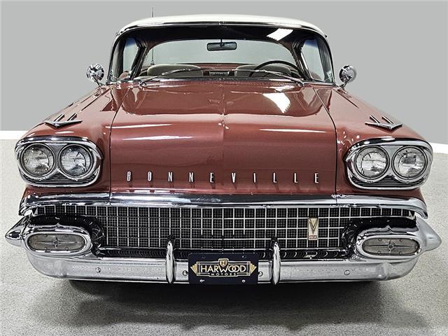 For reasons we don’t quite understand, the all-new 1958 Pontiac Bonneville sport coupe was a tough sell, as only 3481 were built—fewer than any other model except the station wagon. Seeing this stunning top-of-the-line coupe in person makes you wonder why more buyers didn’t fall in love, because it’s just a gorgeous car. GM’s one-year-only styling was a big success in 1958, transforming the automotive landscape almost overnight, and Pontiac was just discovering its swagger with big horsepower and fantastic design. Finished in Patina Ivory over Redwood Copper, it looks every bit the ‘50s cruiser that it is, packing luxury and performance into a right-sized package. Paint and bodywork are excellent, with good gaps and doors that swing closed with a precise-sounding THUNK rather than a loose rattle, a testament to both GM’s build quality and the restoration work. The paint shines up beautifully and lets the brilliant chrome trim do most of the talking. And yes, there’s a LOT of chrome on this car, all of which appears to have been restored at the same time as the rest of the bodywork. There are a few minor signs of age, but nothing really worth mentioning. Instead, it has an all-of-a-piece look that suggests it has always been lovingly maintained but also used as intended. This is a car that stops people in their tracks as they browse through our showroom.