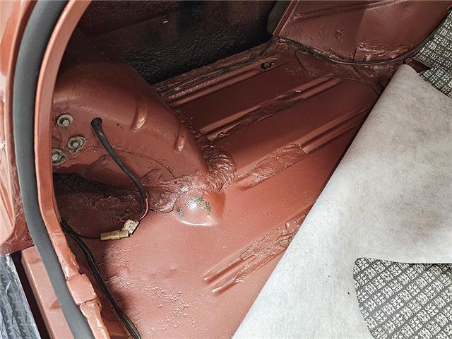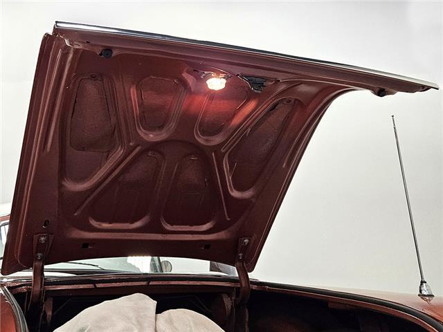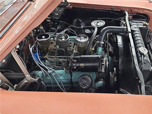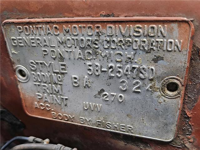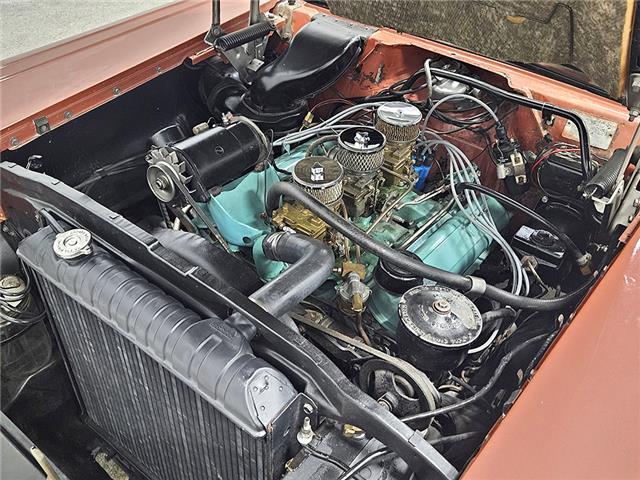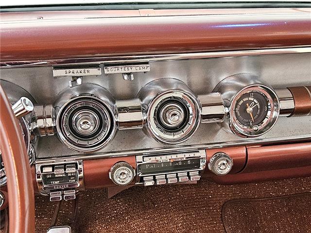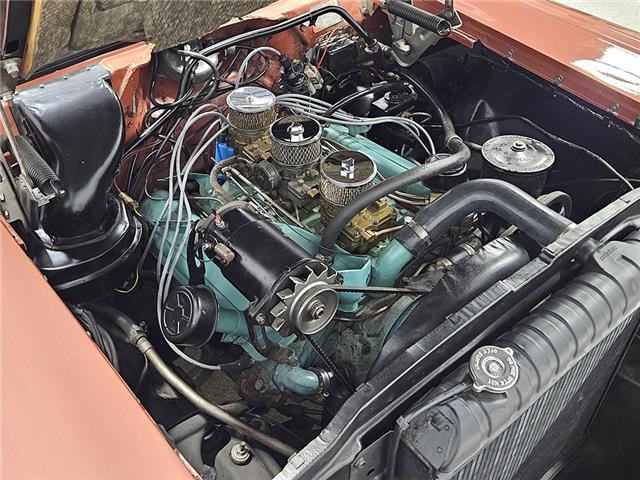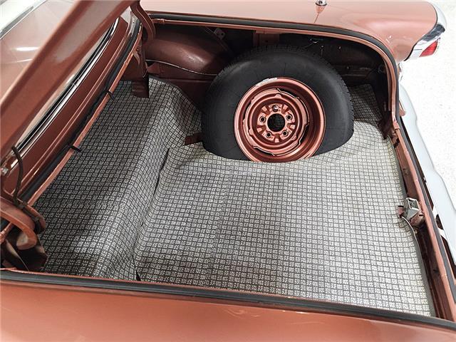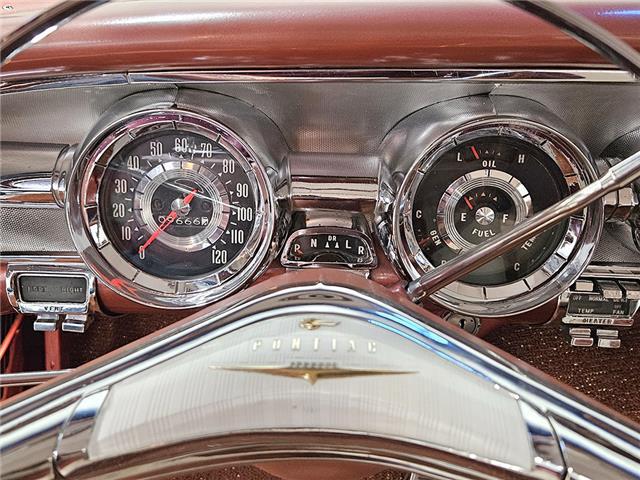 The beautiful copper and ivory interior has that jet-age feel that makes these cars so special. Sparkling carpets are funky, underscoring Pontiac’s swaggering attitude in the late 1950s. The upholstery, carpets, door panels, and headliner were all restored with the rest of the car and aside from some minor comfort marks on the driver’s seat, it shows very little wear. And like the exterior, all the brightwork is in great shape, from the delicate horn ring to the band of stainless that spans the entire dashboard. Big, round gauges keep an eye on the engine’s vitals and they all work like they should, with secondary controls for the ventilation and heating system tucked underneath. The original Wonder Bar radio is still in the center of the dash, although it, and the clock above it, are currently inop. There’s new weatherstripping in the doors so they feel tight and rattle-free and a decent amount of sound-deadening makes this feel like the luxury car that it is. In back, check out that cool center arm rest that rises up from the center of the lower seat cushion, almost creating a separate set of bucket seats. And there’s a positively massive trunk that features a correct mat set and a full-sized spare tire assembly.