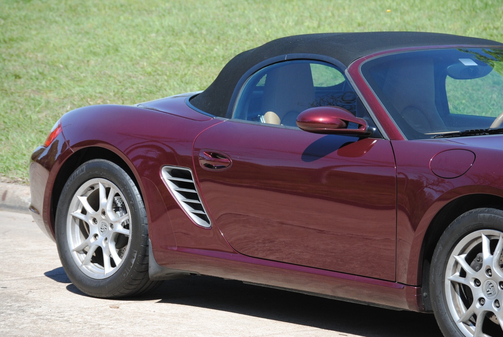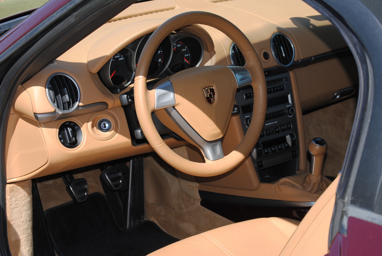 BEAUTIFULLY well preserved '05 Porsche Boxster Cabriolet with stunning color scheme of Carmen Red (almost burgandy) and superb Porsche Palomino Tan leather interior.Because it's a 5 speed manual with a mid engine motor it is thrilling to drive. It has all of the panache that you would expect from a newer Porsche.