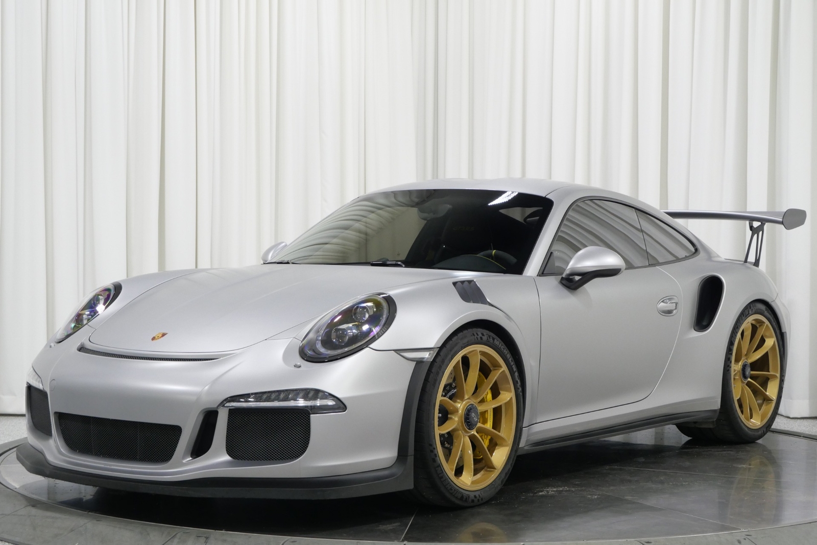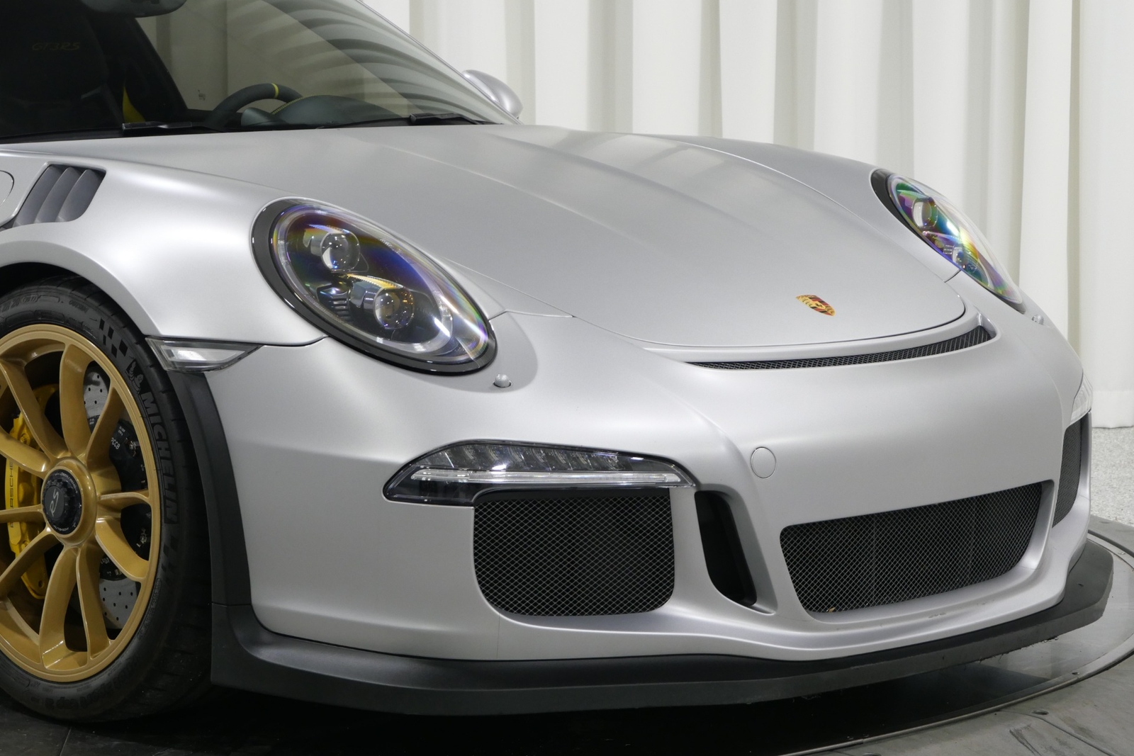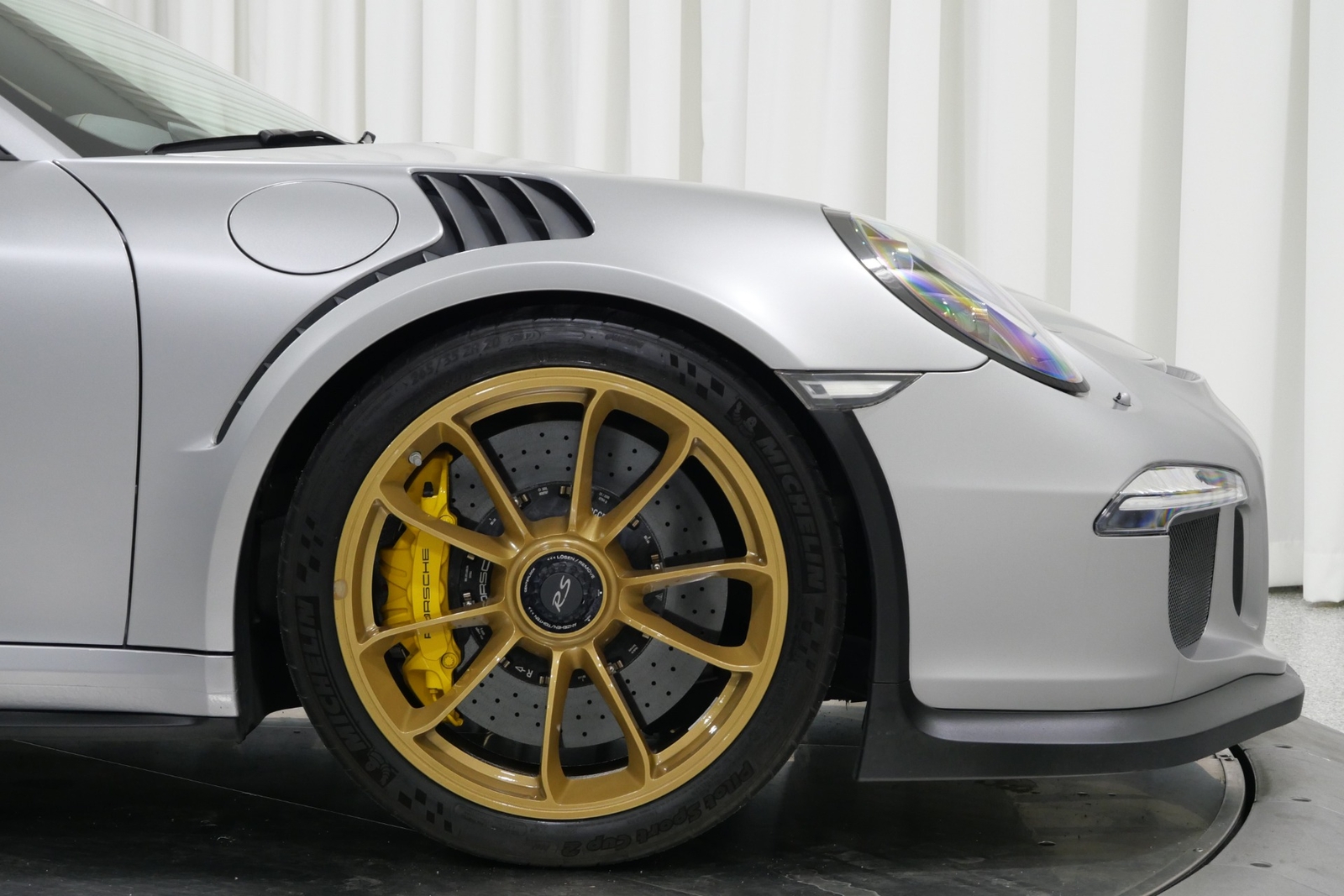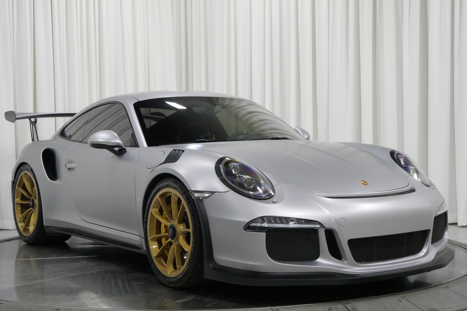 We have just added to our extensive exotic car inventory a beautiful 2016 Porsche 911 GT3 RS in GT Silver over Black and GT Silver interior and only 10,285 miles. This GT3 RS is loaded with: 4.0 Liter H6, PDK transmission, 20/21 inch centerlock wheels in gold, carbon ceramic brakes, front axle lift, LED headlamps in black with dynamic lighting, headlight washers in exterior color, carbon fiber racing seats with pepita cloth seat inserts, deviated stitching package in yellow (steering wheel, seats and headrests, dash, door panels, rear side panels, rear seat delete area, armrests, door handles, more), sound package plus, fire extinguisher, Sport Chrono package with track precision app, Sport Chrono face in white, instrument dials in white, Porsche PCM with navigation, center console lid with embossed Porsche crest, seat belts in Speed Yellow, floor mats, Alcantara steering wheel with yellow 12 0'clock marker, auto dimming mirrors with rain sensor, alu look fuel cap, pedals and footrest in aluminum, illuminated door sills in carbon fiber, extended range fuel tank and much more. The entire vehicle is protected with a matte clear wrap.