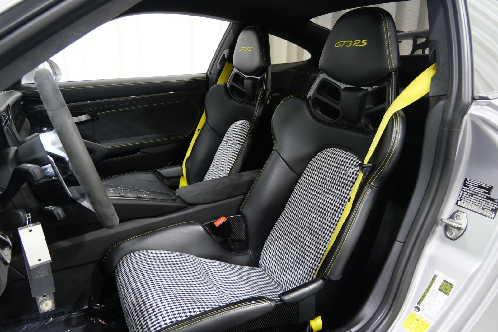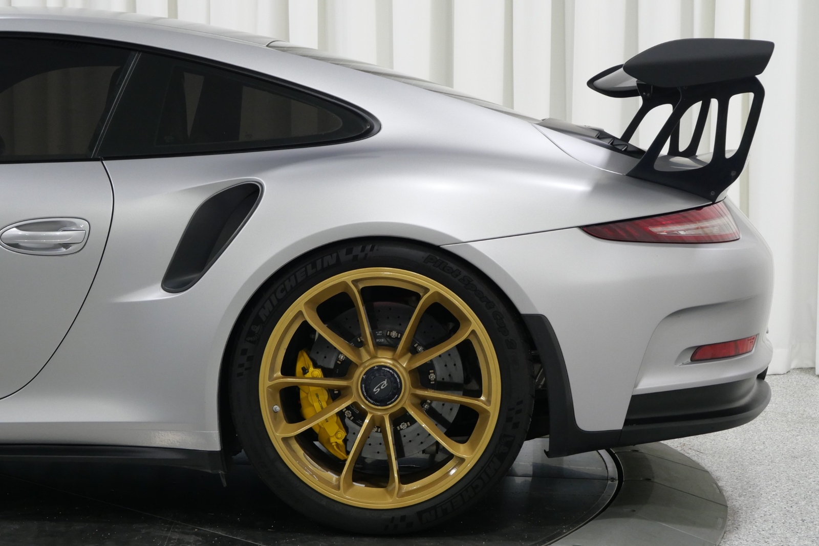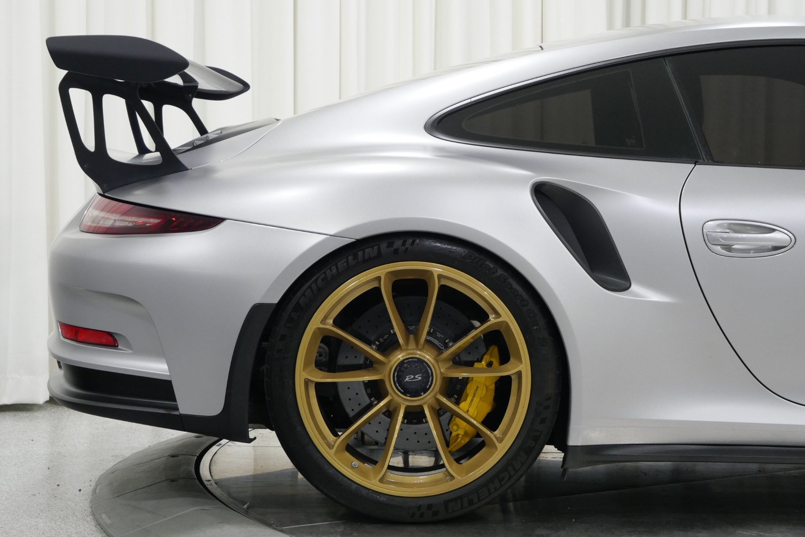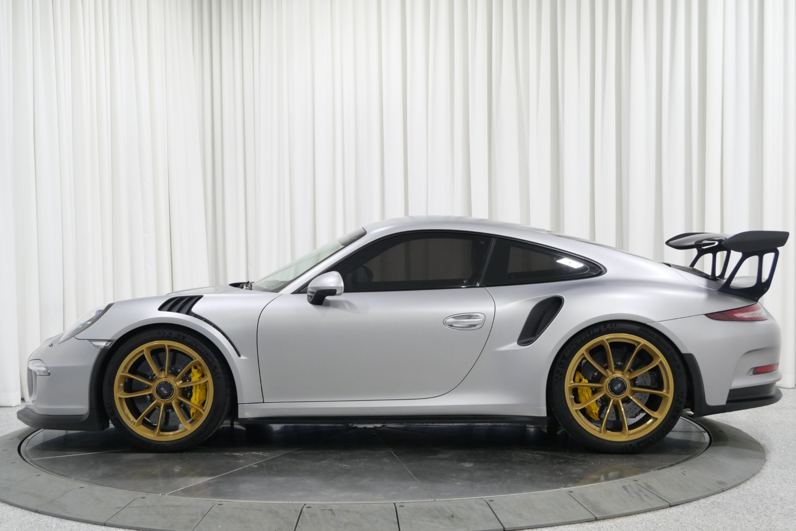 We have just added to our extensive exotic car inventory a beautiful 2016 Porsche 911 GT3 RS in GT Silver over Black and GT Silver interior and only 10,285 miles. This GT3 RS is loaded with: 4.0 Liter H6, PDK transmission, 20/21 inch centerlock wheels in gold, carbon ceramic brakes, front axle lift, LED headlamps in black with dynamic lighting, headlight washers in exterior color, carbon fiber racing seats with pepita cloth seat inserts, deviated stitching package in yellow (steering wheel, seats and headrests, dash, door panels, rear side panels, rear seat delete area, armrests, door handles, more), sound package plus, fire extinguisher, Sport Chrono package with track precision app, Sport Chrono face in white, instrument dials in white, Porsche PCM with navigation, center console lid with embossed Porsche crest, seat belts in Speed Yellow, floor mats, Alcantara steering wheel with yellow 12 0'clock marker, auto dimming mirrors with rain sensor, alu look fuel cap, pedals and footrest in aluminum, illuminated door sills in carbon fiber, extended range fuel tank and much more. The entire vehicle is protected with a matte clear wrap.