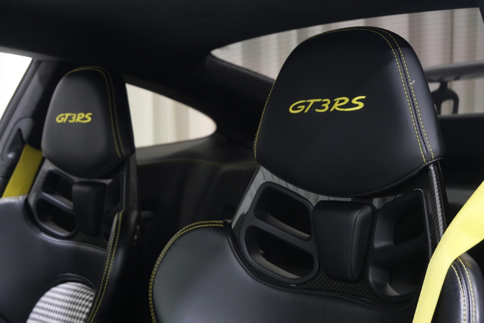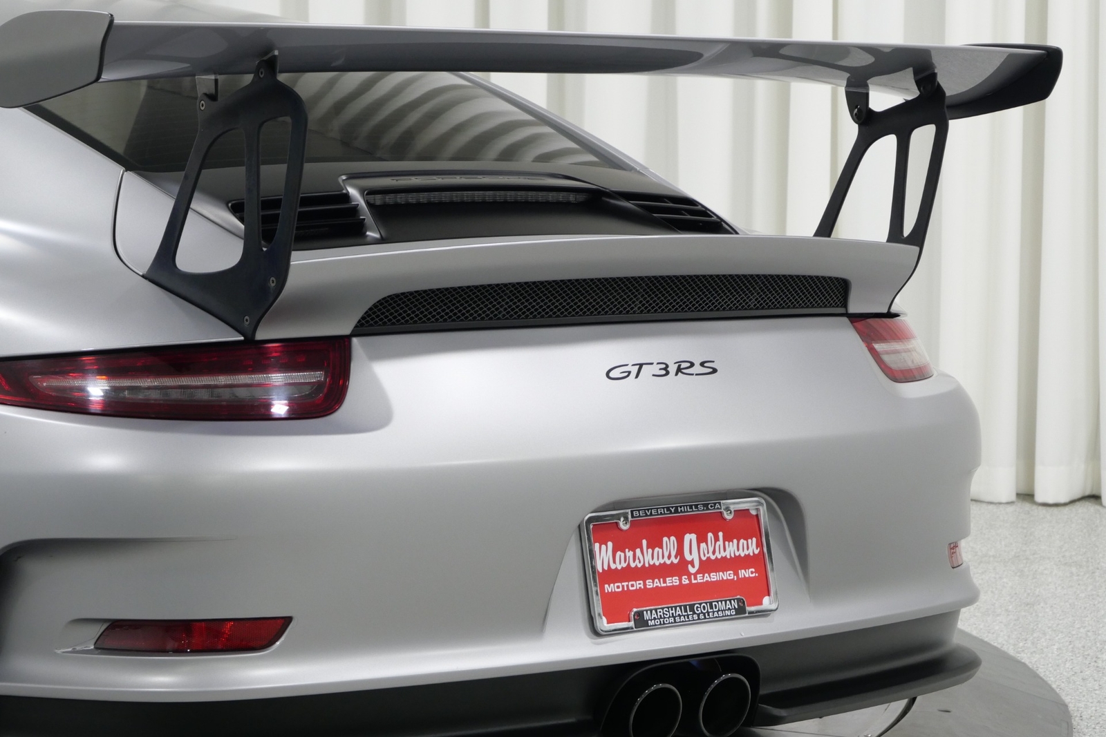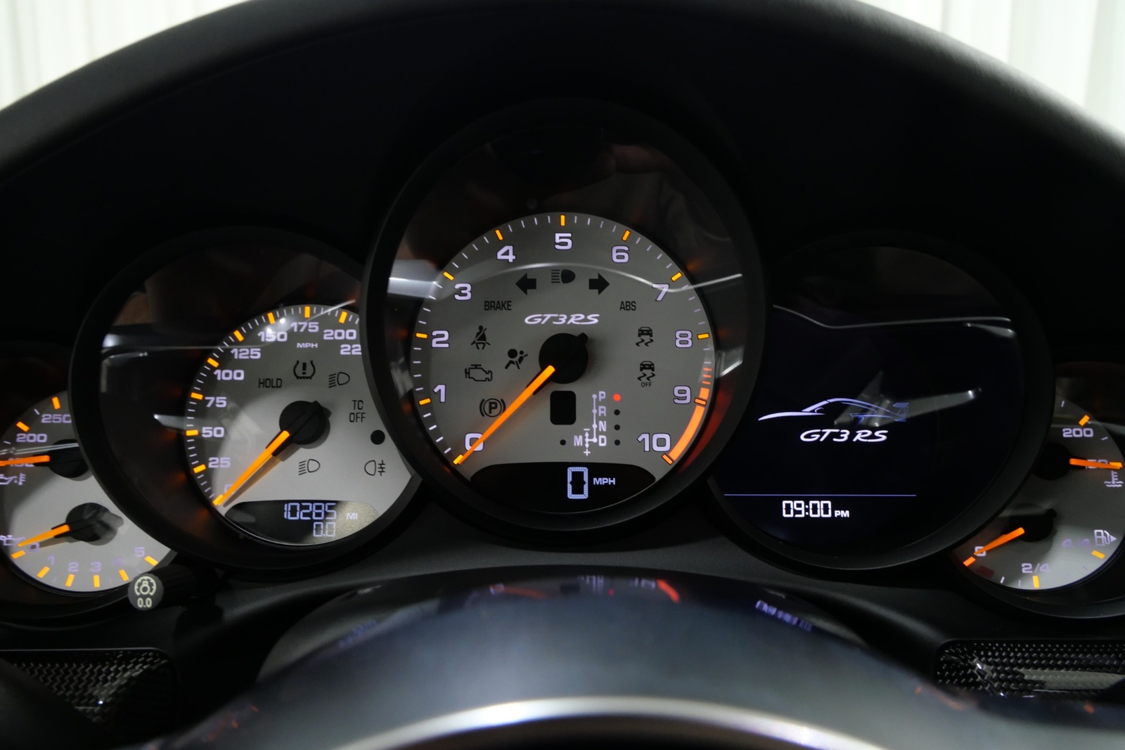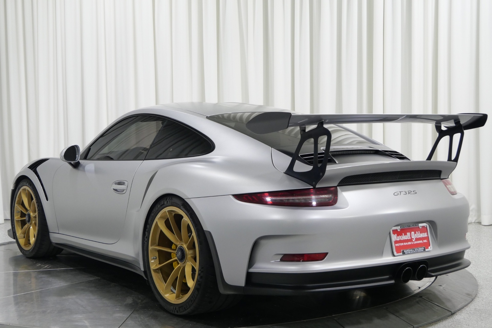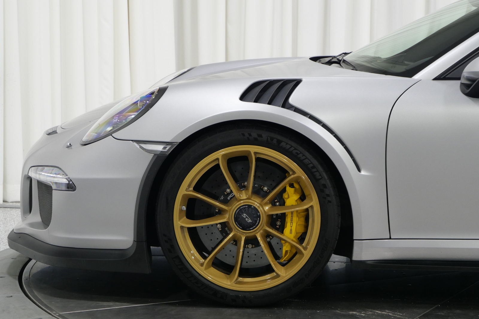 We have just added to our extensive exotic car inventory a beautiful 2016 Porsche 911 GT3 RS in GT Silver over Black and GT Silver interior and only 10,285 miles. This GT3 RS is loaded with: 4.0 Liter H6, PDK transmission, 20/21 inch centerlock wheels in gold, carbon ceramic brakes, front axle lift, LED headlamps in black with dynamic lighting, headlight washers in exterior color, carbon fiber racing seats with pepita cloth seat inserts, deviated stitching package in yellow (steering wheel, seats and headrests, dash, door panels, rear side panels, rear seat delete area, armrests, door handles, more), sound package plus, fire extinguisher, Sport Chrono package with track precision app, Sport Chrono face in white, instrument dials in white, Porsche PCM with navigation, center console lid with embossed Porsche crest, seat belts in Speed Yellow, floor mats, Alcantara steering wheel with yellow 12 0'clock marker, auto dimming mirrors with rain sensor, alu look fuel cap, pedals and footrest in aluminum, illuminated door sills in carbon fiber, extended range fuel tank and much more. The entire vehicle is protected with a matte clear wrap.