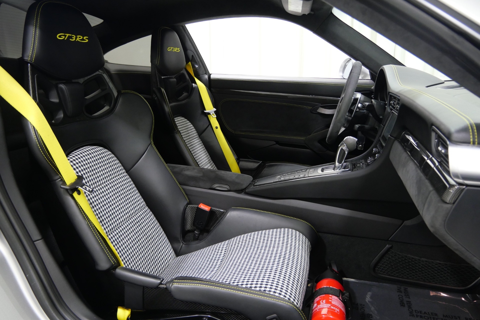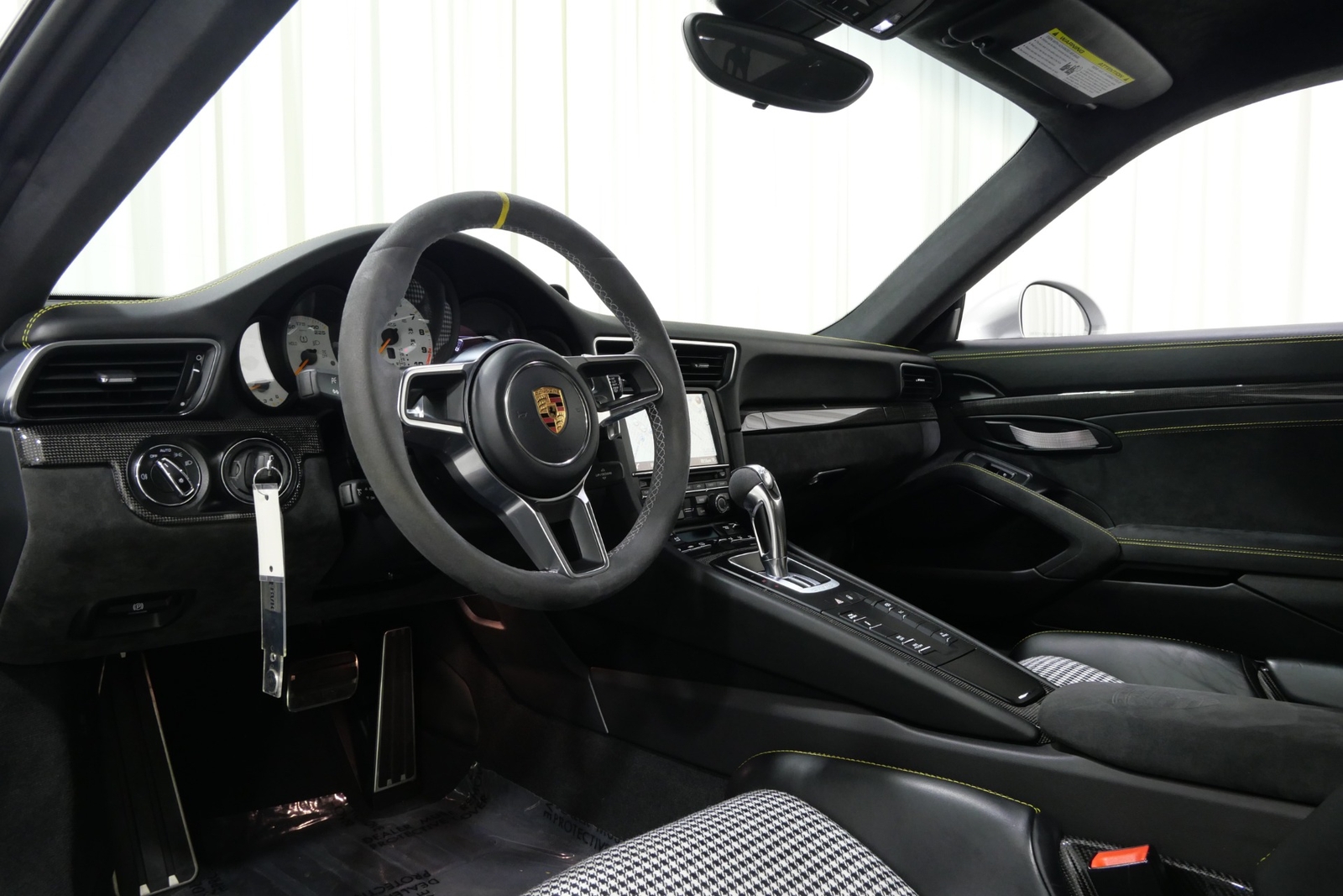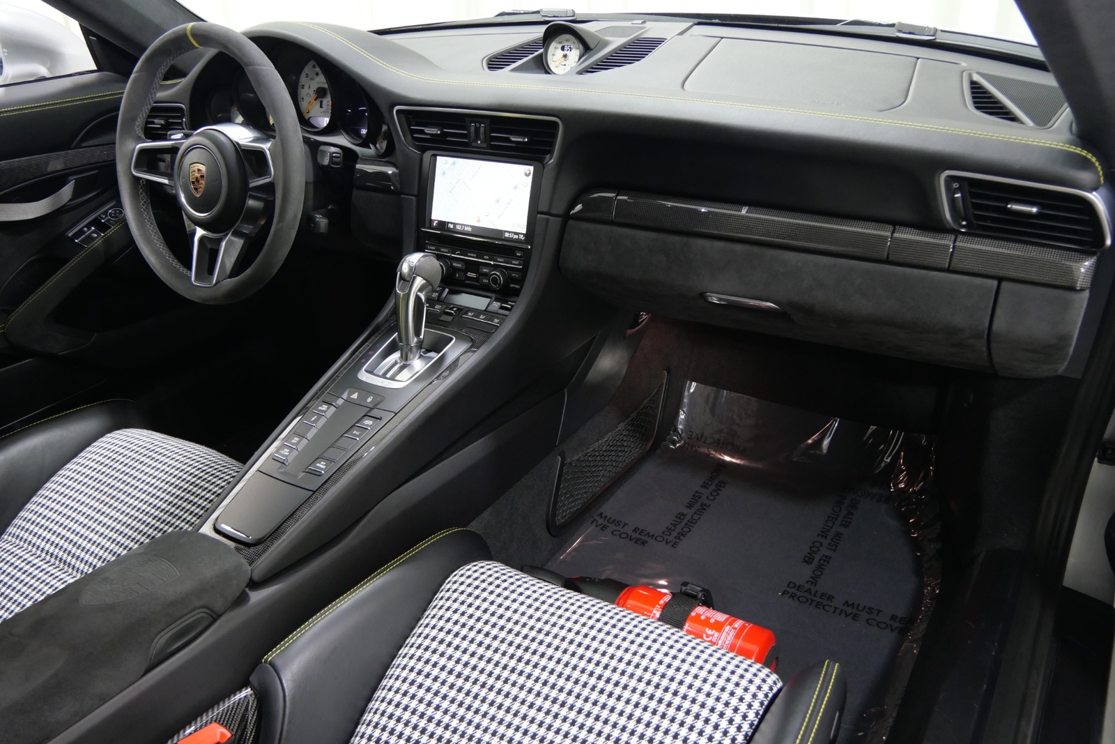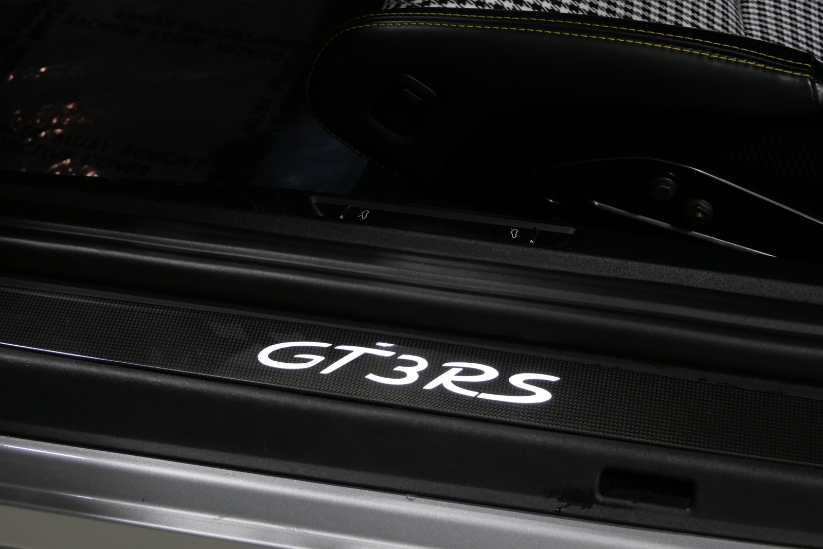 We have just added to our extensive exotic car inventory a beautiful 2016 Porsche 911 GT3 RS in GT Silver over Black and GT Silver interior and only 10,285 miles. This GT3 RS is loaded with: 4.0 Liter H6, PDK transmission, 20/21 inch centerlock wheels in gold, carbon ceramic brakes, front axle lift, LED headlamps in black with dynamic lighting, headlight washers in exterior color, carbon fiber racing seats with pepita cloth seat inserts, deviated stitching package in yellow (steering wheel, seats and headrests, dash, door panels, rear side panels, rear seat delete area, armrests, door handles, more), sound package plus, fire extinguisher, Sport Chrono package with track precision app, Sport Chrono face in white, instrument dials in white, Porsche PCM with navigation, center console lid with embossed Porsche crest, seat belts in Speed Yellow, floor mats, Alcantara steering wheel with yellow 12 0'clock marker, auto dimming mirrors with rain sensor, alu look fuel cap, pedals and footrest in aluminum, illuminated door sills in carbon fiber, extended range fuel tank and much more. The entire vehicle is protected with a matte clear wrap.