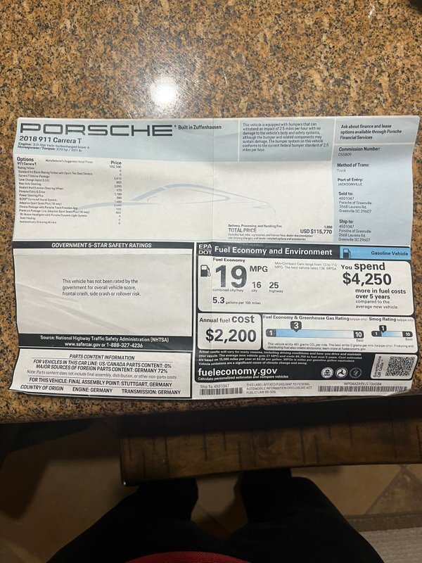 Excellent Condition, Low Miles, Well Optioned Light Weight 911 Carrera T 7-Speed Manual Coupe