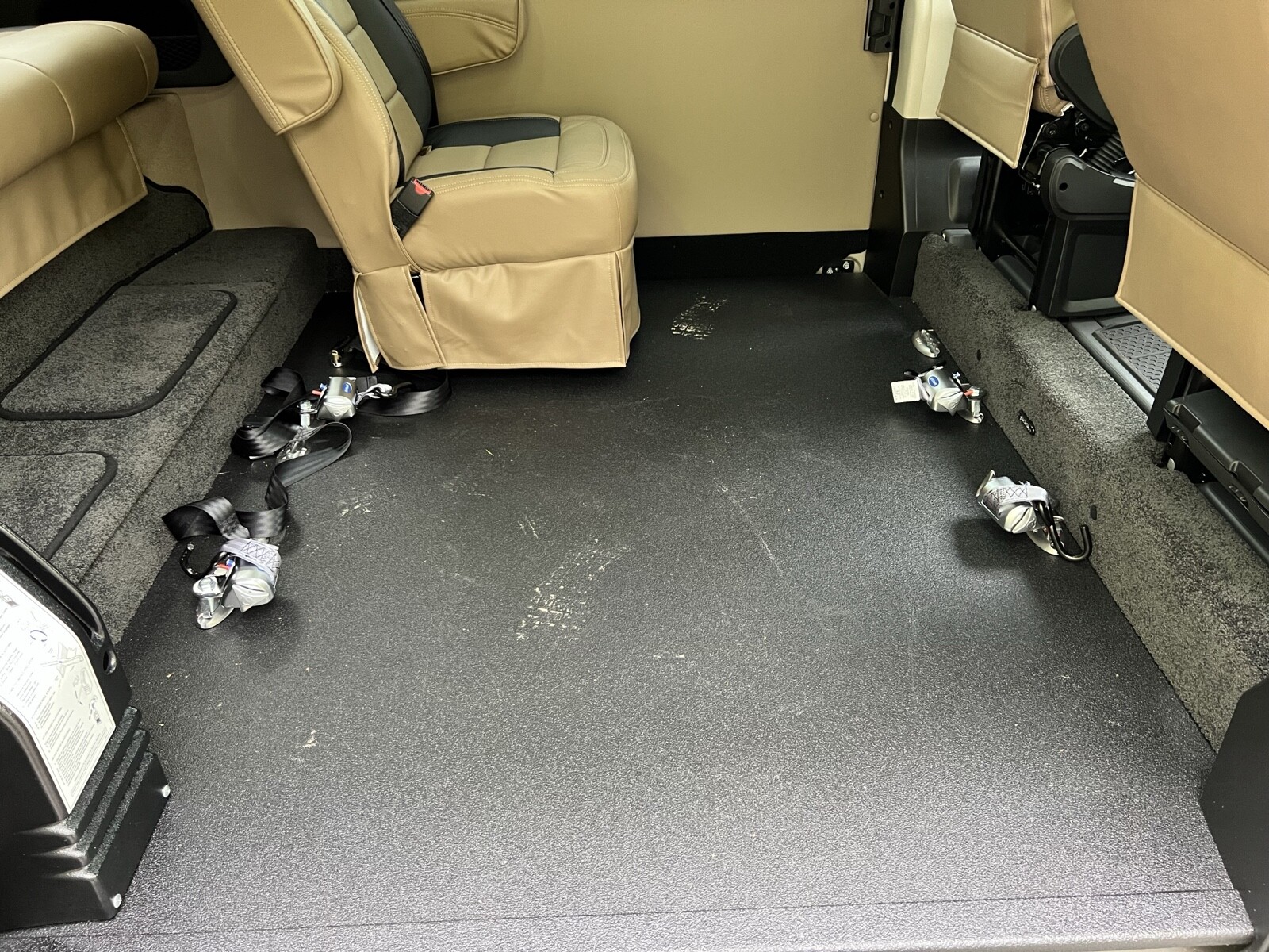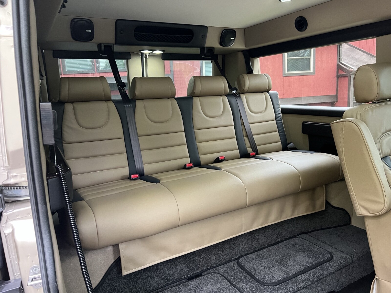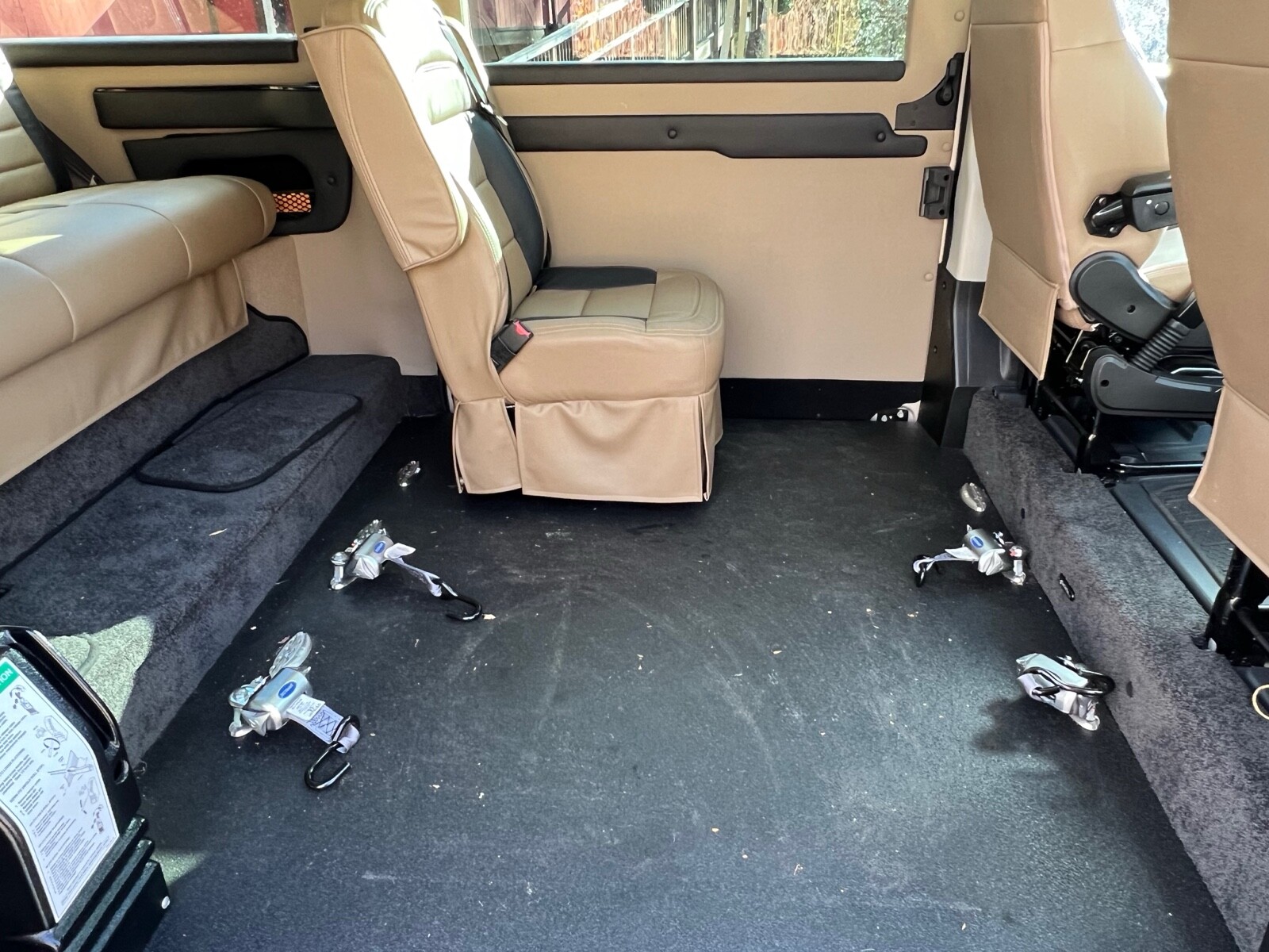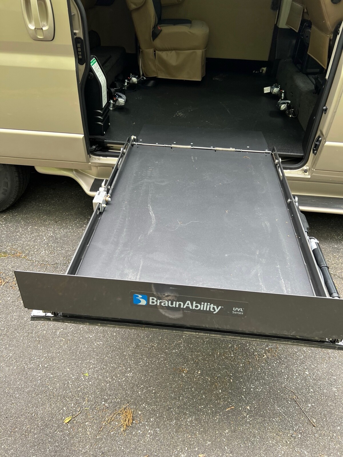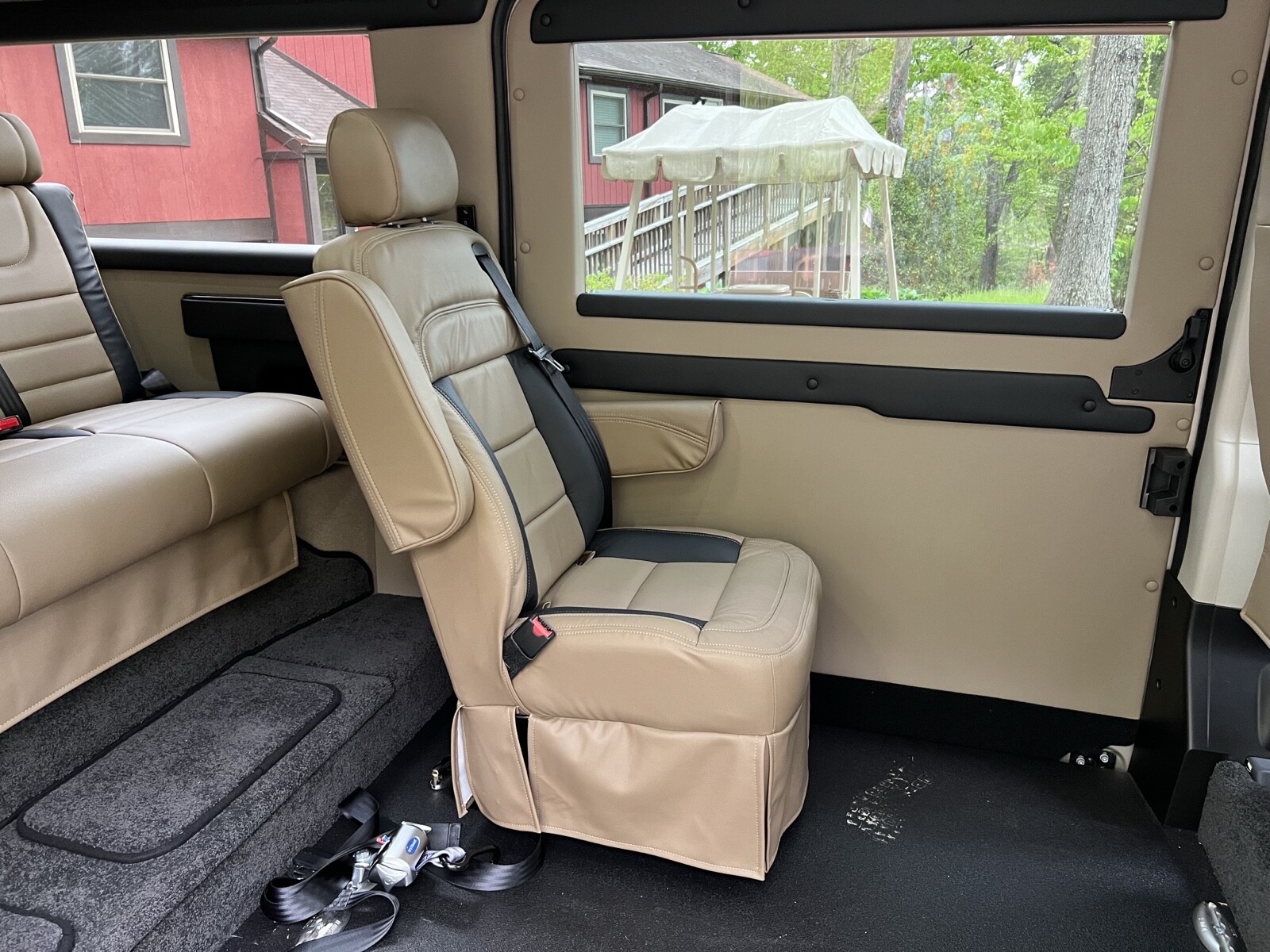 The van is a very nice tempest conversion van. The rear seat falls down into a bed went upright position. You can say seat four people, there is plenty of storage space in the back also has a captains chair that sits next to the wheelchair as you can see in the photos. Any questions you could email me or you may even call 540-845-6120.