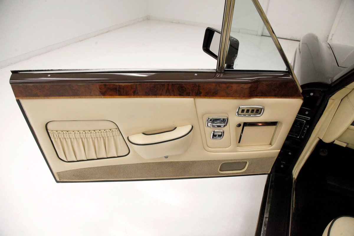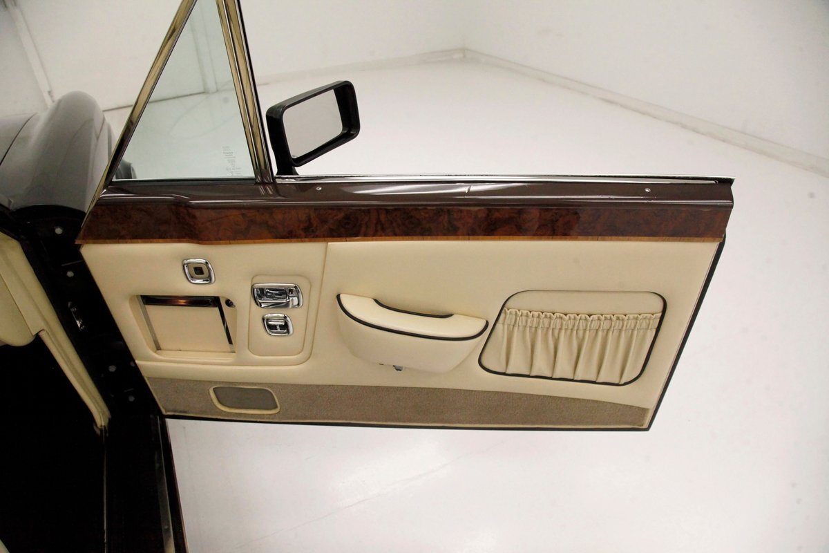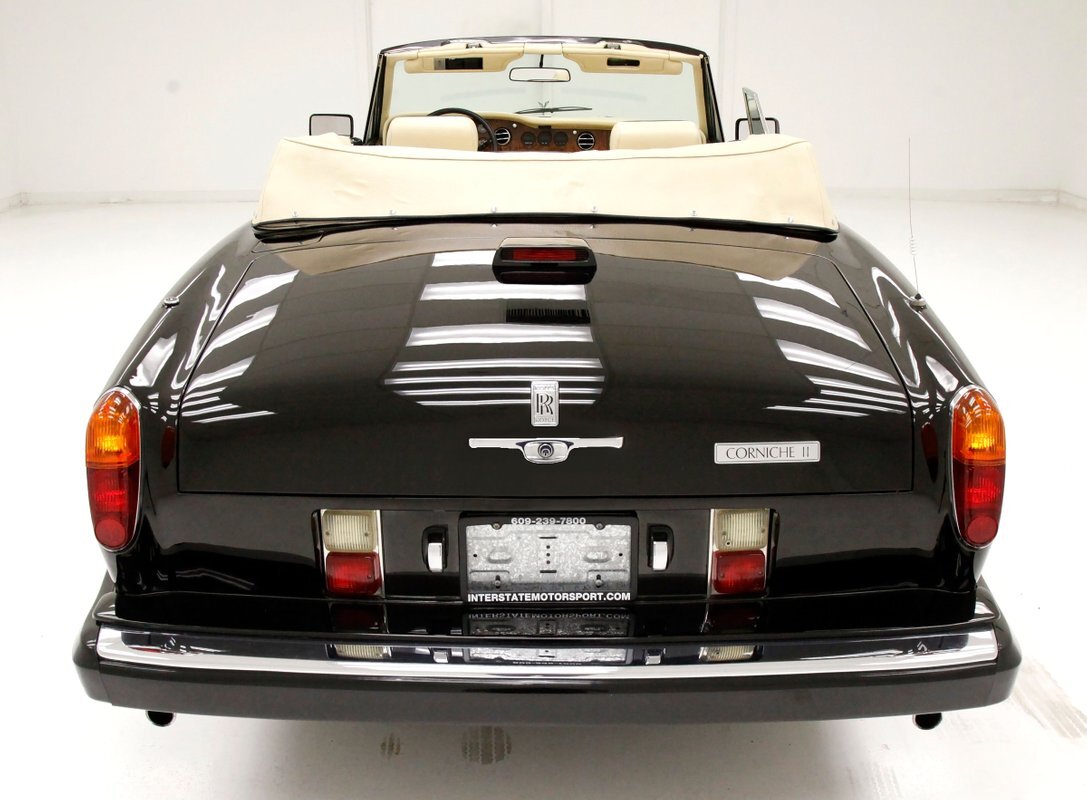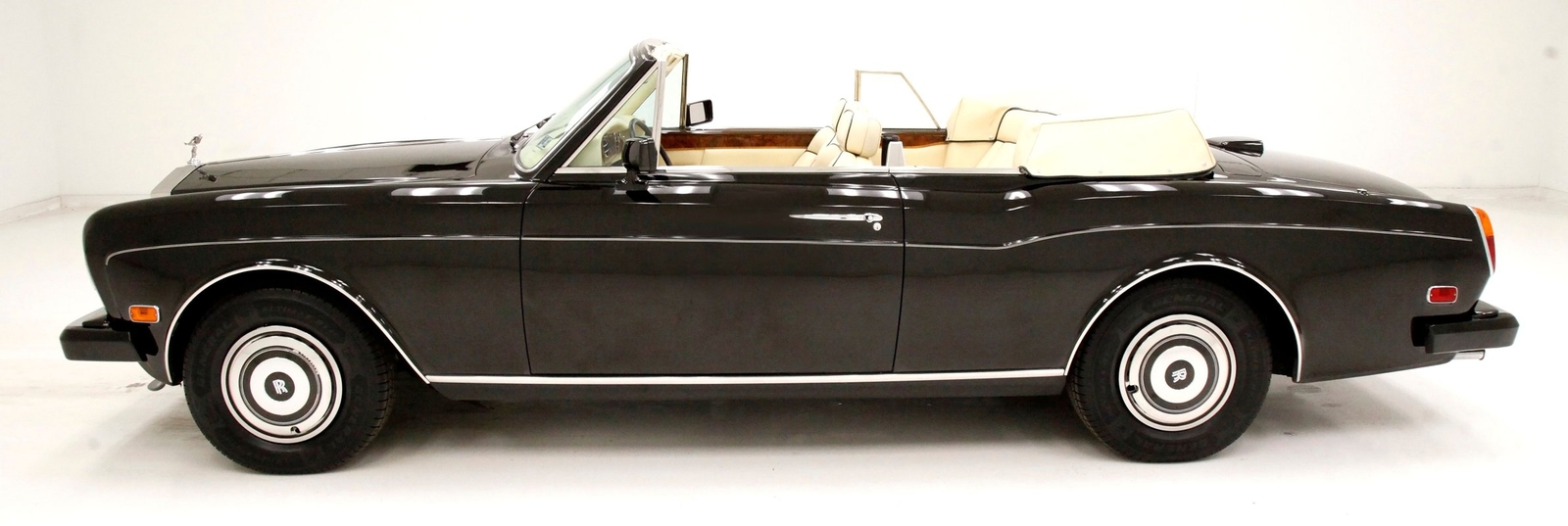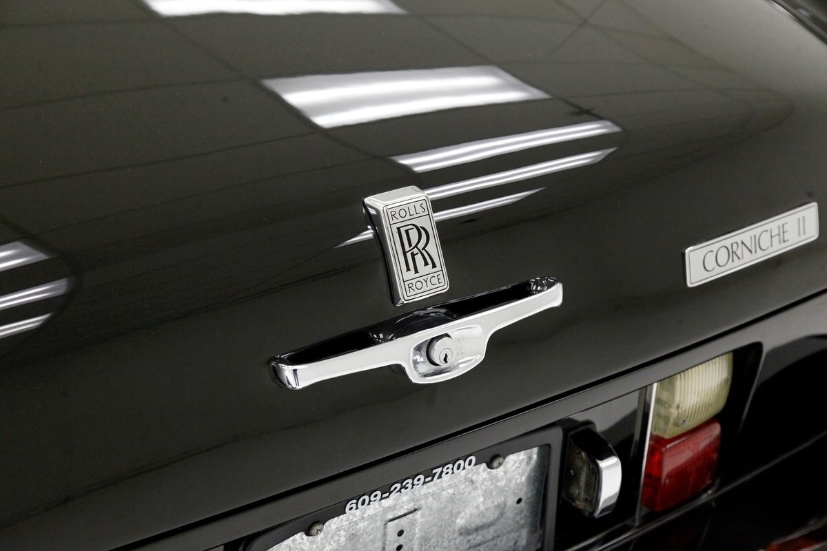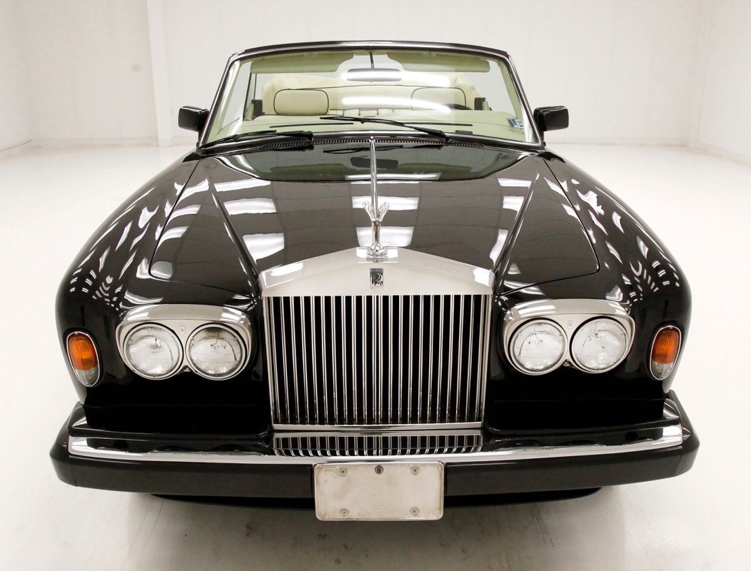 For consignment, a touch of class in very nice condition to roll down the back roads to your country estate in the form of a Rolls Royce Corniche convertible right out of 1986. Getting up close and personal with this title verified 27,396 actual mile car will definitely impress you not only with its current condition, but just the quality of build it exudes. Tactile surfaces in the interior are just plush to say the least with plenty of leather overstuffed, and beautiful burl wood shined to the maximum for the dash and other highlights. The exterior is tuxedo black so you are tuned to go out for a magical evening and make an impression in well heeled style.