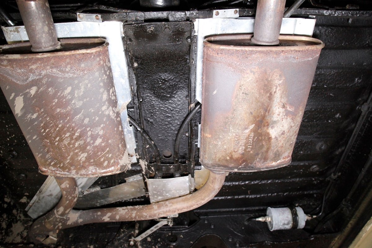 No rust, just well preserved undercoatings, solid framing, like new stock style exhaust. 4 wheel power disc braking, and independent front and rear suspension are noted in this rust free well preserved environment.