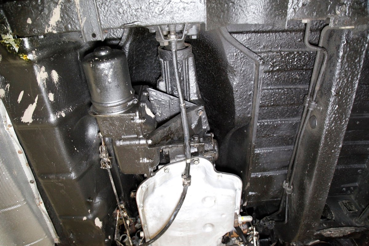 Under the hood is a maze of wiring, hoses, and mechanical devices to power the car and run the conveniences. The star of the show is obviously the 6.75 liter V8 with EFI and a TH400 3-speed automatic transmission. 3.07 gearing is reserved for the final drive axle. Very clean in this intricately engineered bay.