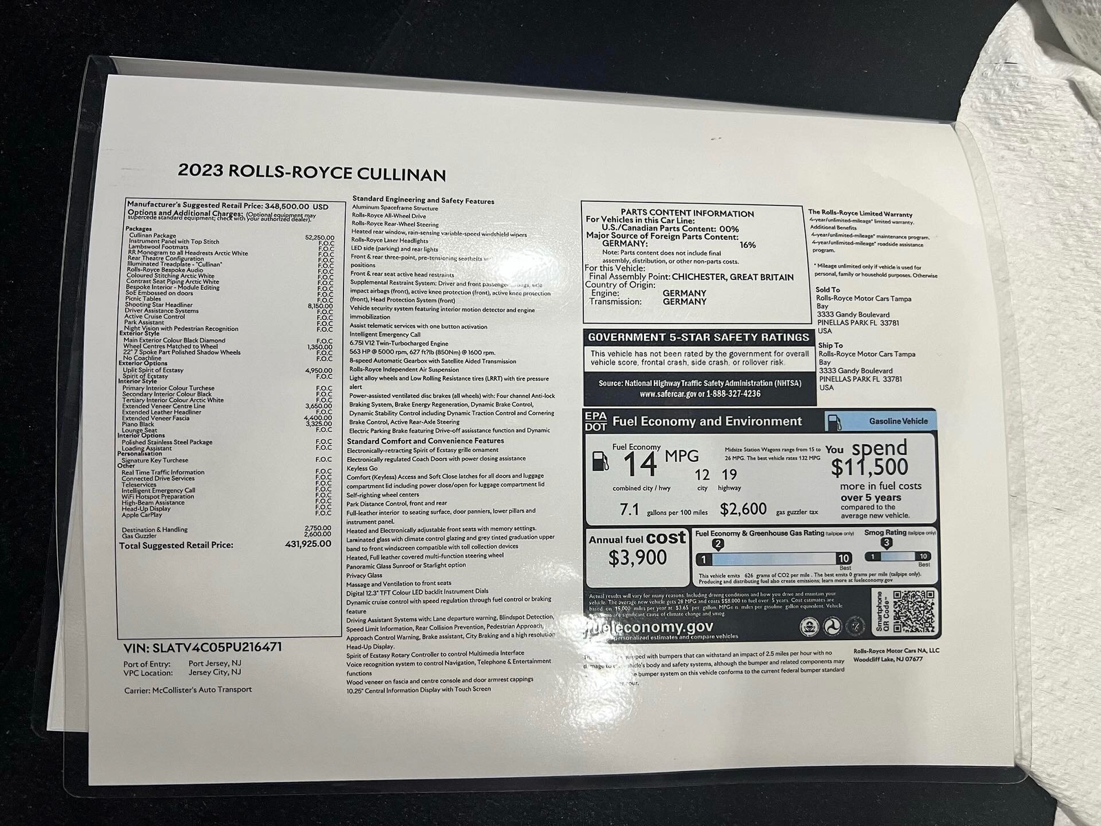 State or local taxes, title, license fee, processing fees, registration fee, dealer documentary fee, finance charges, emission testing fees, and compliance fees are additional to the advertised price.