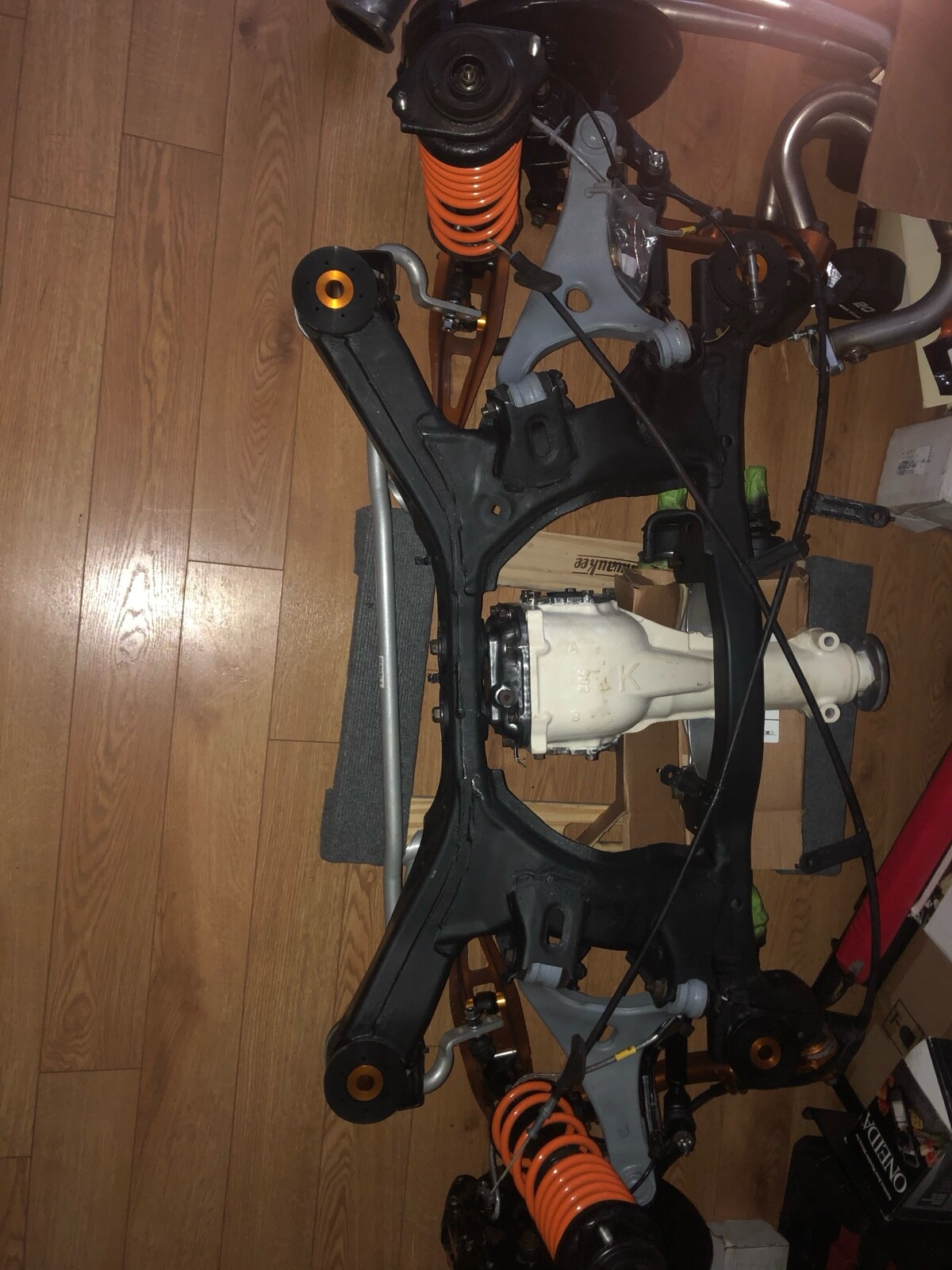 All rear subframe rebuilt with all white line bushings, sway bar endlinks, all painted $1500