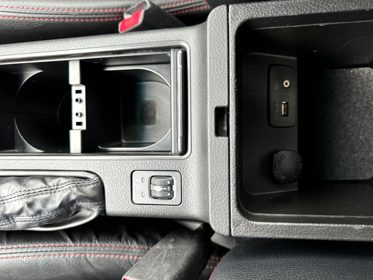 • Performance design front bucket seats -inc: height-adjustable driver seat, integrated fixed head restraints, embroidered STI logo