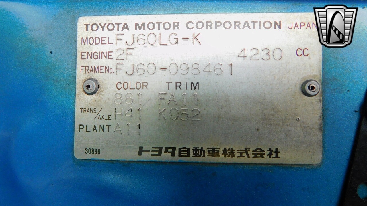 Gateway Classic Cars of Atlanta is excited to offer THIS imported 1984 Toyota Land Cruiser FJ60, finished in Sky Blue (861) exterior that is sure to turn heads. Under the hood, you'll find a robust 2F inline 6-cylinder engine paired with a 4-speed manual transmission, offering a driving experience that's both smooth and powerful.