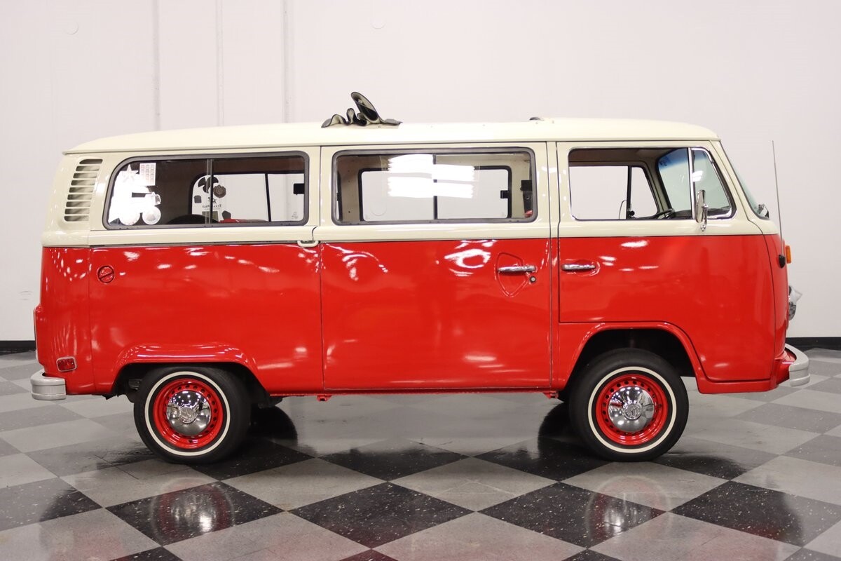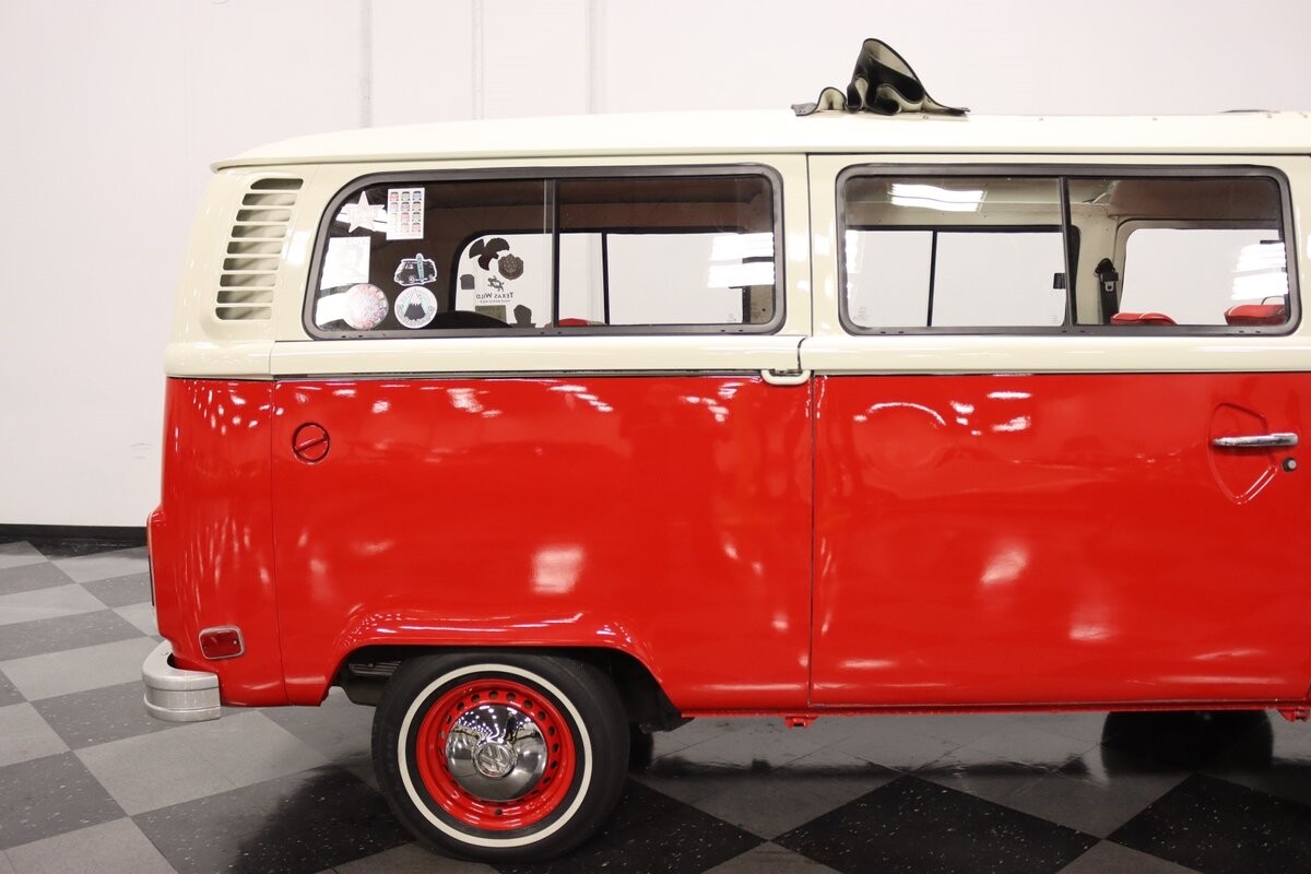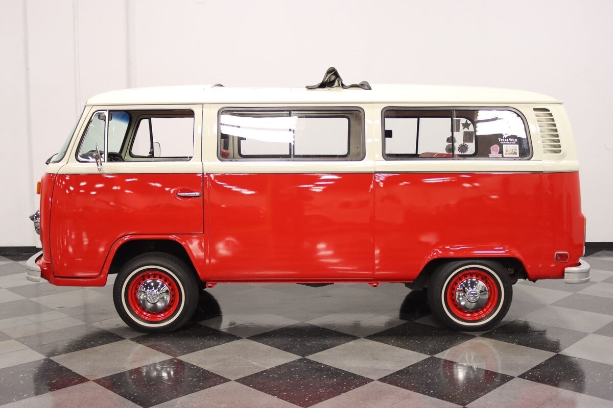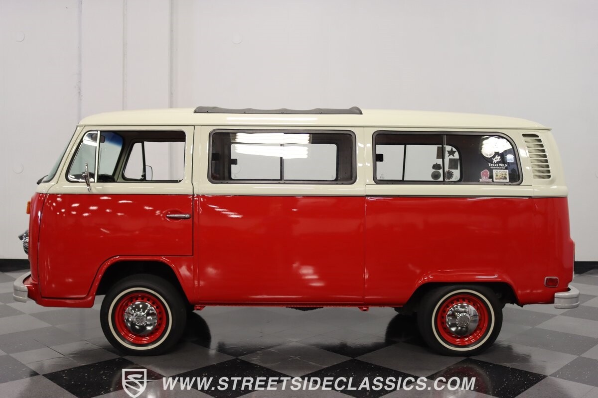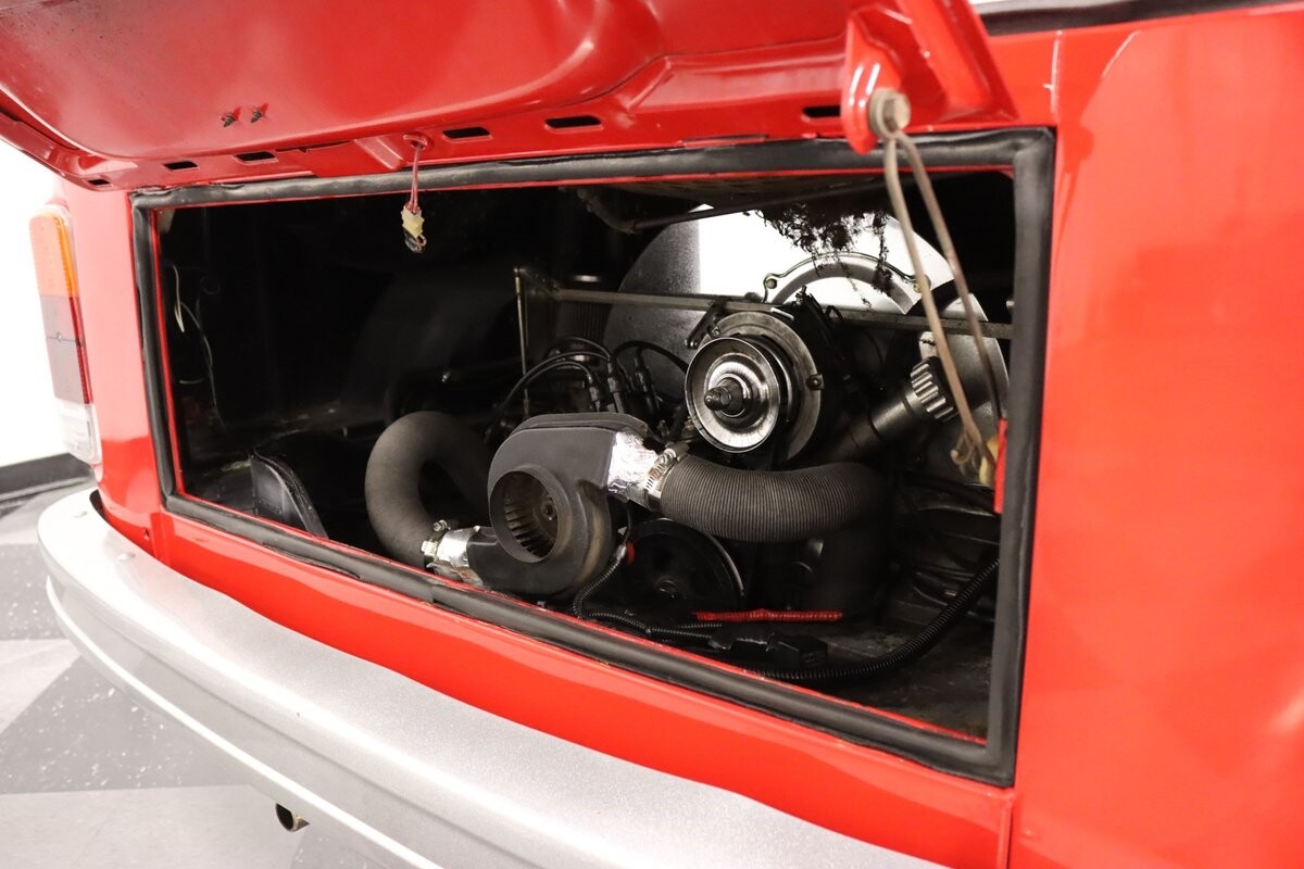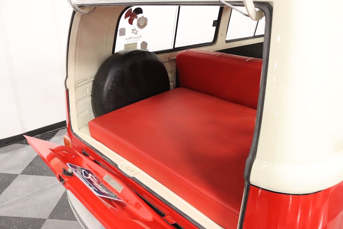 Someone has obviously lavished a lot of time and attention on this VW and the results are pretty darned nice. It's definitely high-visibility with its cheerful red and white paint scheme, but the beautiful paint isn't the only thing that this VW is about. Instead, it's about details and here there are many. Note the clean, unadorned lines accentuated with a smidge of art and by laser-straight bodywork and deep, shiny paintwork that only comes from pros doing their thing, and in this case the fells at Reads Automotive in Ft. Worth, Texas really went all out. The two-tone combination is quite period-correct and gives the bus a jaunty appearance that works well with the VW's famous personality. Other things like the painted chrome bumpers and big chrome VW emblem in the center are trademarks that VW faithful can recognize from a mile away and all those big windows make it as bright and airy inside as you'd expect. Finally, the piece de resistance is the retractable vinyl roof section that takes gazing at the stars during a camping trip to a very high level.