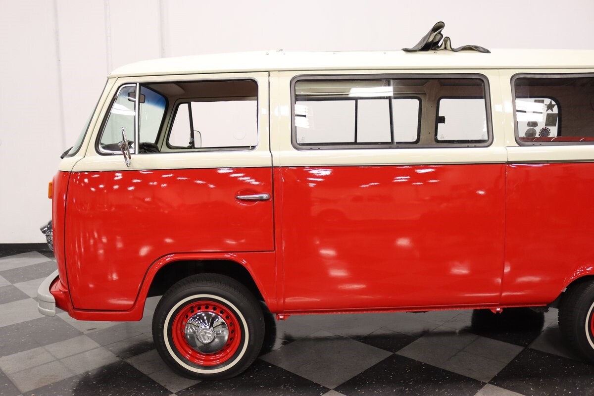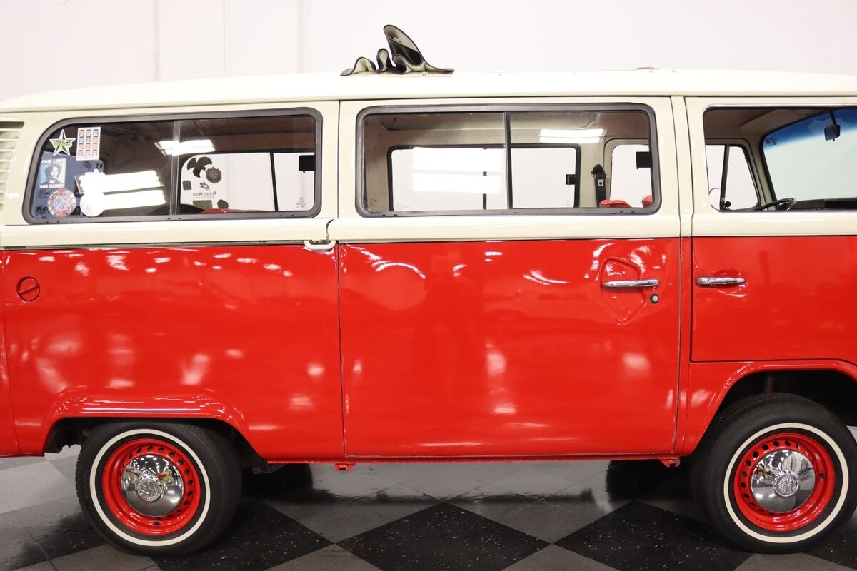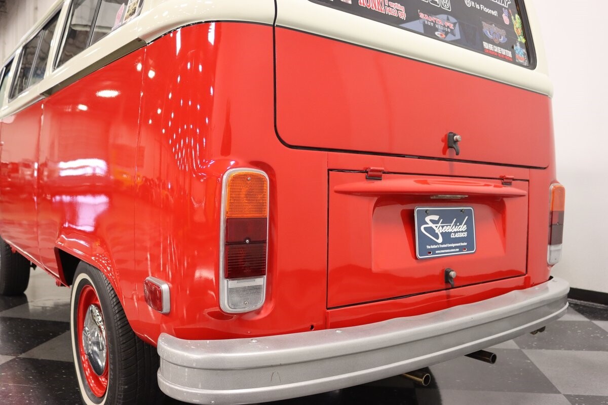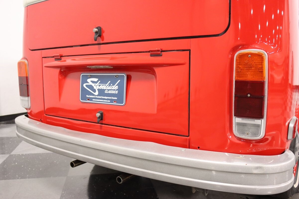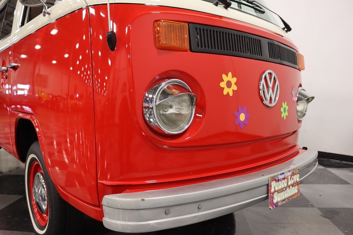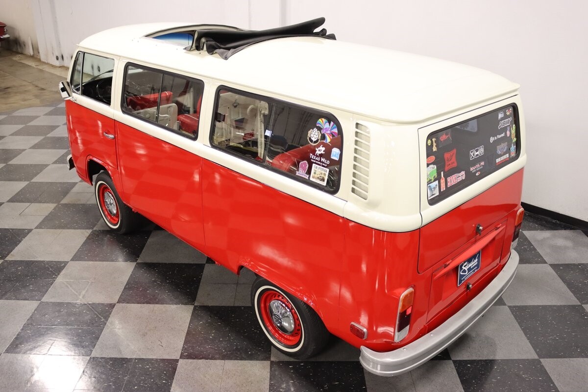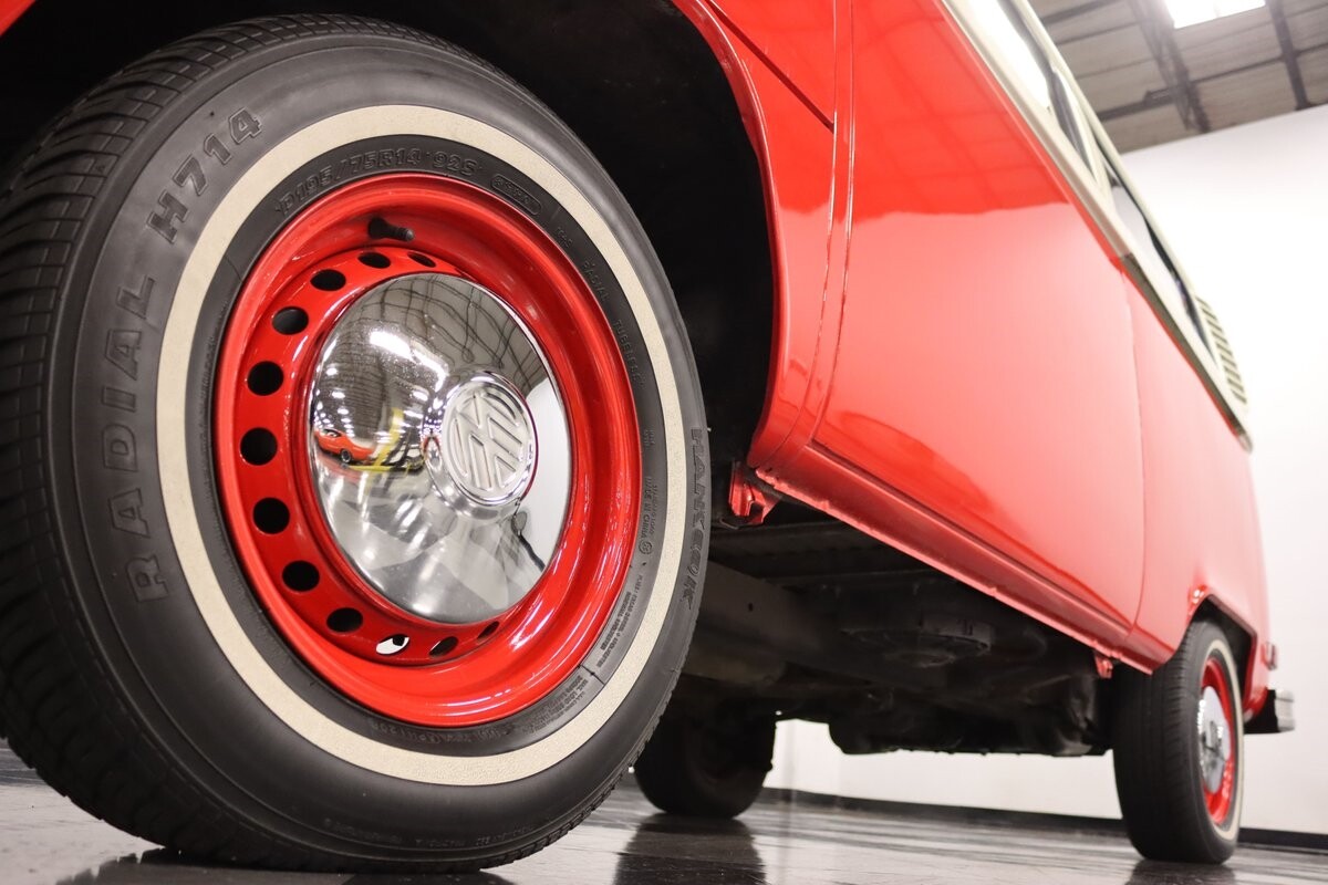 Someone has obviously lavished a lot of time and attention on this VW and the results are pretty darned nice. It's definitely high-visibility with its cheerful red and white paint scheme, but the beautiful paint isn't the only thing that this VW is about. Instead, it's about details and here there are many. Note the clean, unadorned lines accentuated with a smidge of art and by laser-straight bodywork and deep, shiny paintwork that only comes from pros doing their thing, and in this case the fells at Reads Automotive in Ft. Worth, Texas really went all out. The two-tone combination is quite period-correct and gives the bus a jaunty appearance that works well with the VW's famous personality. Other things like the painted chrome bumpers and big chrome VW emblem in the center are trademarks that VW faithful can recognize from a mile away and all those big windows make it as bright and airy inside as you'd expect. Finally, the piece de resistance is the retractable vinyl roof section that takes gazing at the stars during a camping trip to a very high level.