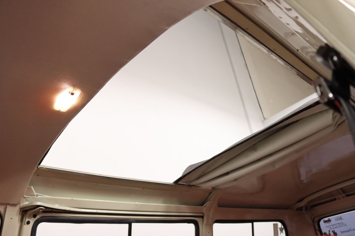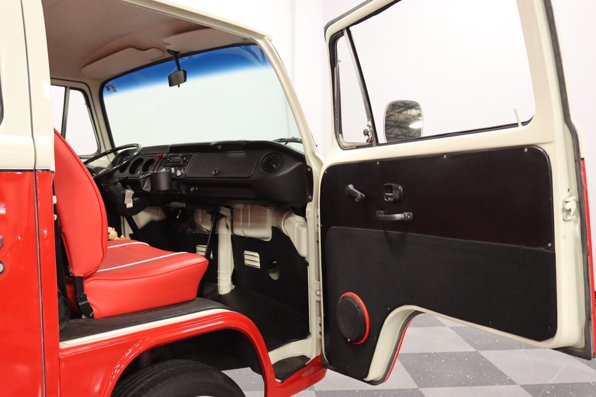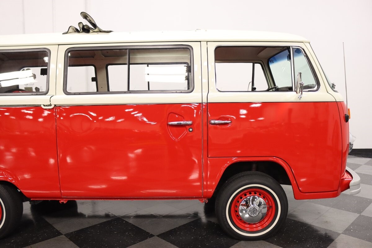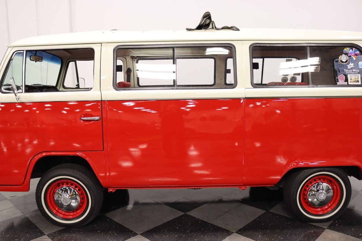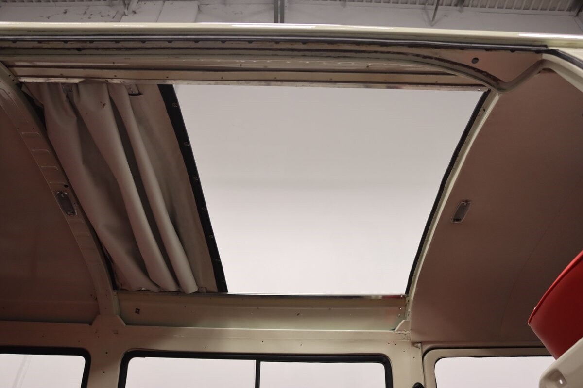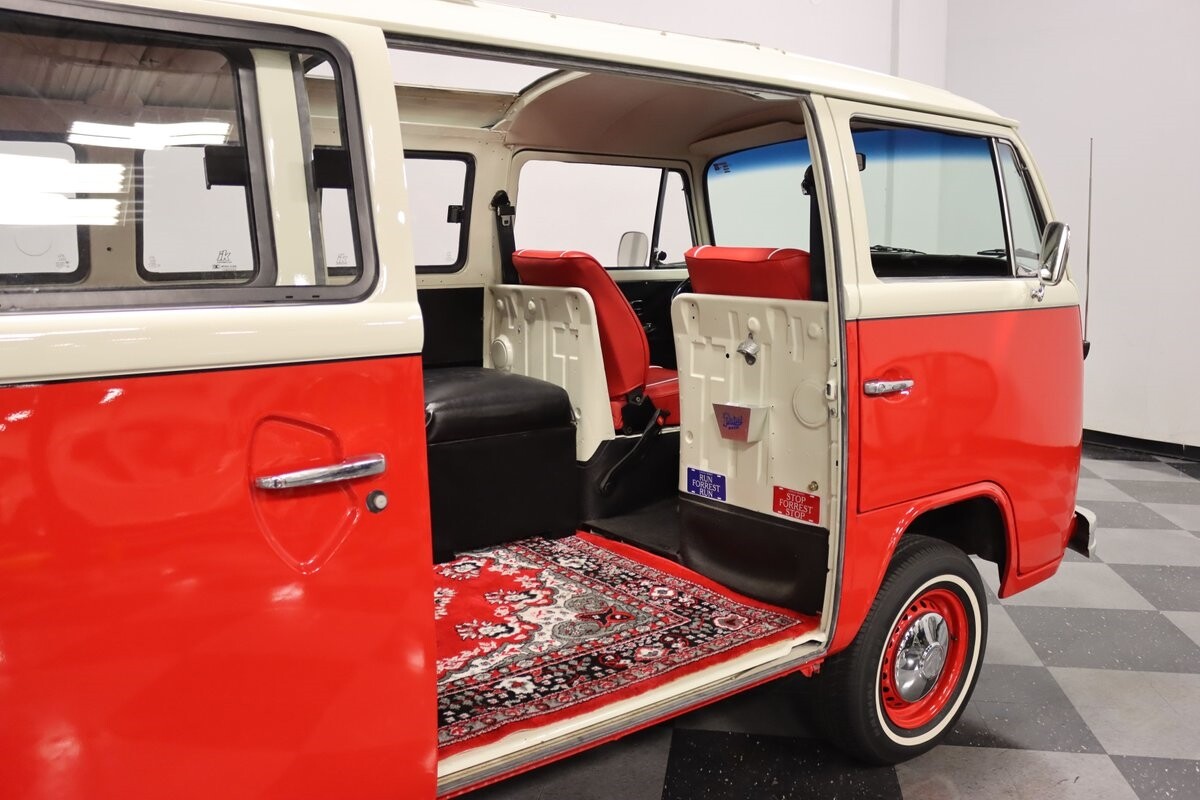 Someone has obviously lavished a lot of time and attention on this VW and the results are pretty darned nice. It's definitely high-visibility with its cheerful red and white paint scheme, but the beautiful paint isn't the only thing that this VW is about. Instead, it's about details and here there are many. Note the clean, unadorned lines accentuated with a smidge of art and by laser-straight bodywork and deep, shiny paintwork that only comes from pros doing their thing, and in this case the fells at Reads Automotive in Ft. Worth, Texas really went all out. The two-tone combination is quite period-correct and gives the bus a jaunty appearance that works well with the VW's famous personality. Other things like the painted chrome bumpers and big chrome VW emblem in the center are trademarks that VW faithful can recognize from a mile away and all those big windows make it as bright and airy inside as you'd expect. Finally, the piece de resistance is the retractable vinyl roof section that takes gazing at the stars during a camping trip to a very high level.