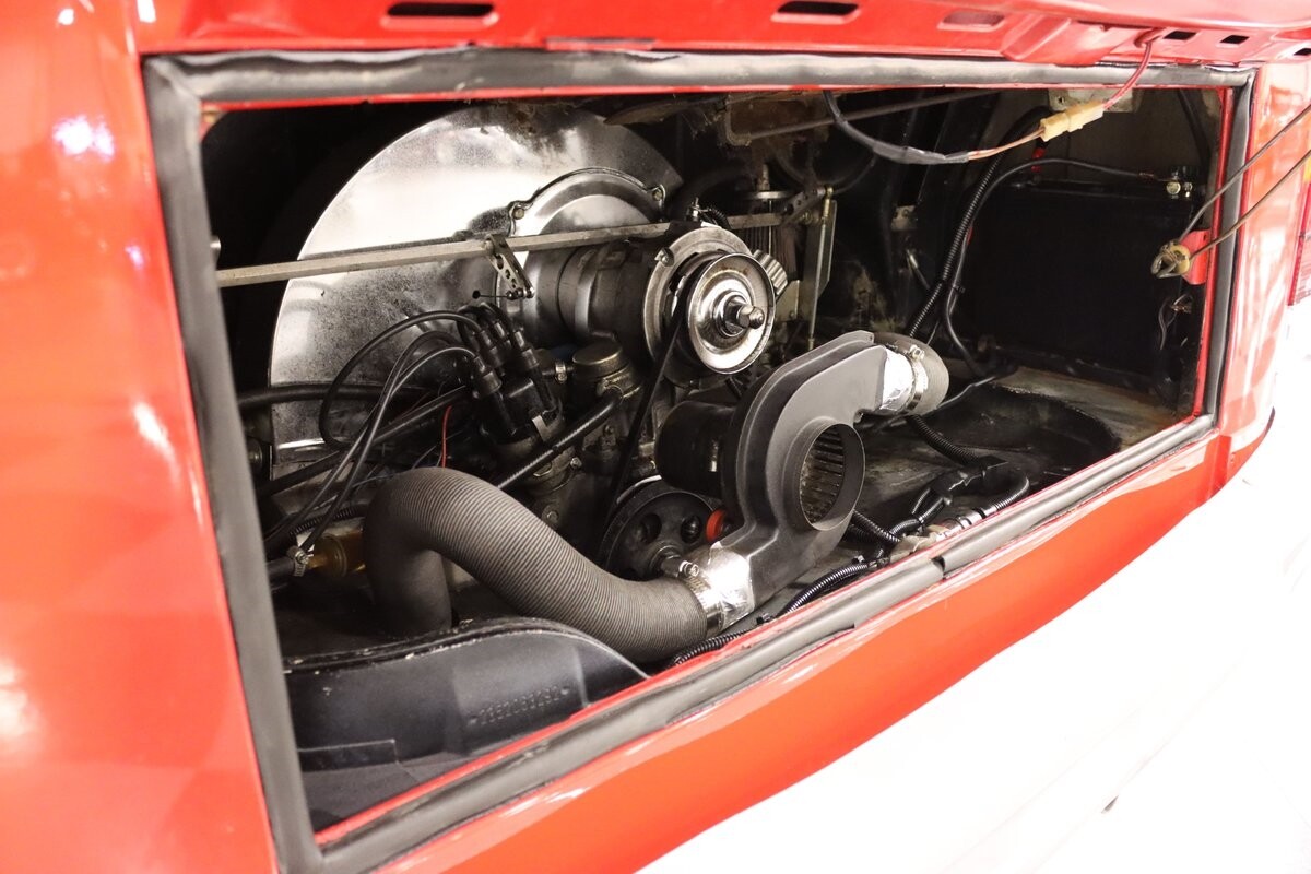 The engine is a relatively modest version of the Beetle's venerable flat-four. Displacing 1641cc, it carries a correct piston and sleeve kit, and fires right up on demand and runs incredibly smooth. With the vast array of upgrades available for these tough little machines, this one is remarkably stock, right down to the single carburetor and factory-style air cleaner up top. It's neatly detailed and clean, and given the reliability of these VWs, you should be able to enjoy this one for many years to come. The underside is in very good condition and with a 4-speed manual transmission (and a super cool shifter topped with a custom figurine), it is a lot of fun to drive. A stock exhaust system gives it that familiar VW sound, and even that is likely OEM-spec, so you know the former owners were really sweating the details. Standard steel wheels were painted red and adorned with proper chrome hubcaps and 195/75/14 radials look traditional but improve the handling in a noticeable way.
