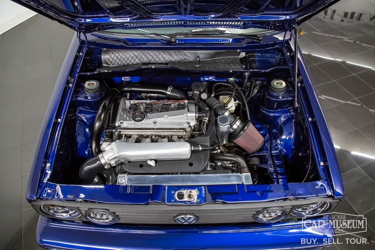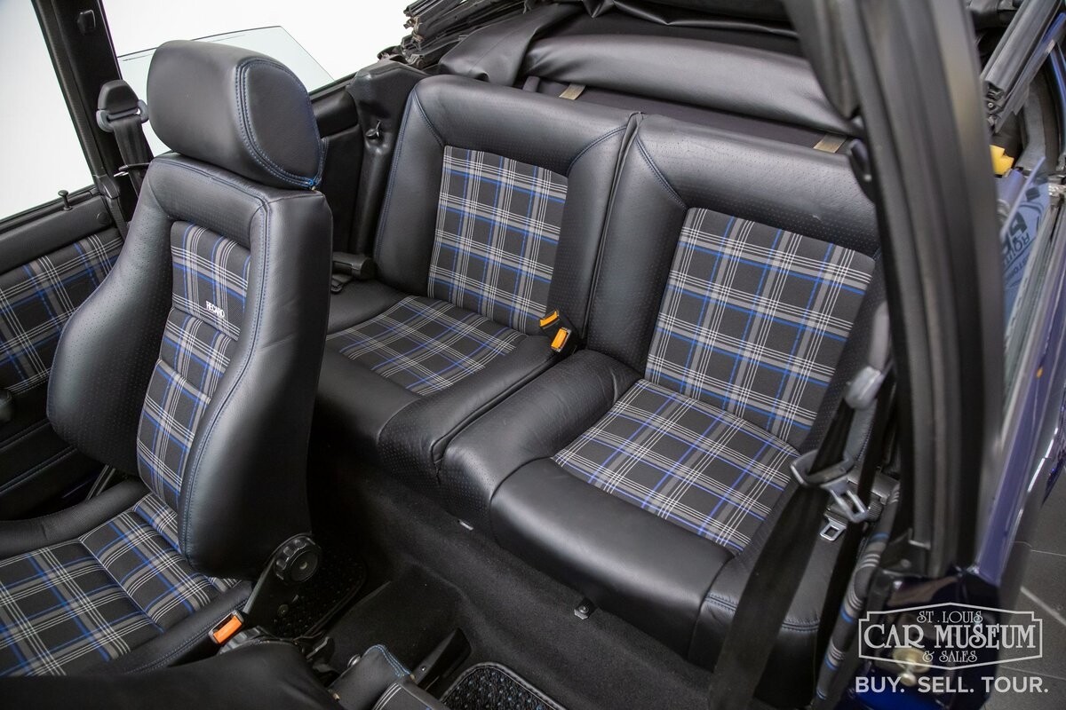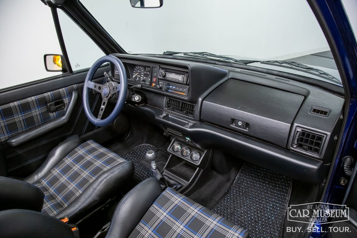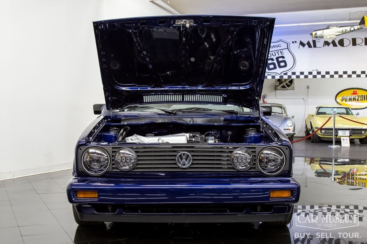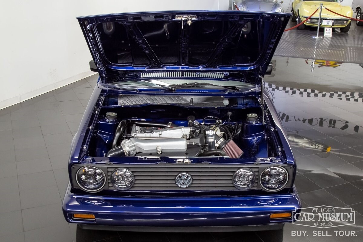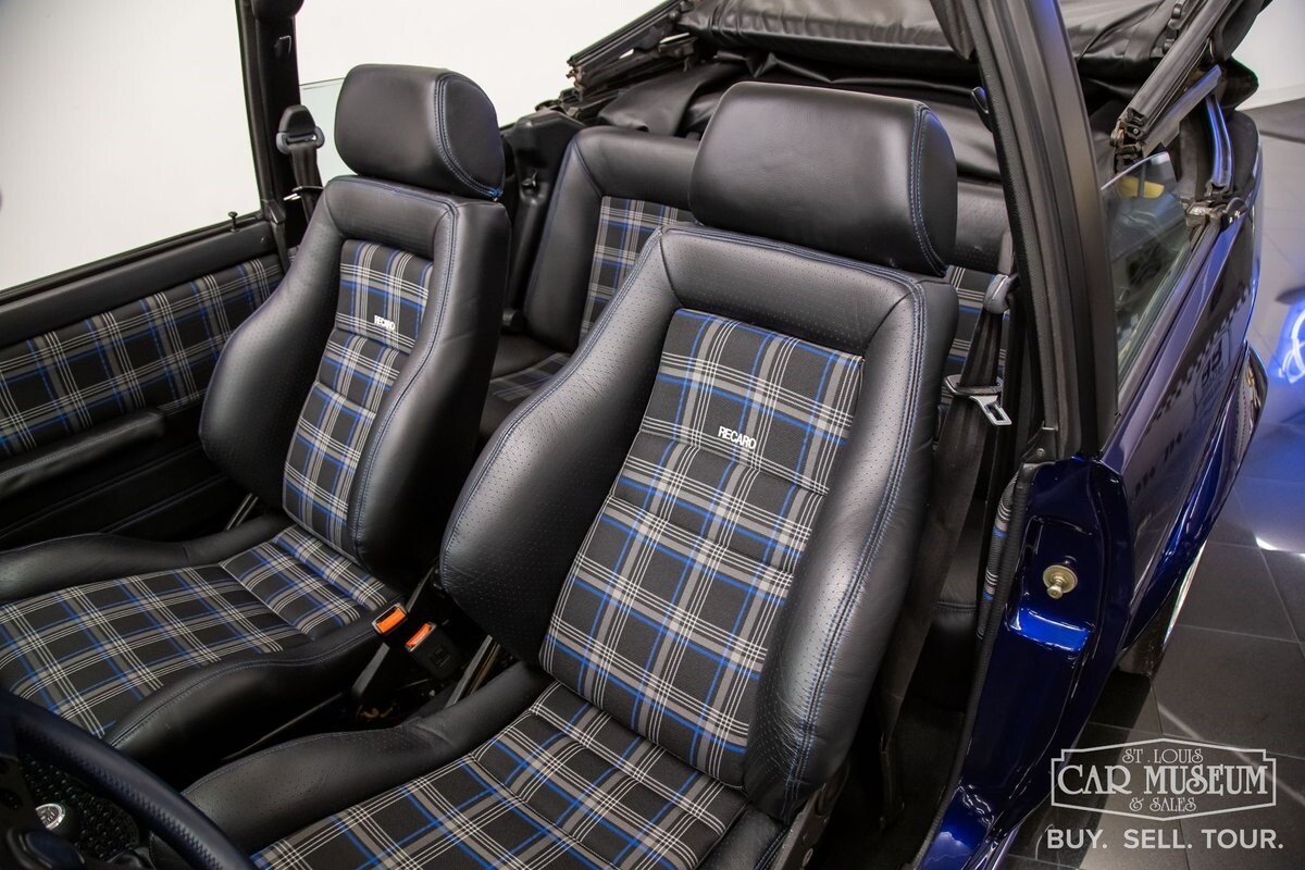 The results come from a full 2-year effort finished in 2022, and it has been driven and enjoyed only sparingly since completion. It boosts 180 factory rated horsepower without any internal modifications to the stock GTI drivetrain, with the exception to a S&P Automotive engine harness and ECU tune for optimum performance. Inside, the custom blue plaid material was sourced directly from Germany, then sent along with the Mk1 seat frames and Recaro seats to GTS Classics in Austin, TX to be reupholstered and professionally upfitted. The convertible top was also replaced with new black cloth material. Nothing was left untouched, and it has a striking presentation that all who see it firsthand rave about! It drives out simply wonderfully, with excellent road manners in every single mechanical category. The build cost was staggering with no expense spared along the way. Please call with additional questions or to schedule a chance to review it in person.