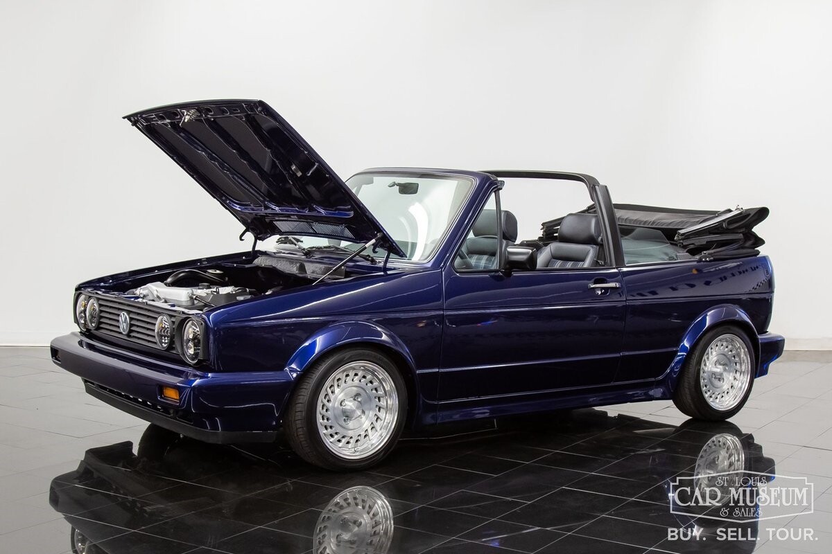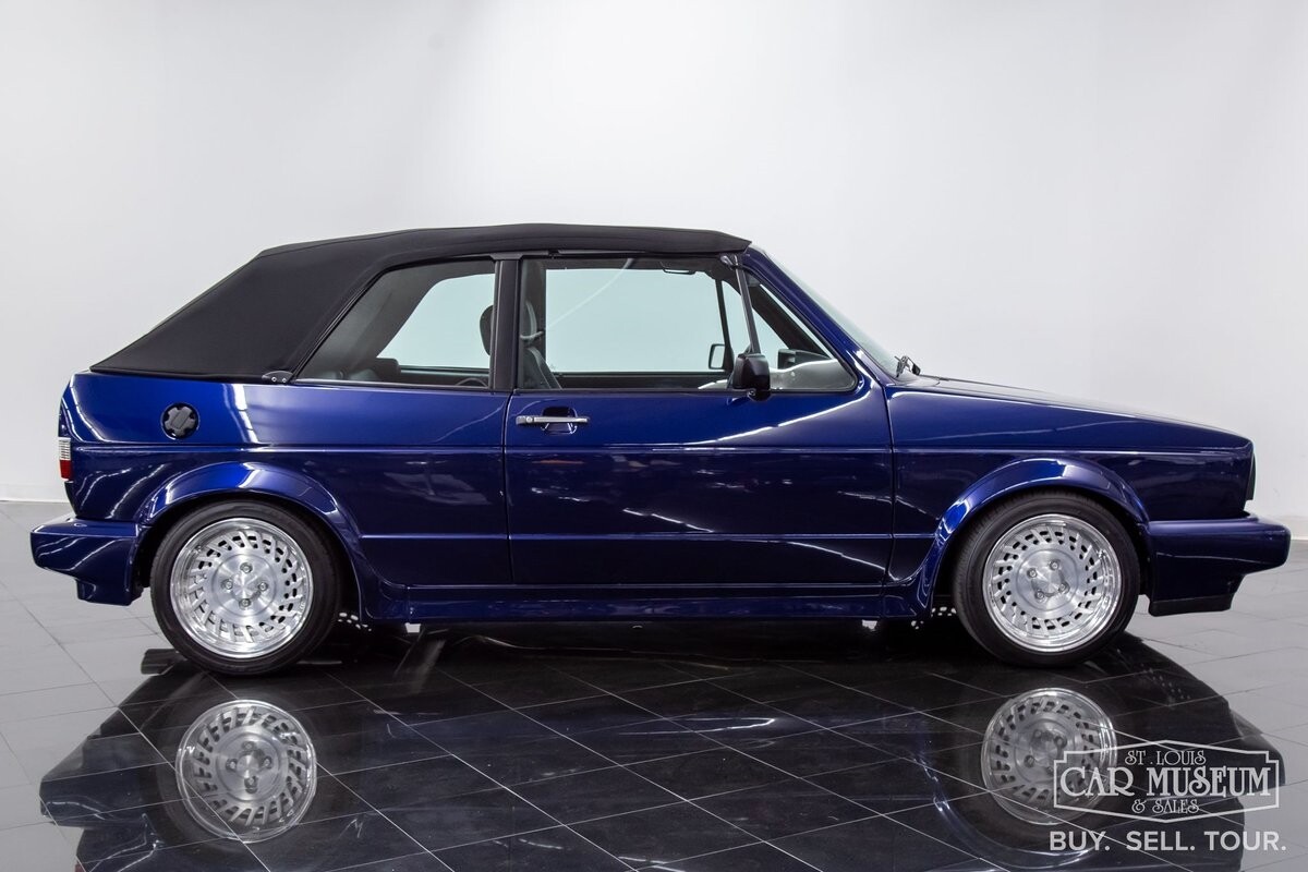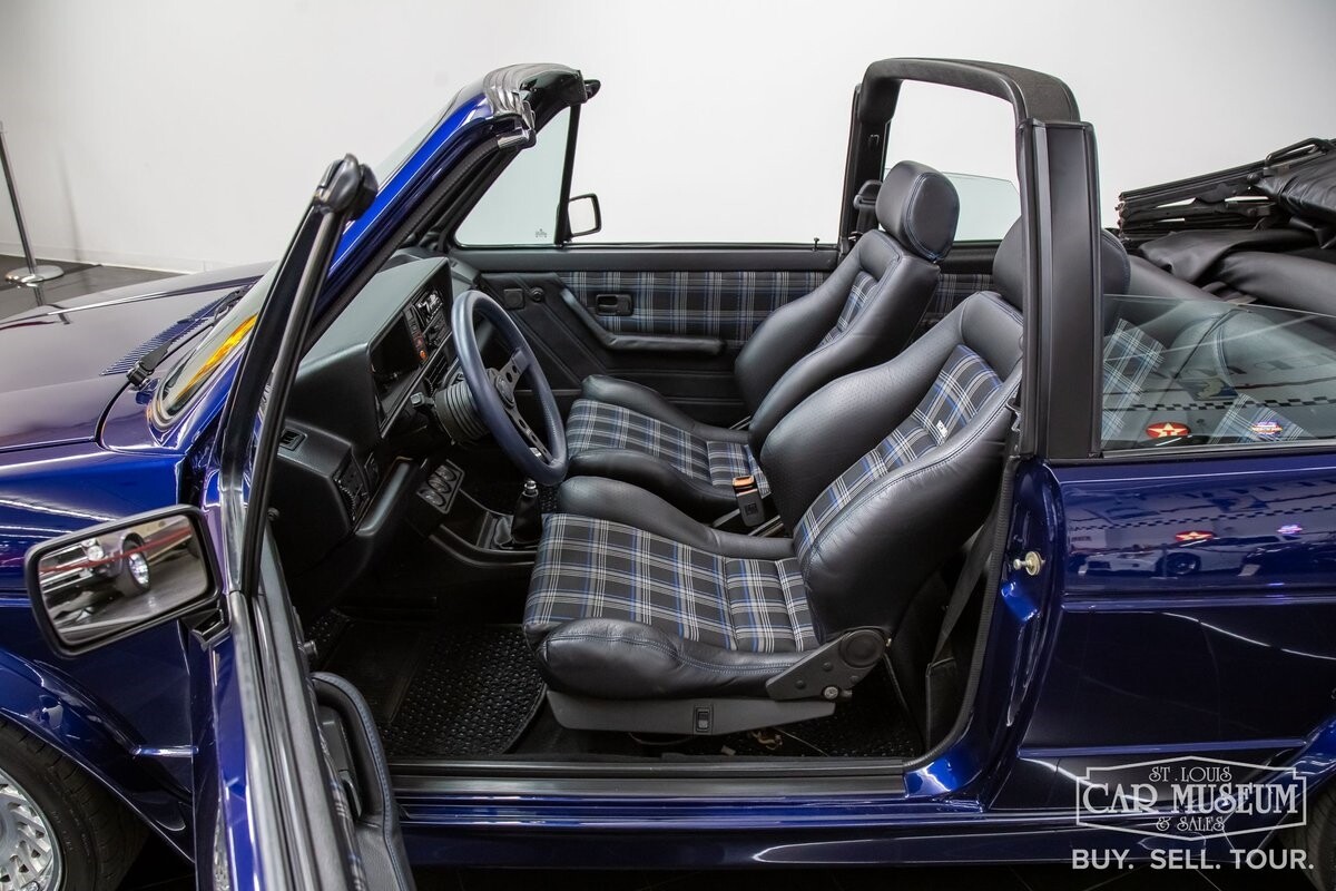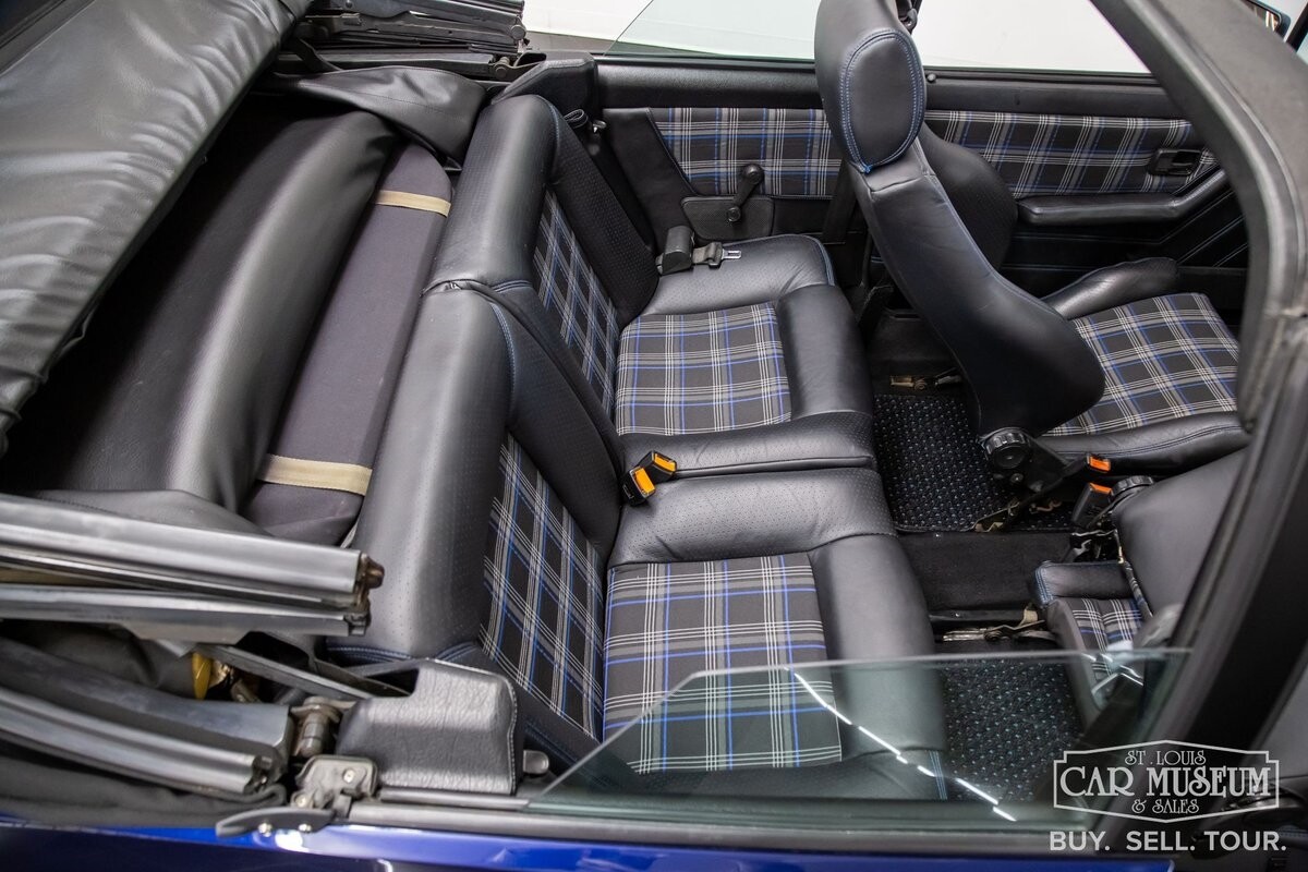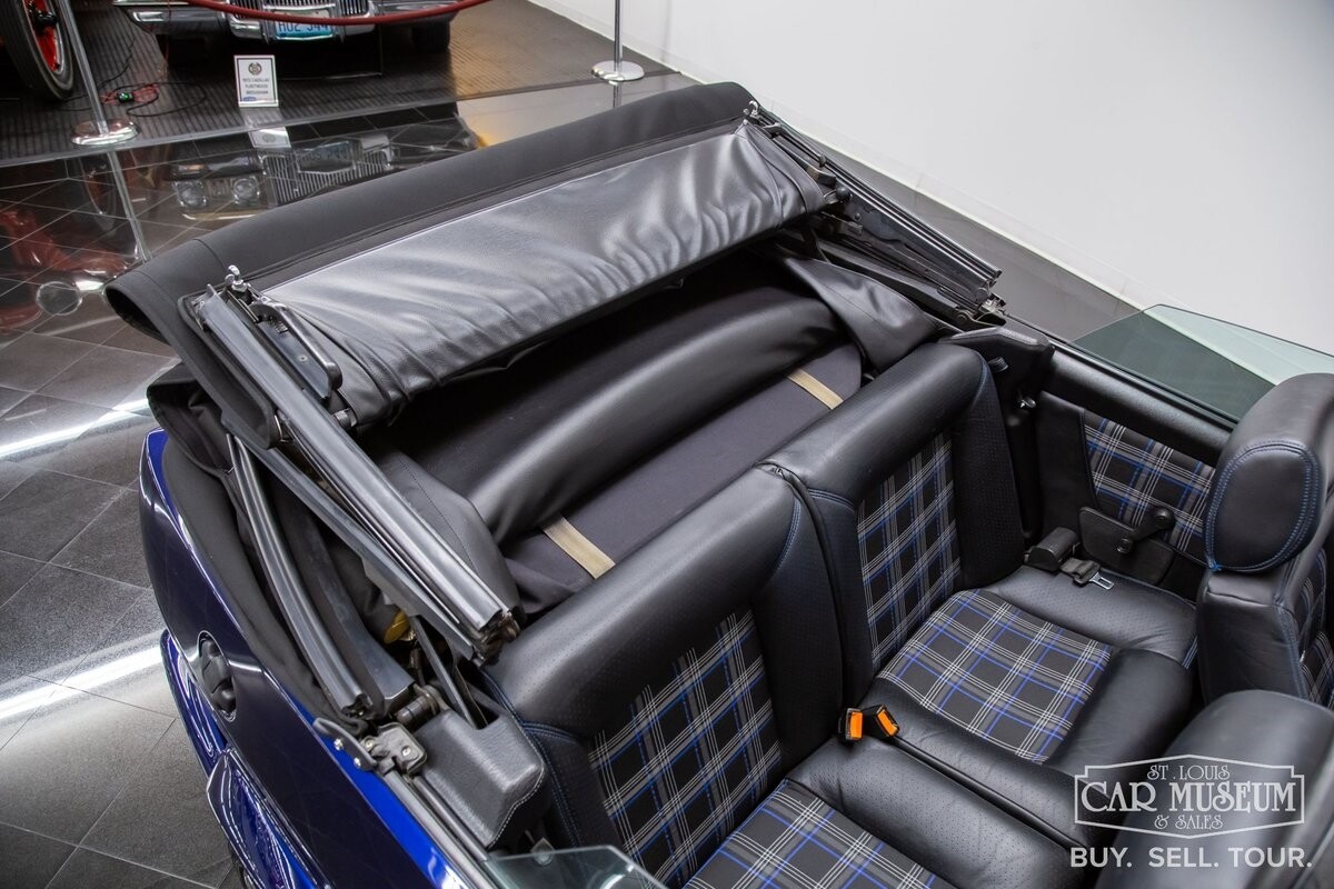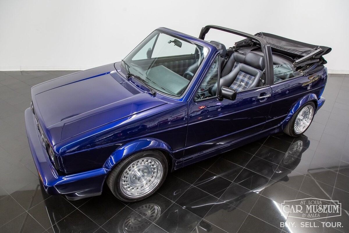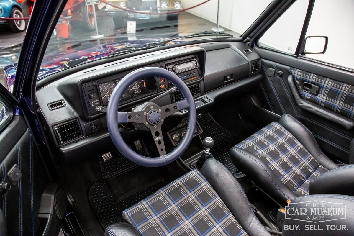 The results come from a full 2-year effort finished in 2022, and it has been driven and enjoyed only sparingly since completion. It boosts 180 factory rated horsepower without any internal modifications to the stock GTI drivetrain, with the exception to a S&P Automotive engine harness and ECU tune for optimum performance. Inside, the custom blue plaid material was sourced directly from Germany, then sent along with the Mk1 seat frames and Recaro seats to GTS Classics in Austin, TX to be reupholstered and professionally upfitted. The convertible top was also replaced with new black cloth material. Nothing was left untouched, and it has a striking presentation that all who see it firsthand rave about! It drives out simply wonderfully, with excellent road manners in every single mechanical category. The build cost was staggering with no expense spared along the way. Please call with additional questions or to schedule a chance to review it in person.
