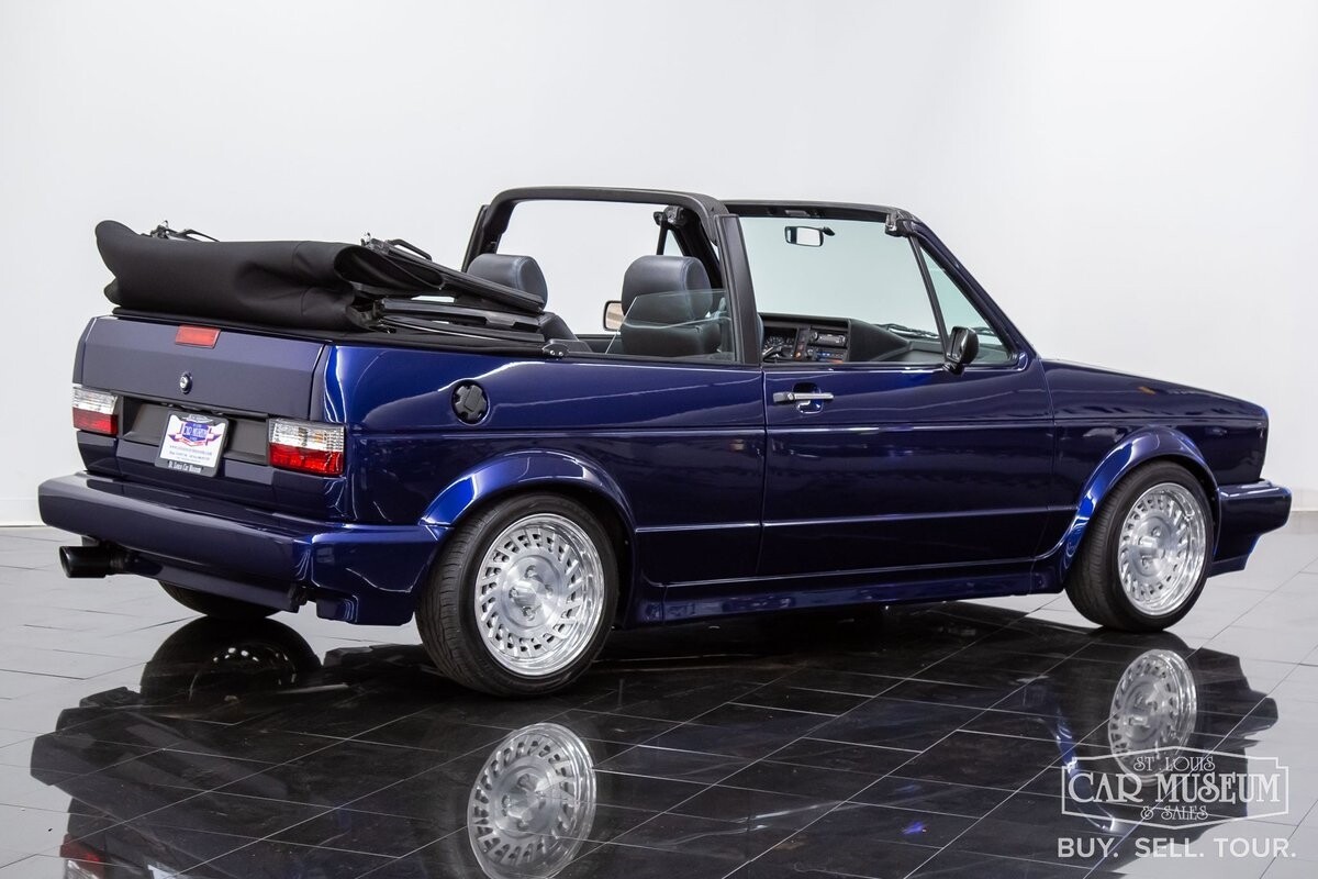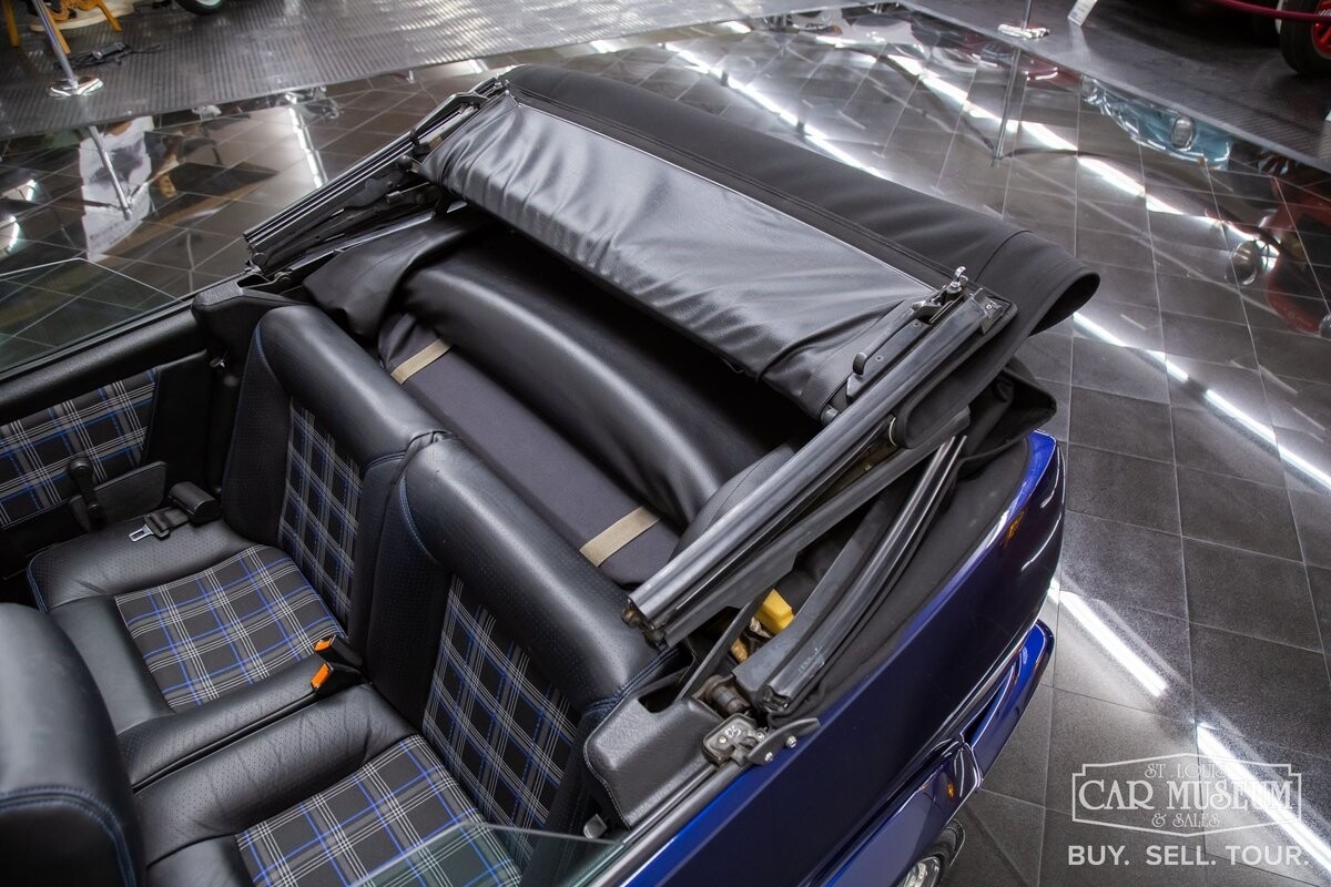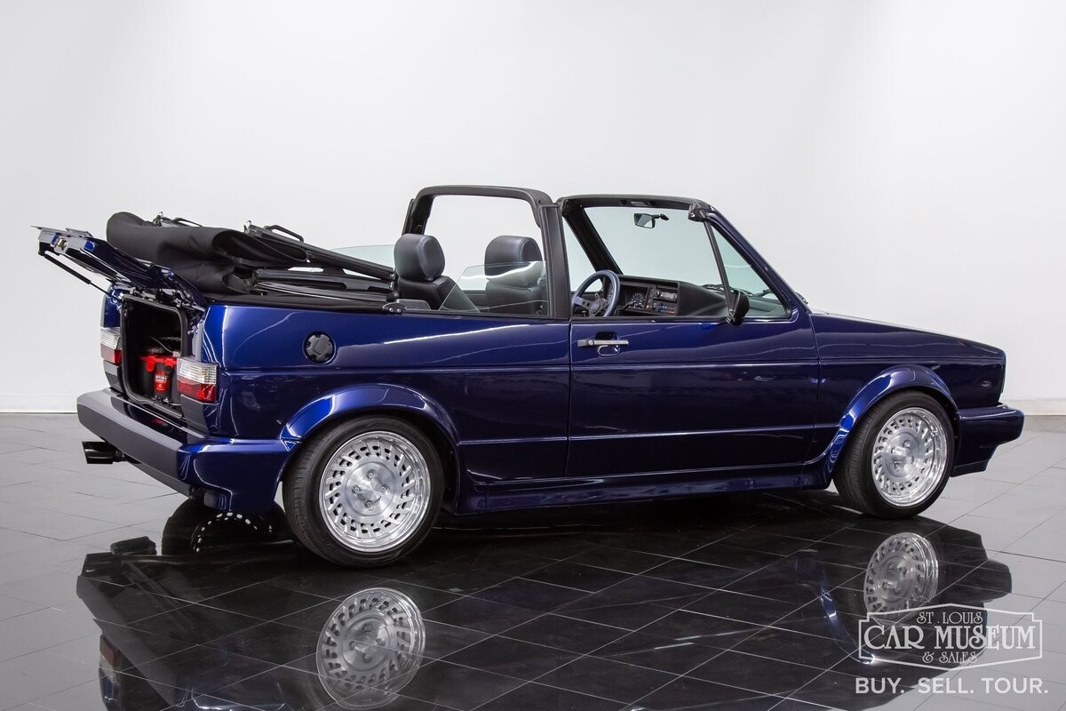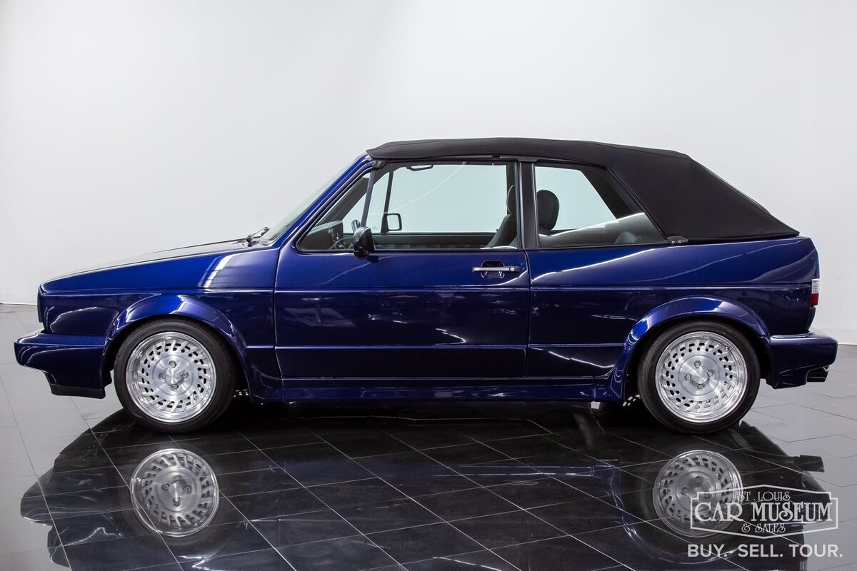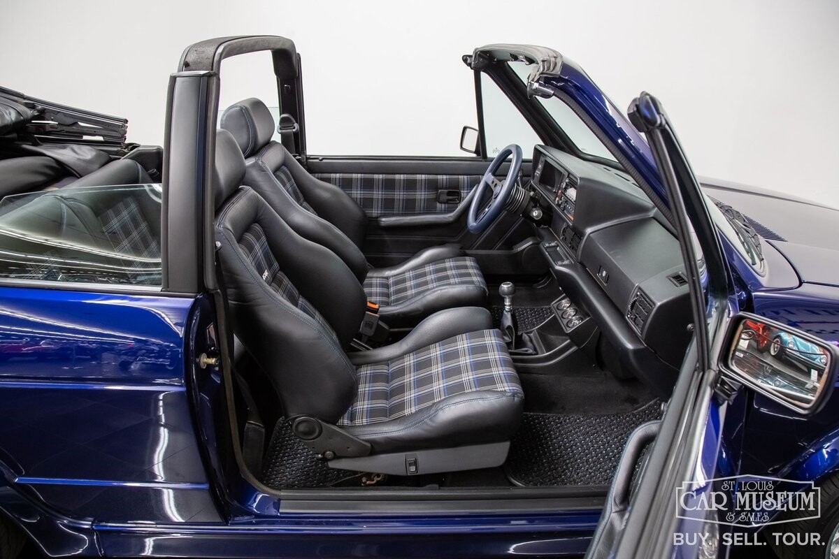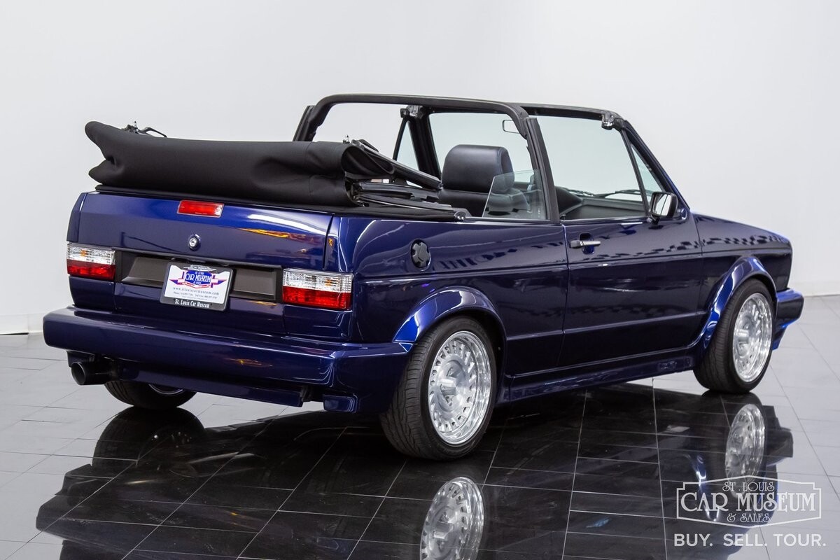 The results come from a full 2-year effort finished in 2022, and it has been driven and enjoyed only sparingly since completion. It boosts 180 factory rated horsepower without any internal modifications to the stock GTI drivetrain, with the exception to a S&P Automotive engine harness and ECU tune for optimum performance. Inside, the custom blue plaid material was sourced directly from Germany, then sent along with the Mk1 seat frames and Recaro seats to GTS Classics in Austin, TX to be reupholstered and professionally upfitted. The convertible top was also replaced with new black cloth material. Nothing was left untouched, and it has a striking presentation that all who see it firsthand rave about! It drives out simply wonderfully, with excellent road manners in every single mechanical category. The build cost was staggering with no expense spared along the way. Please call with additional questions or to schedule a chance to review it in person.