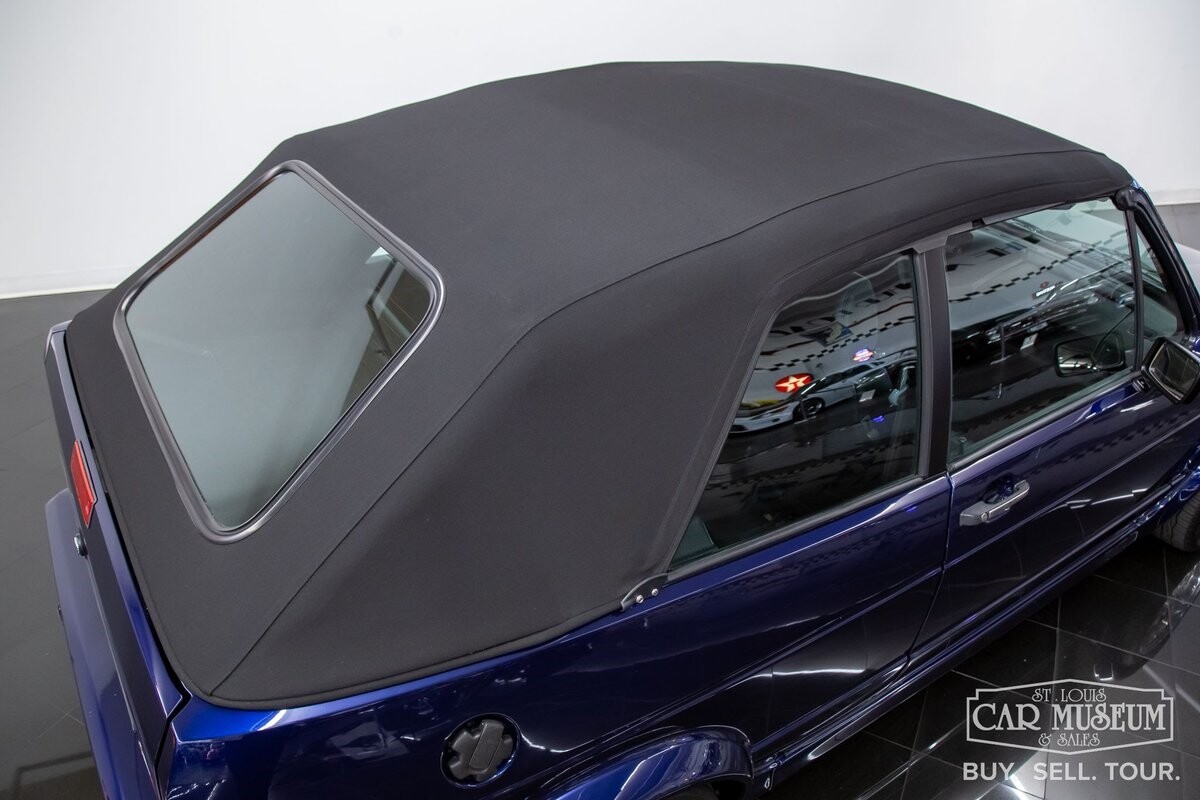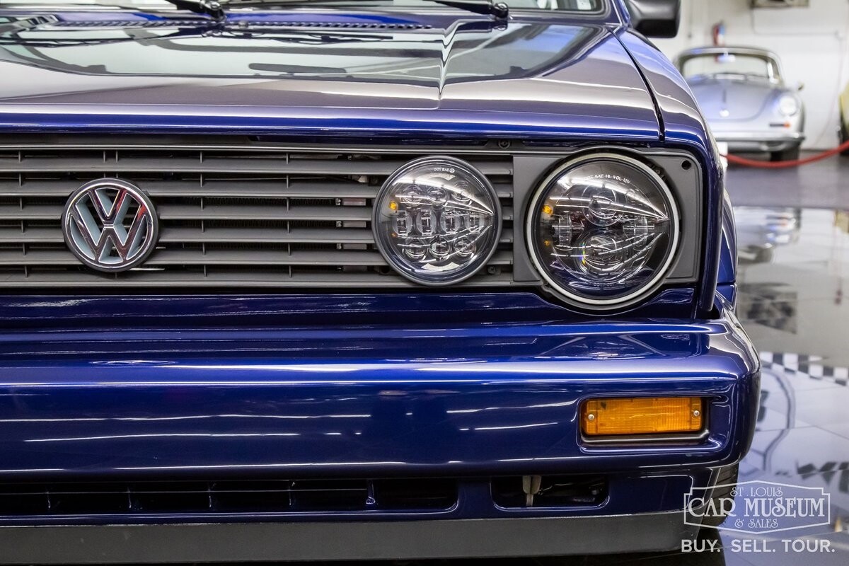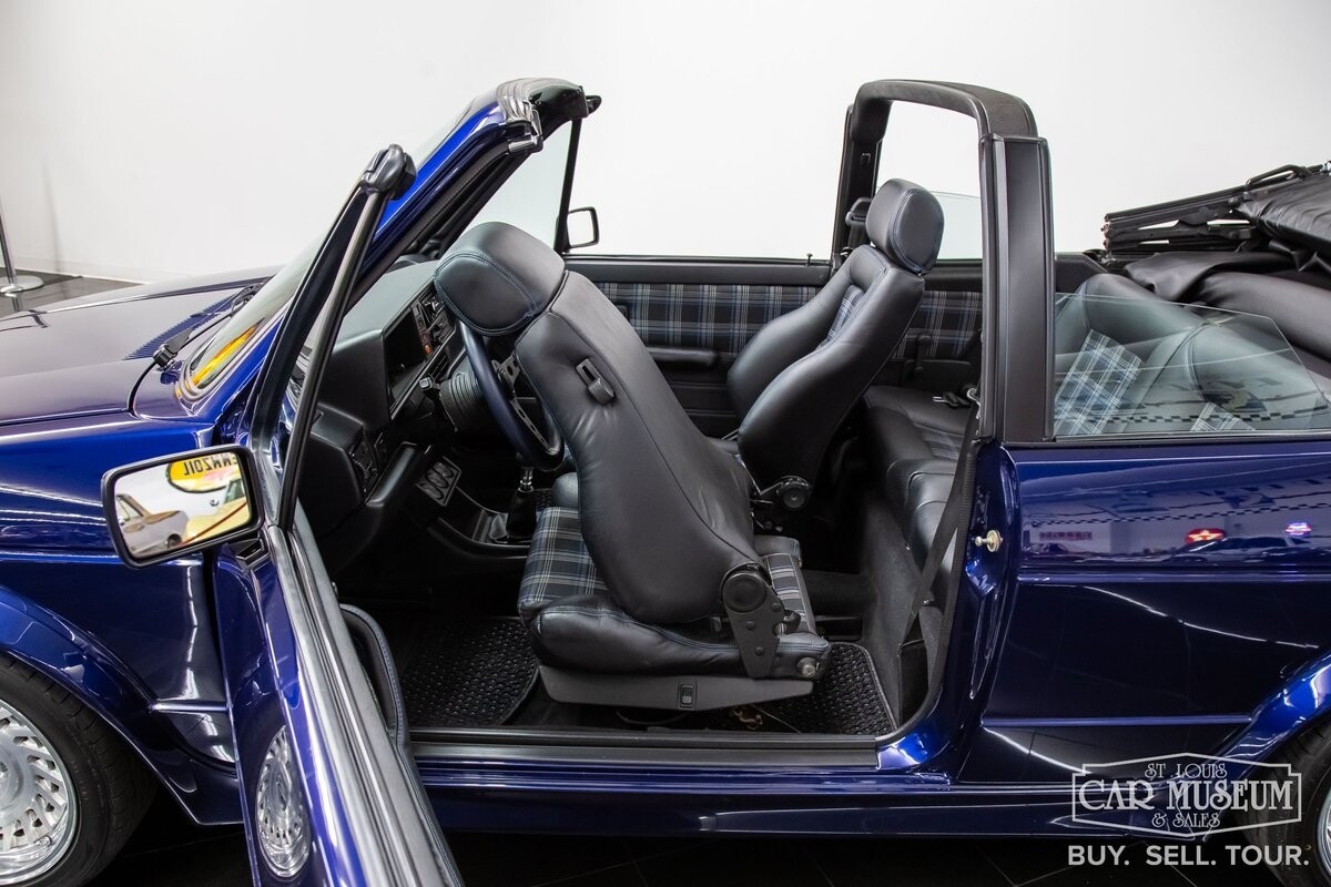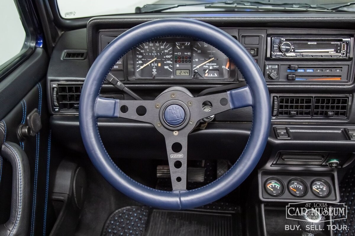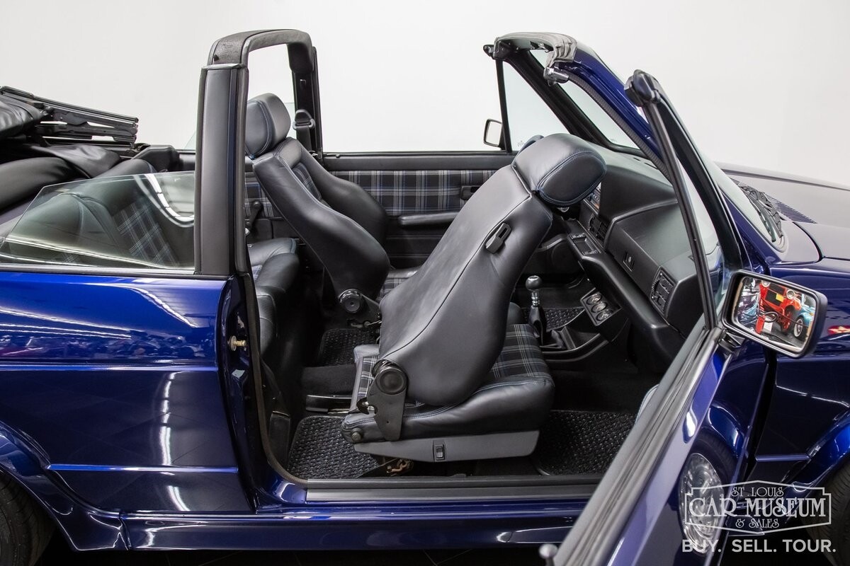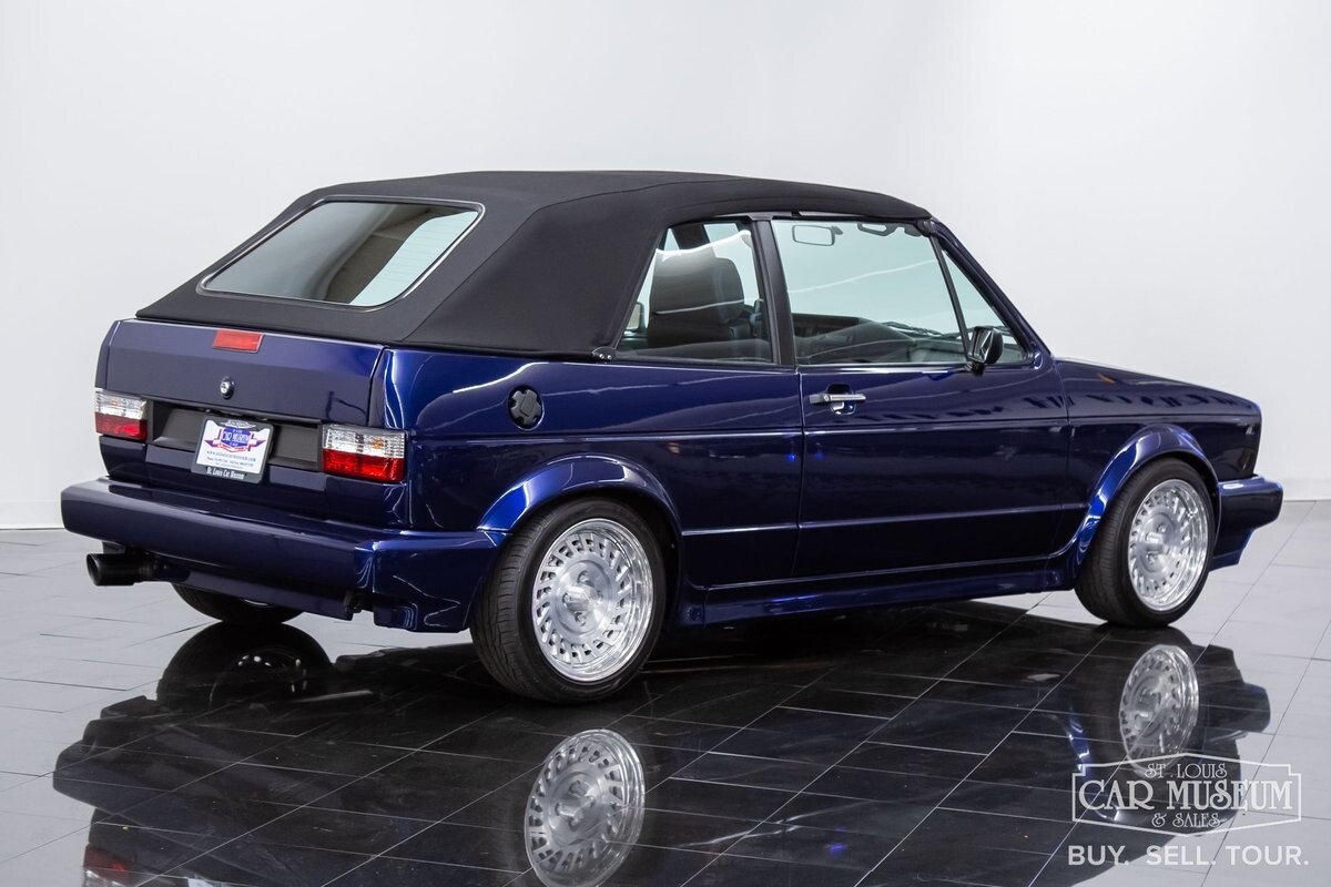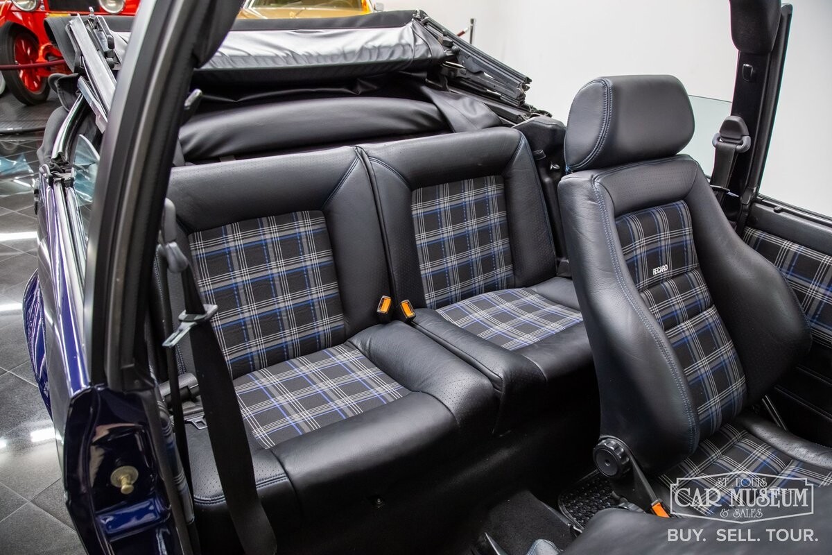 The results come from a full 2-year effort finished in 2022, and it has been driven and enjoyed only sparingly since completion. It boosts 180 factory rated horsepower without any internal modifications to the stock GTI drivetrain, with the exception to a S&P Automotive engine harness and ECU tune for optimum performance. Inside, the custom blue plaid material was sourced directly from Germany, then sent along with the Mk1 seat frames and Recaro seats to GTS Classics in Austin, TX to be reupholstered and professionally upfitted. The convertible top was also replaced with new black cloth material. Nothing was left untouched, and it has a striking presentation that all who see it firsthand rave about! It drives out simply wonderfully, with excellent road manners in every single mechanical category. The build cost was staggering with no expense spared along the way. Please call with additional questions or to schedule a chance to review it in person.