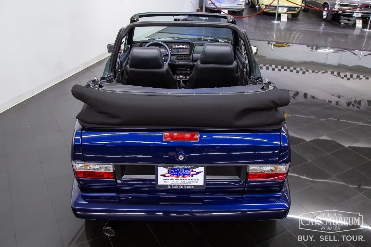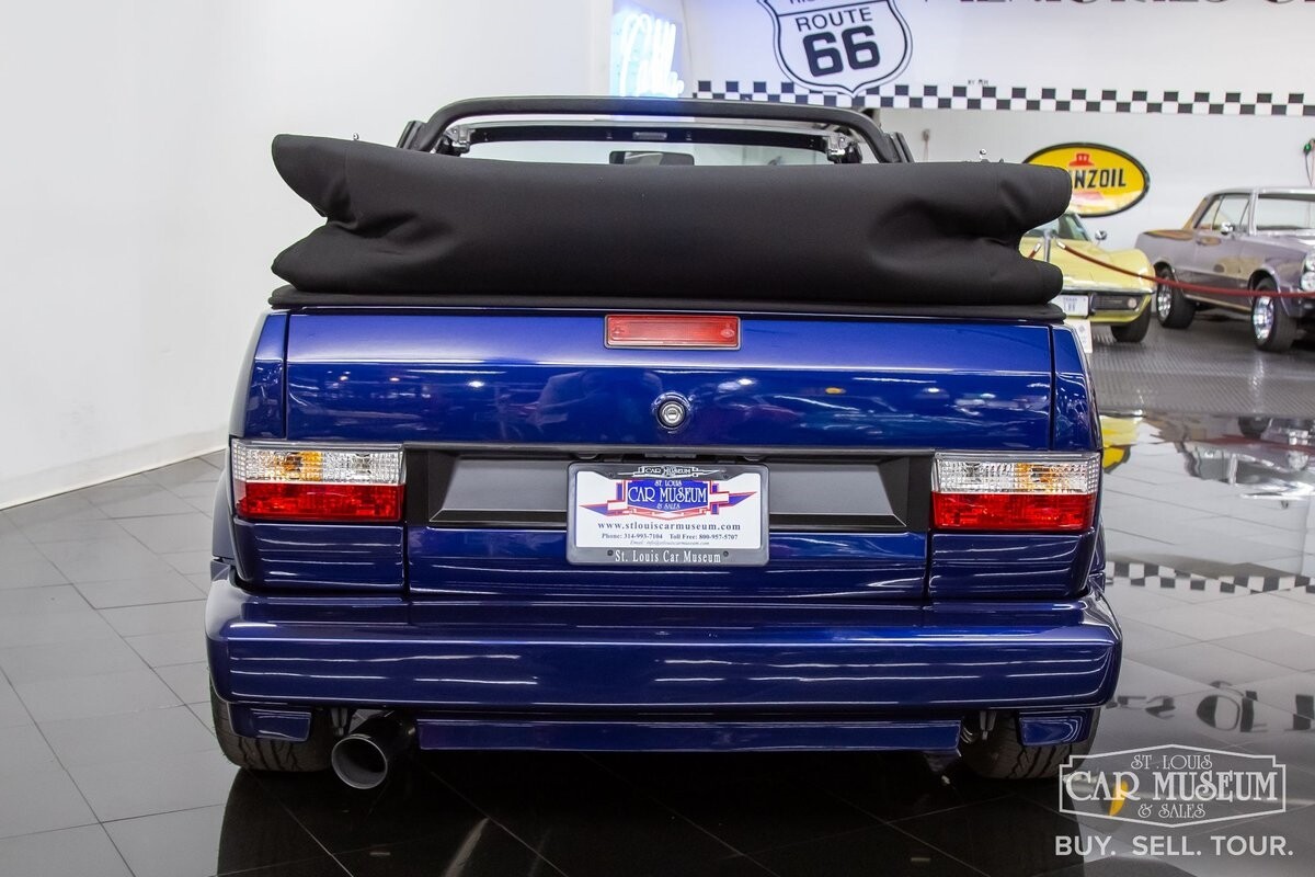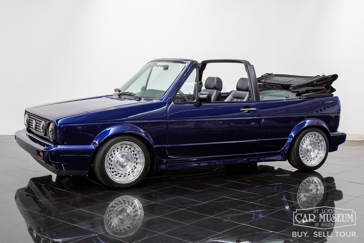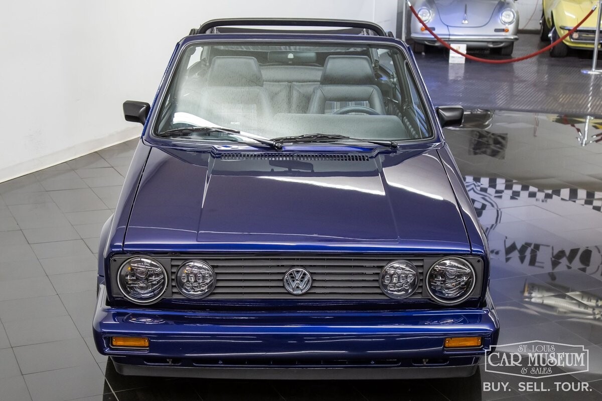 We are excited to offer this 1991 Volkswagen Golf Cabriolet professionally refinished in Navarra Blue Metallic over special Blue Plaid cloth interior. Its current owner initiated a complete custom restoration with the help of All German Performance based in Ashville, NC in 2020. Beginning with a super solid Etienne Aigner Edition Cabriolet in original Midnight Blue, they would immediately have the original engine and transmission removed, and the body sent to C&M Paint Werks in Weaverville, NC for a complete strip to bare metal. They also remove the body side moldings, marker lights, antenna, badges & emblems, and fill any unnecessary firewall and inner fender holes before a truly meticulous application of new Audi-sourced Navarra Blue Metallic paint was sprayed.