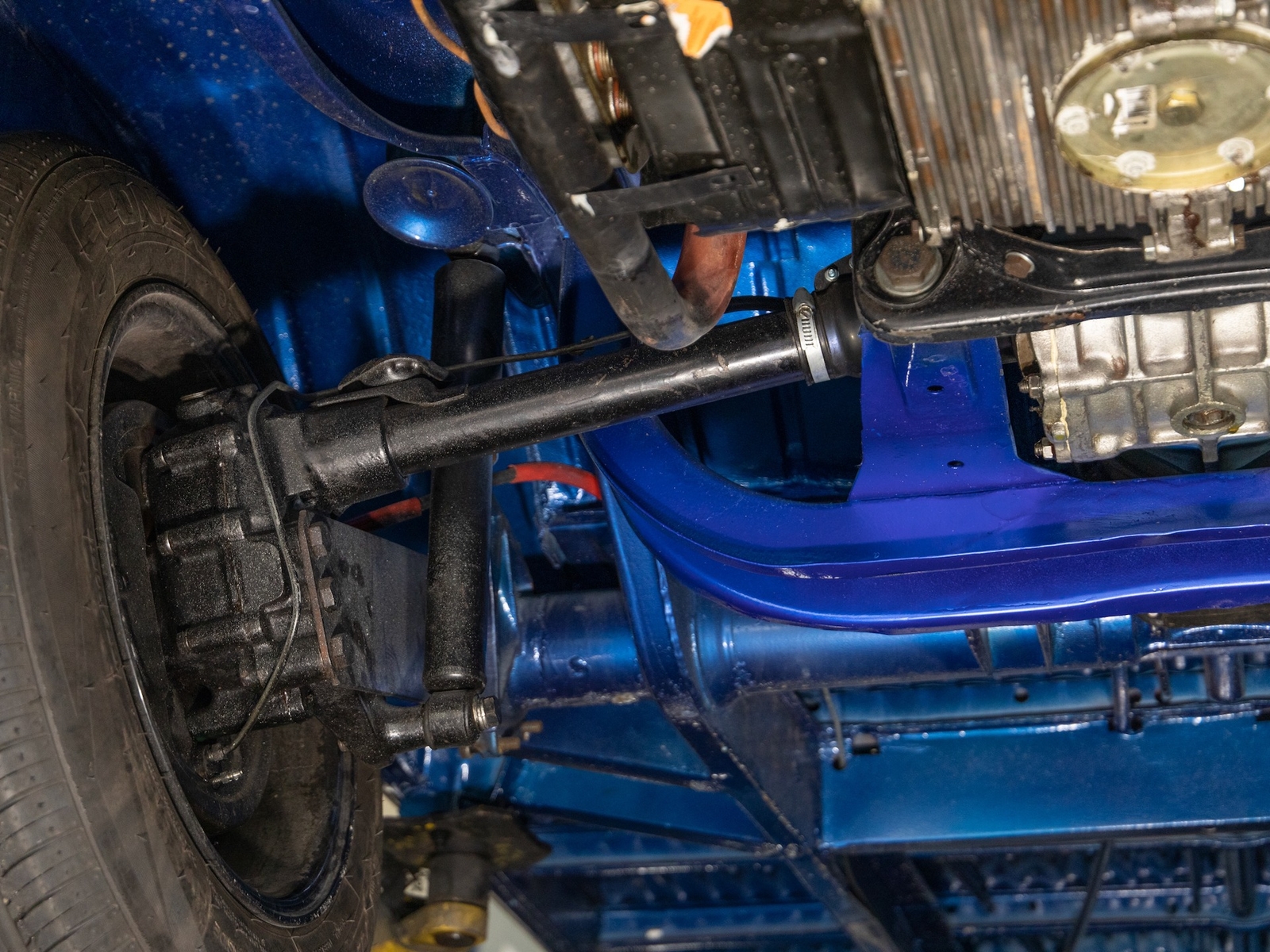 Powered by a 1500cc 4-cylinder engine mated to a 4-speed manual transmission, the complete drivetrain has been rebuilt, including the engine, transmission, and transaxle. The rebuilt engine with a new carburetor was installed and a new distributor, ignition coil, spark plugs and wires. The suspension, steering and braking systems have also been rebuilt with new parts throughout. The electrical system was completely redone, from the wiring harness to the generator, voltage regulator and battery.