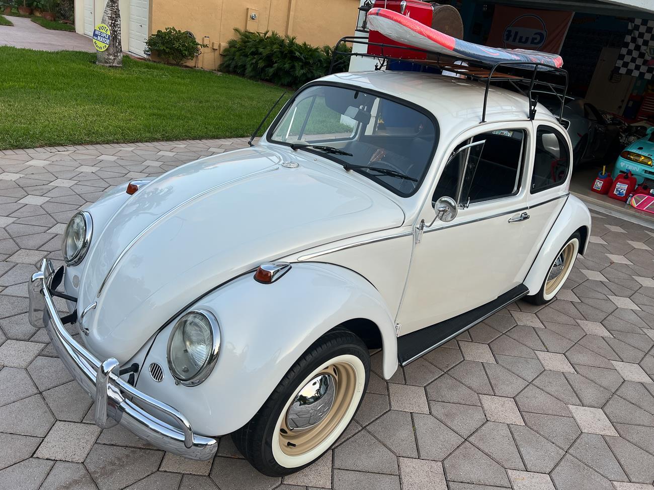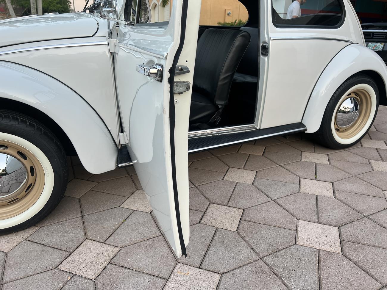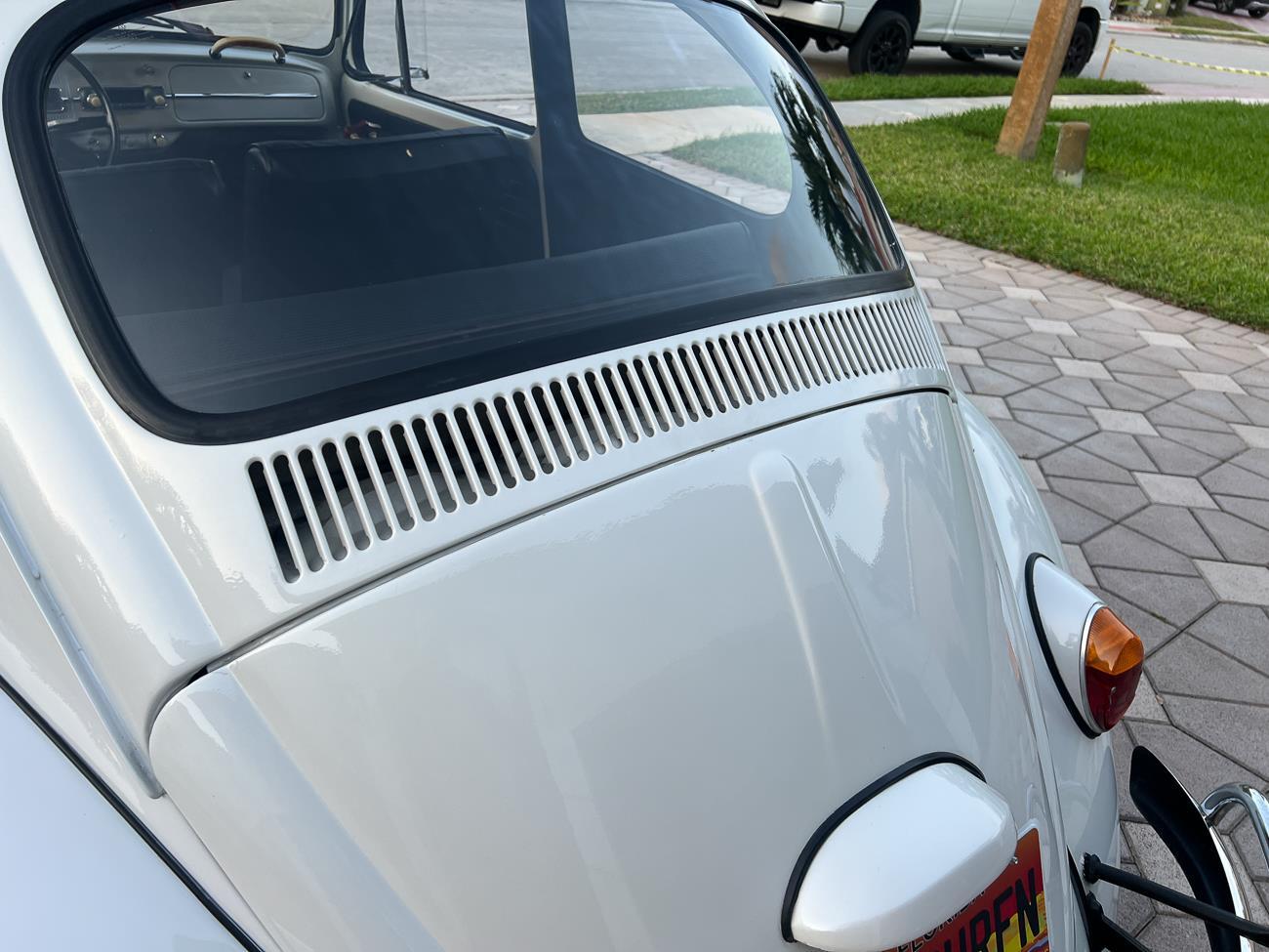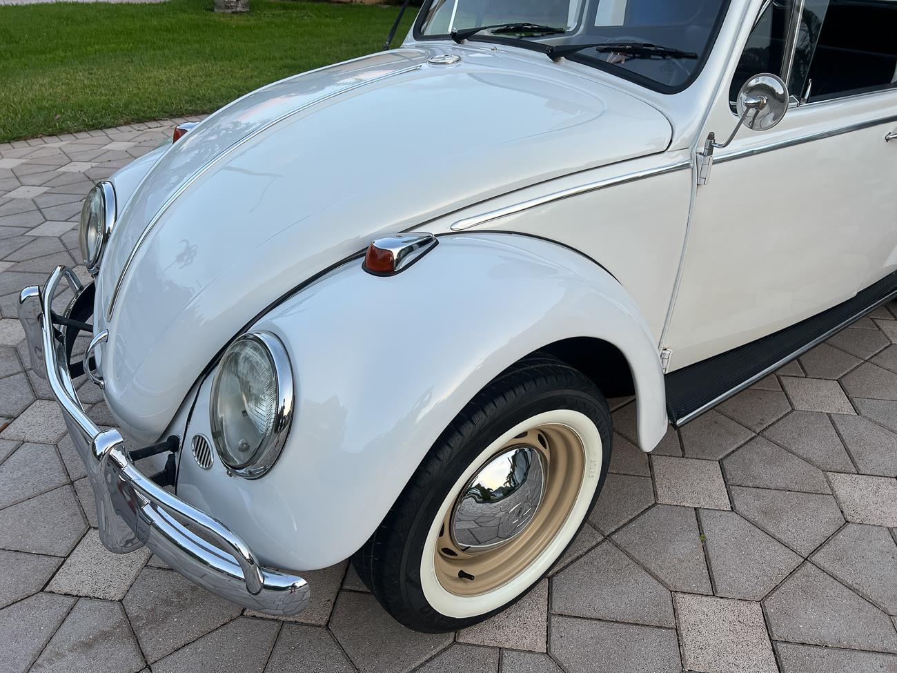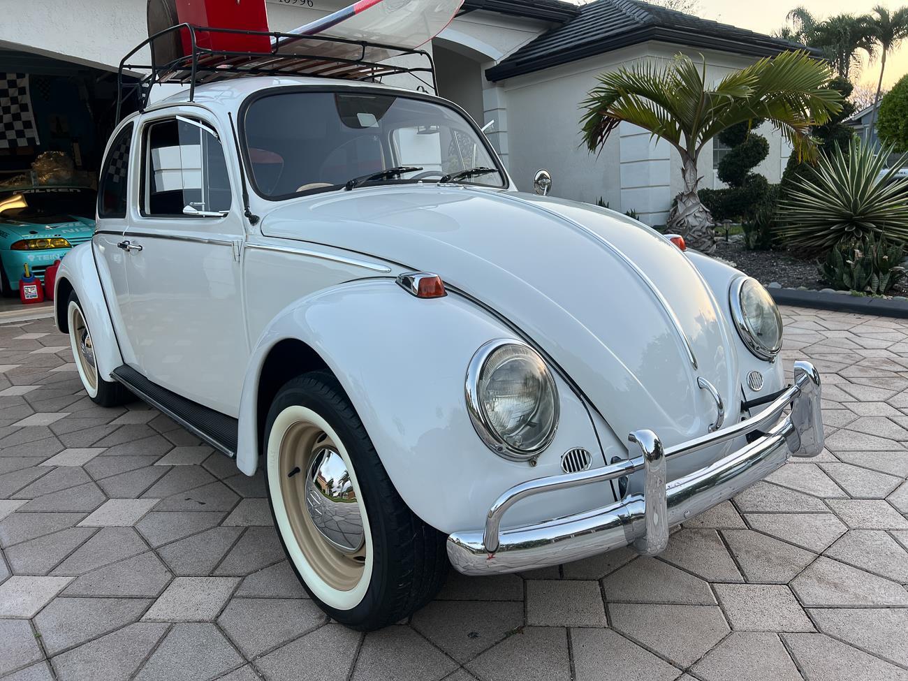 Call me 305-542-5662. Up for sale is my 1965 VW Beetle! German car. Finished in white with black interior! Roof rack! The beetle did receive a restoration by its previous owner, It drives well, you can take it to the car shows & for weekend cruises. Definitely gets a lot of attention & questions at the cars and coffee. The Beetle is powered by it's 1600cc engine, air cooled, It moves pretty good! It has a 4 speed manual transmission. Has a nice exhaust that sounds really nice. See the video. It has always been garage kept and well taken care. All the exterior chromes, trim, latches, bumperettes are all good. Underneath the floor pans are in great shape, everything was properly restored and looks good! It was fitted with steel wheels with chrome hubcaps and white wall, looks good.