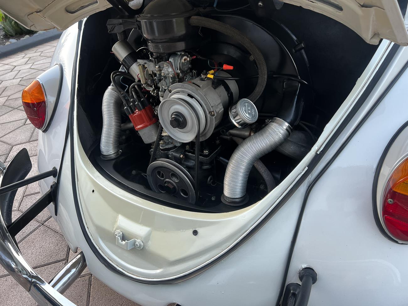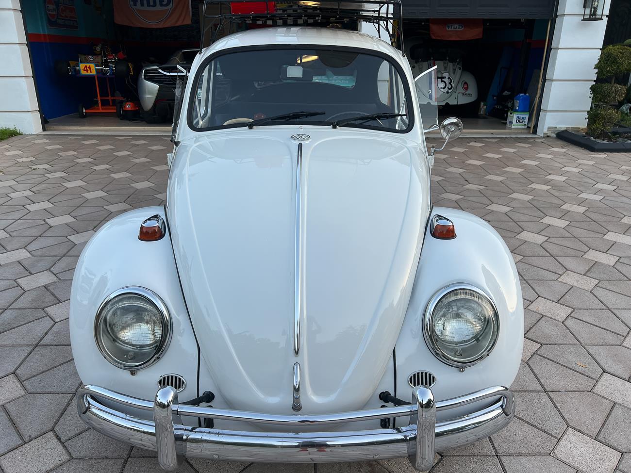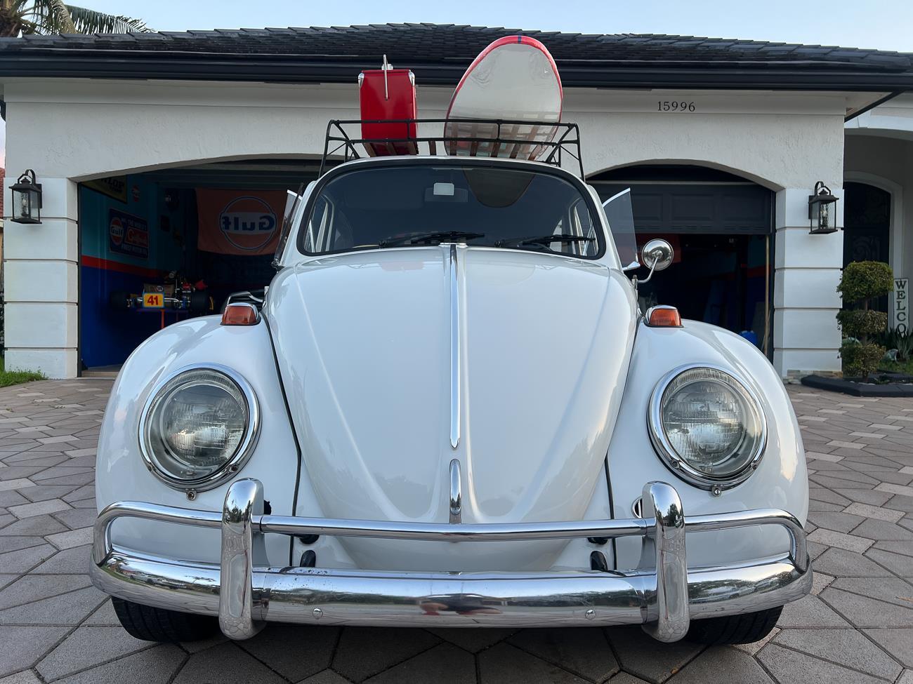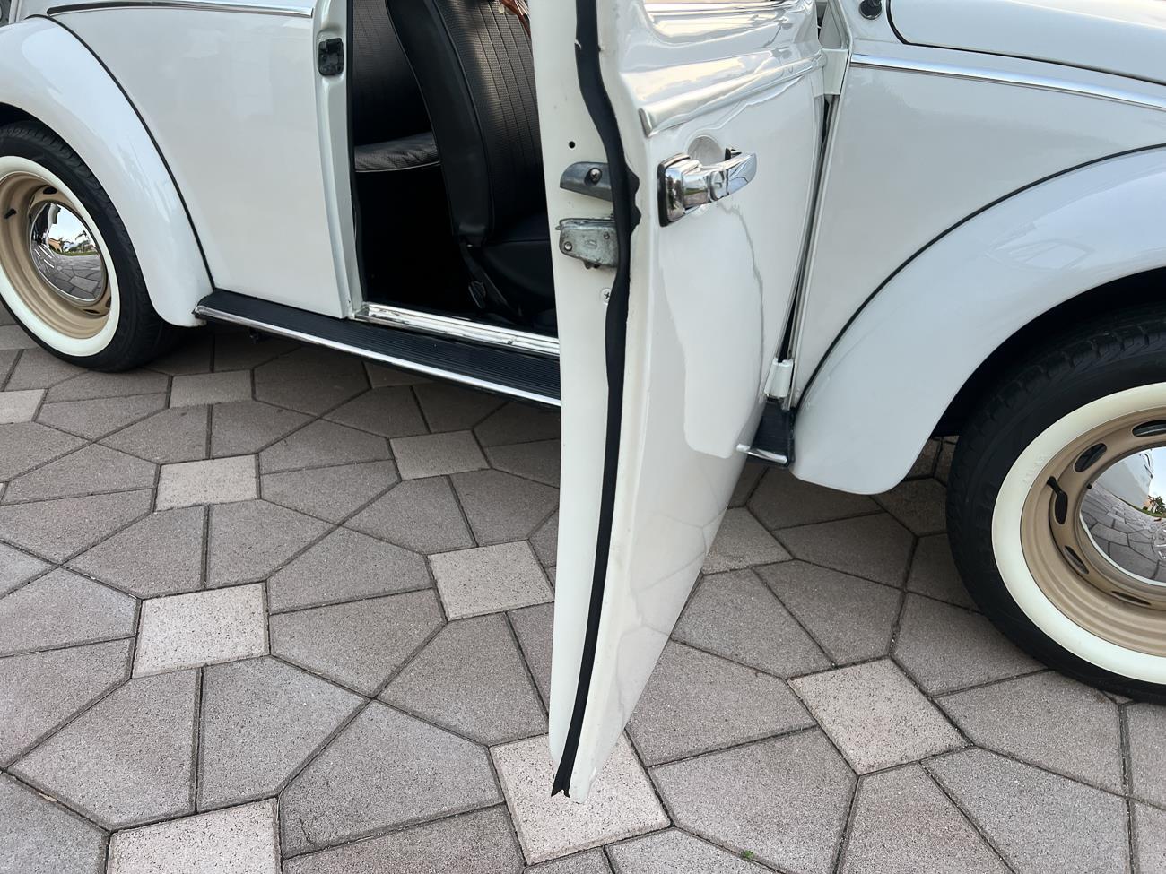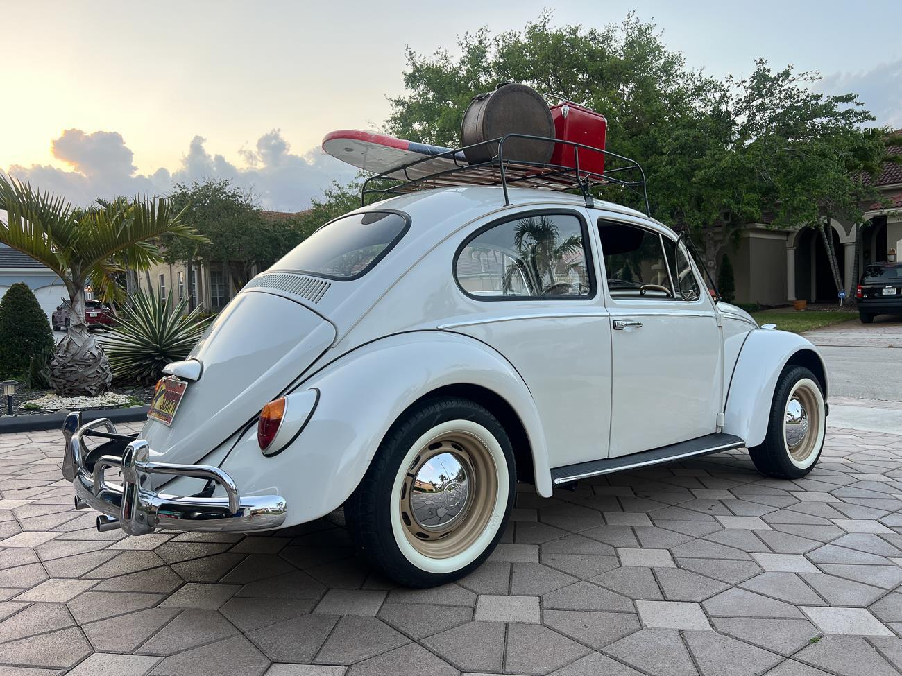Call me 305-542-5662. Up for sale is my 1965 VW Beetle! German car. Finished in white with black interior! Roof rack! The beetle did receive a restoration by its previous owner, It drives well, you can take it to the car shows & for weekend cruises. Definitely gets a lot of attention & questions at the cars and coffee. The Beetle is powered by it's 1600cc engine, air cooled, It moves pretty good! It has a 4 speed manual transmission. Has a nice exhaust that sounds really nice. See the video. It has always been garage kept and well taken care. All the exterior chromes, trim, latches, bumperettes are all good. Underneath the floor pans are in great shape, everything was properly restored and looks good! It was fitted with steel wheels with chrome hubcaps and white wall, looks good.