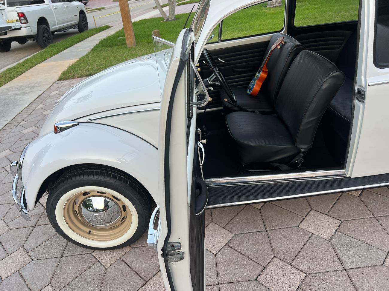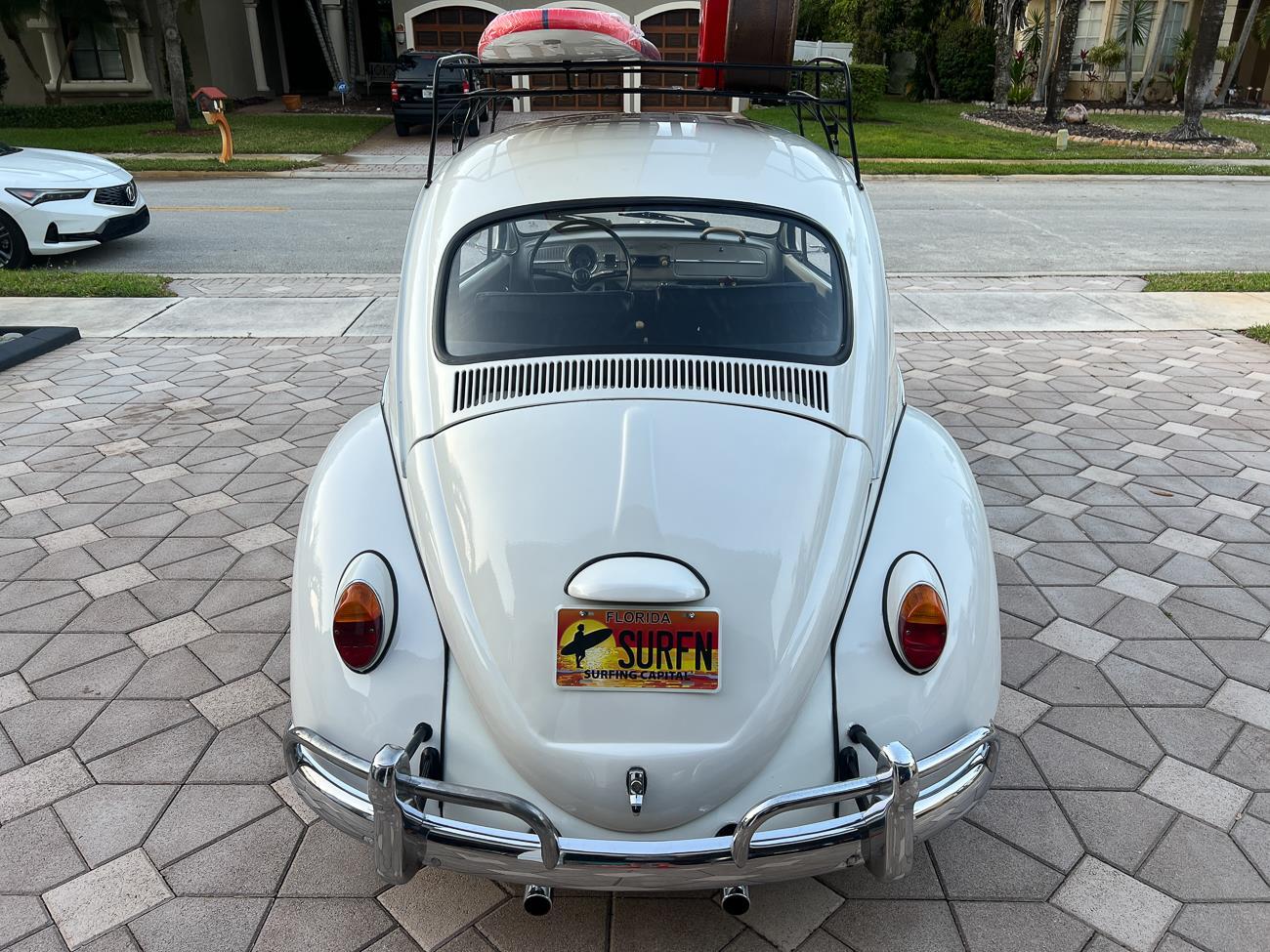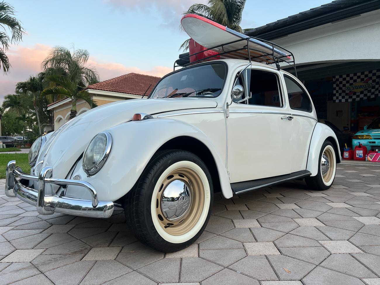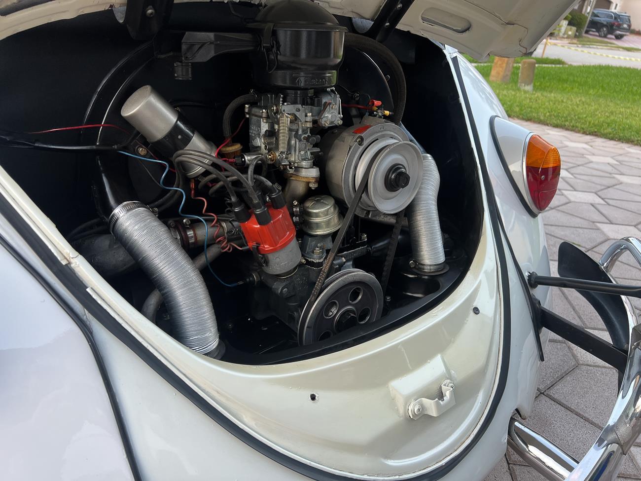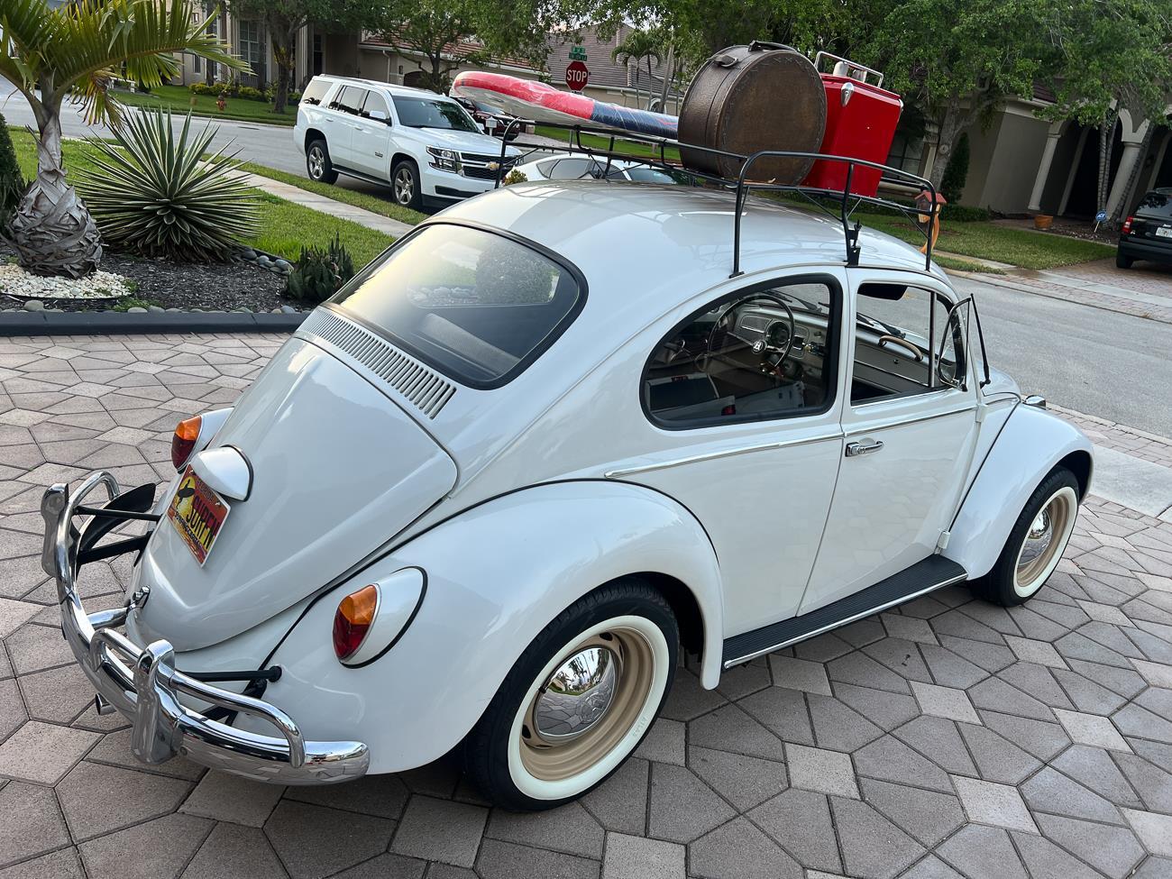 Call me 305-542-5662. Up for sale is my 1965 VW Beetle! German car. Finished in white with black interior! Roof rack! The beetle did receive a restoration by its previous owner, It drives well, you can take it to the car shows & for weekend cruises. Definitely gets a lot of attention & questions at the cars and coffee. The Beetle is powered by it's 1600cc engine, air cooled, It moves pretty good! It has a 4 speed manual transmission. Has a nice exhaust that sounds really nice. See the video. It has always been garage kept and well taken care. All the exterior chromes, trim, latches, bumperettes are all good. Underneath the floor pans are in great shape, everything was properly restored and looks good! It was fitted with steel wheels with chrome hubcaps and white wall, looks good.